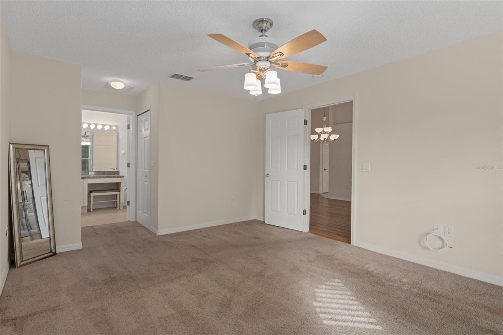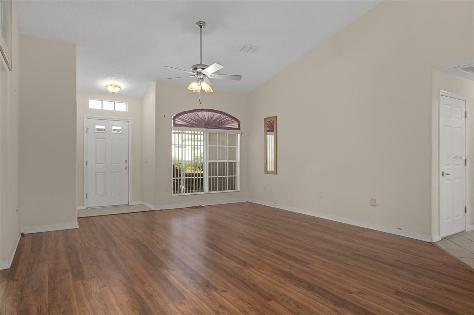 - Ceiling Fan(s), Eat-in Kitchen, High Ceilings, Living/Dining Room, Open Floorplan, Split Bedrooms, Walk-In Closet(s), Window Treatments