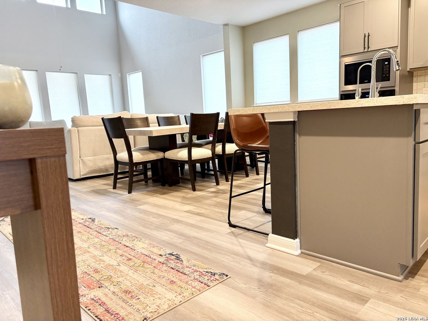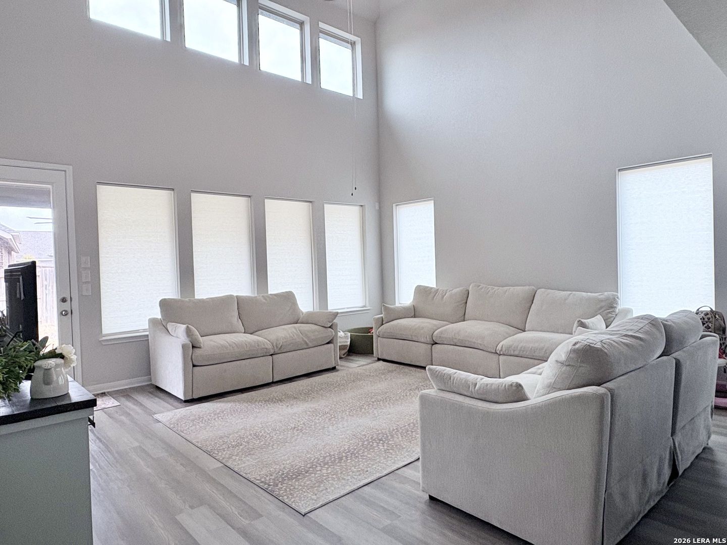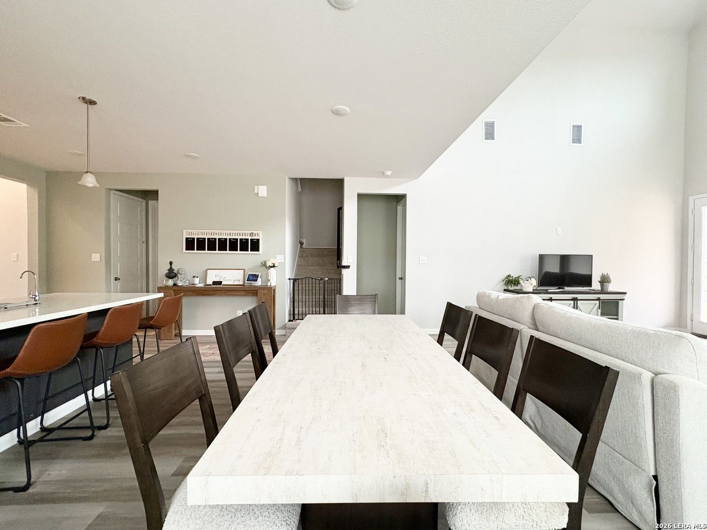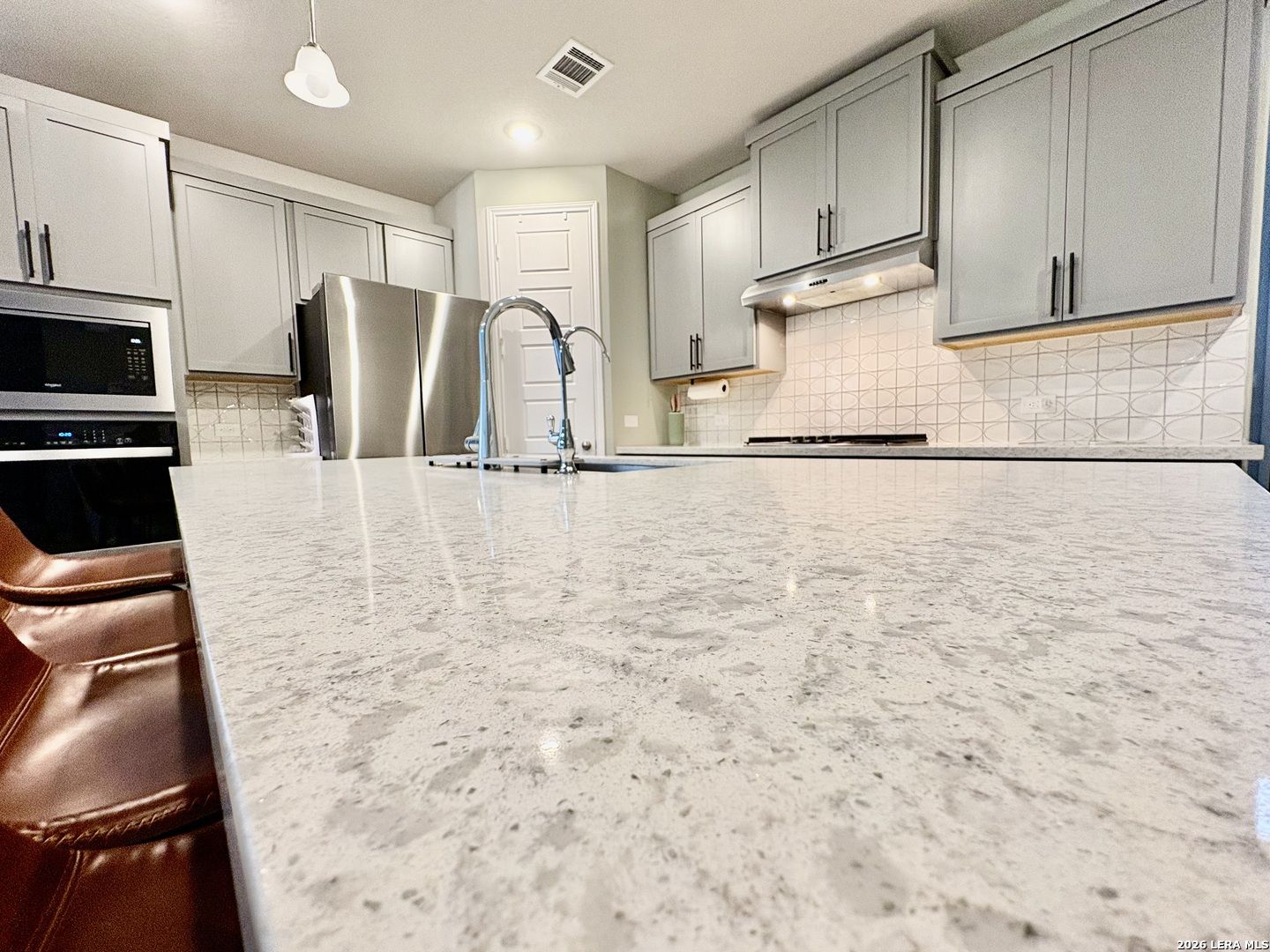 This home offers over 2,900 square feet of thoughtfully designed living space, perfectly situated on a large corner lot with ample room for a future pool. The only home currently available with a yard this size. This home features four bedrooms, including a downstairs primary suite, with three additional bedrooms upstairs, one of which includes a private en suite. When you step inside you are greeted with soaring ceilings that create a bright, open atmosphere. Upstairs, a generous game room provides stunning views and endless possibilities for entertainment or relaxation. The primary bedroom is a true retreat, with designer colors and a huge contemporary ceiling fan, featuring not one but two closets, including an oversized walk-in closet. Outdoors, enjoy a Texas sized covered patio designed for family gatherings, entertaining, and making lasting memories. With one of the largest lots in the community, this home gives you the space to truly spread out and enjoy outdoor living. Beautiful backsplash and designer hardware in the kitchen, this house is a Gem.