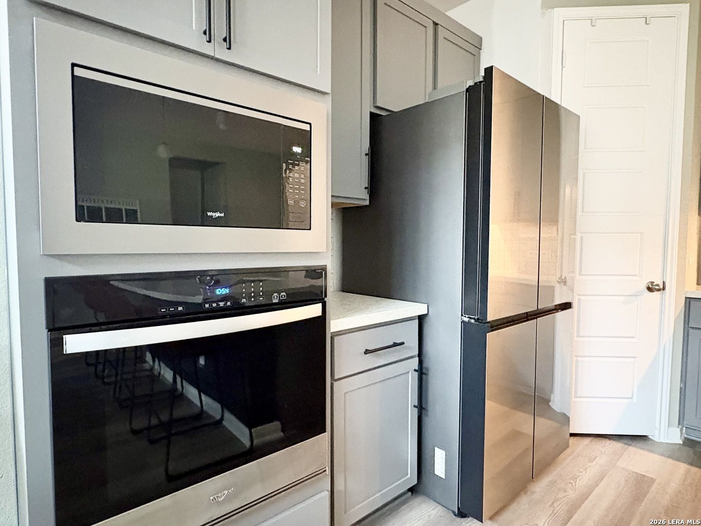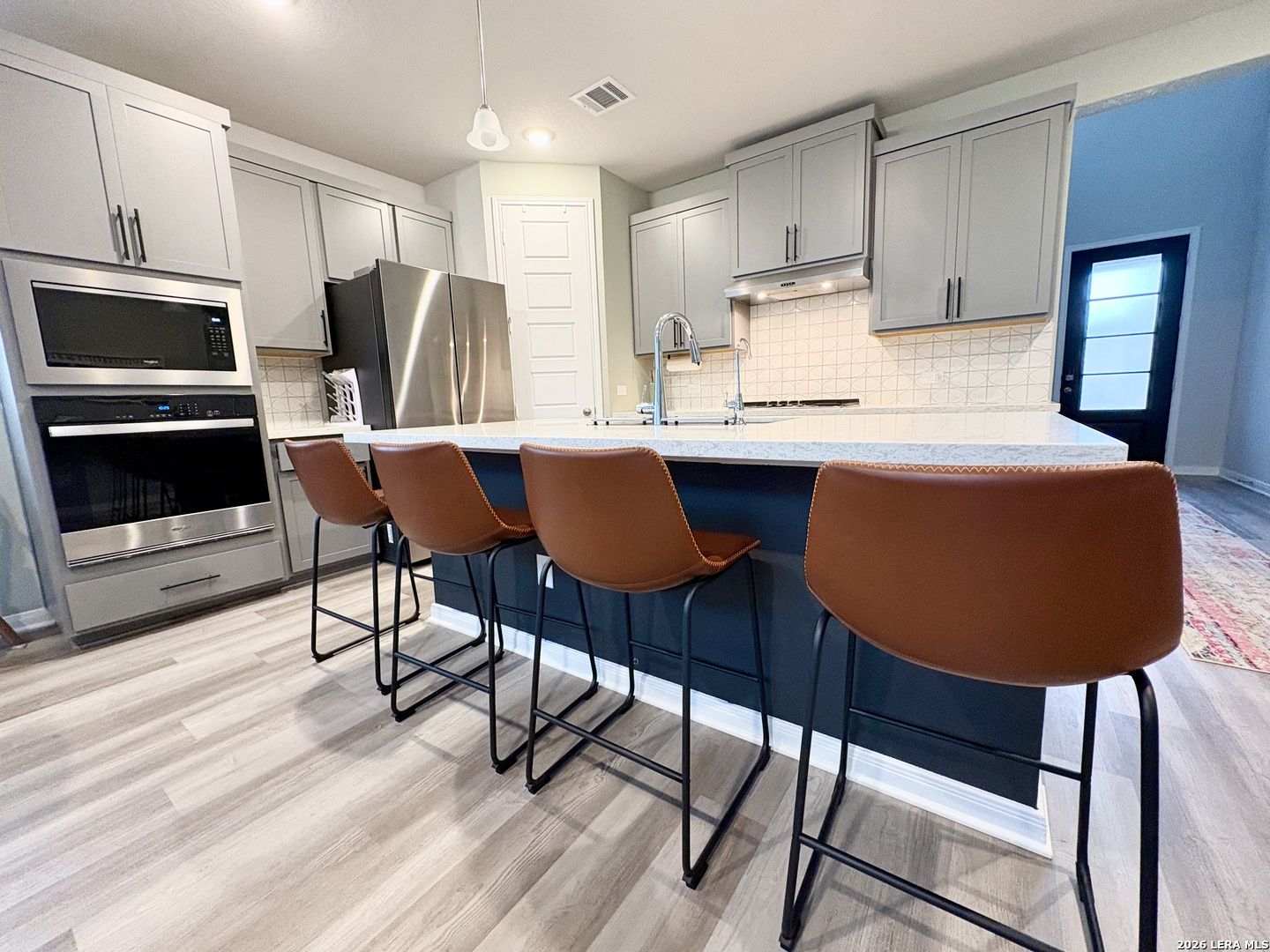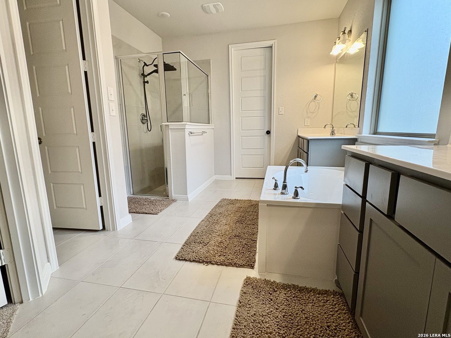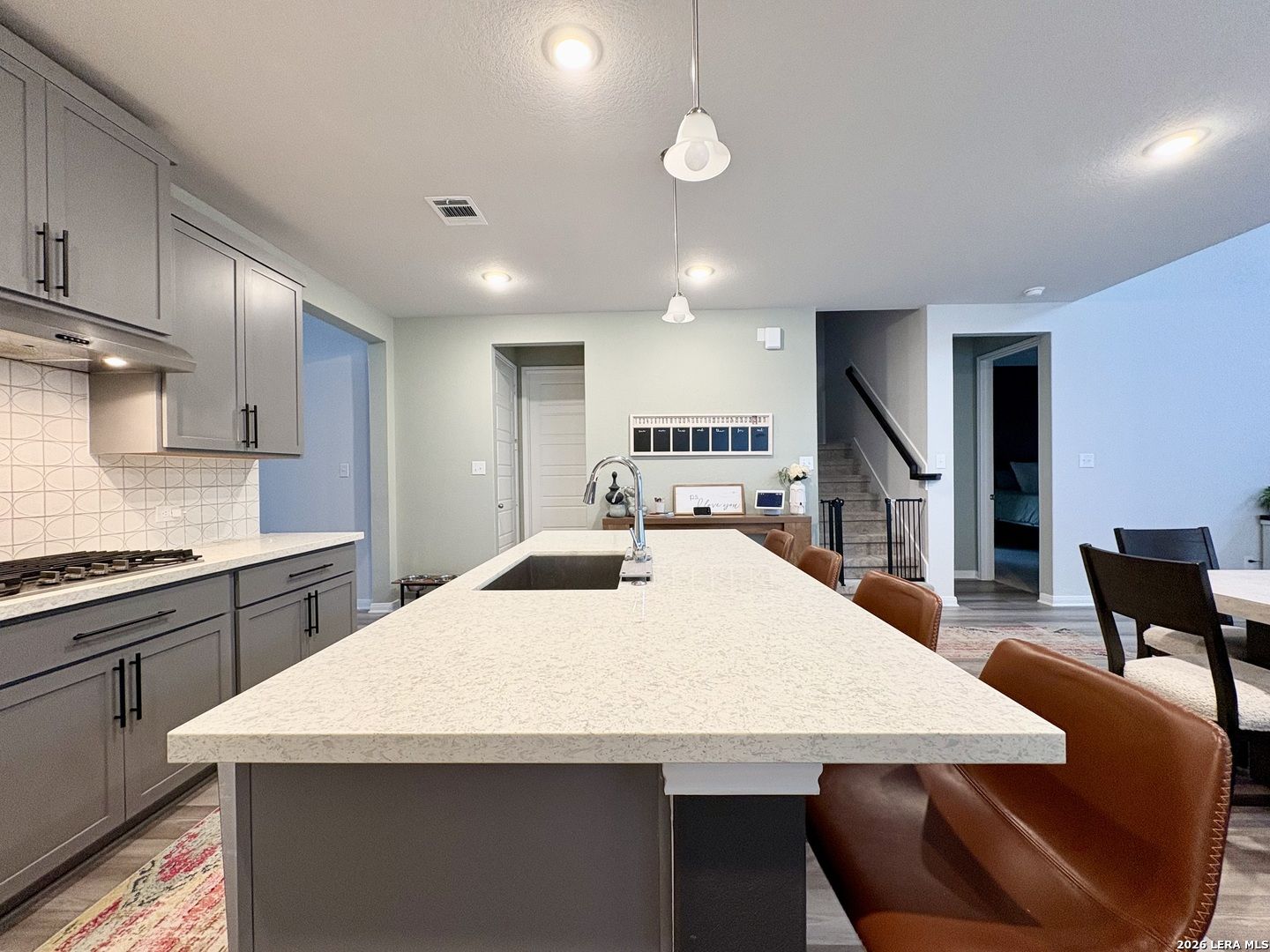 This home offers over 2,900 square feet of thoughtfully designed living space, perfectly situated on a large corner lot with ample room for a future pool. The only home currently available with a yard this size. This home features four bedrooms, including a downstairs primary suite, with three additional bedrooms upstairs, one of which includes a private en suite. When you step inside you are greeted with soaring ceilings that create a bright, open atmosphere. Upstairs, a generous game room provides stunning views and endless possibilities for entertainment or relaxation. The primary bedroom is a true retreat, with designer colors and a huge contemporary ceiling fan, featuring not one but two closets, including an oversized walk-in closet. Outdoors, enjoy a Texas sized covered patio designed for family gatherings, entertaining, and making lasting memories. With one of the largest lots in the community, this home gives you the space to truly spread out and enjoy outdoor living. Beautiful backsplash and designer hardware in the kitchen, this house is a Gem.