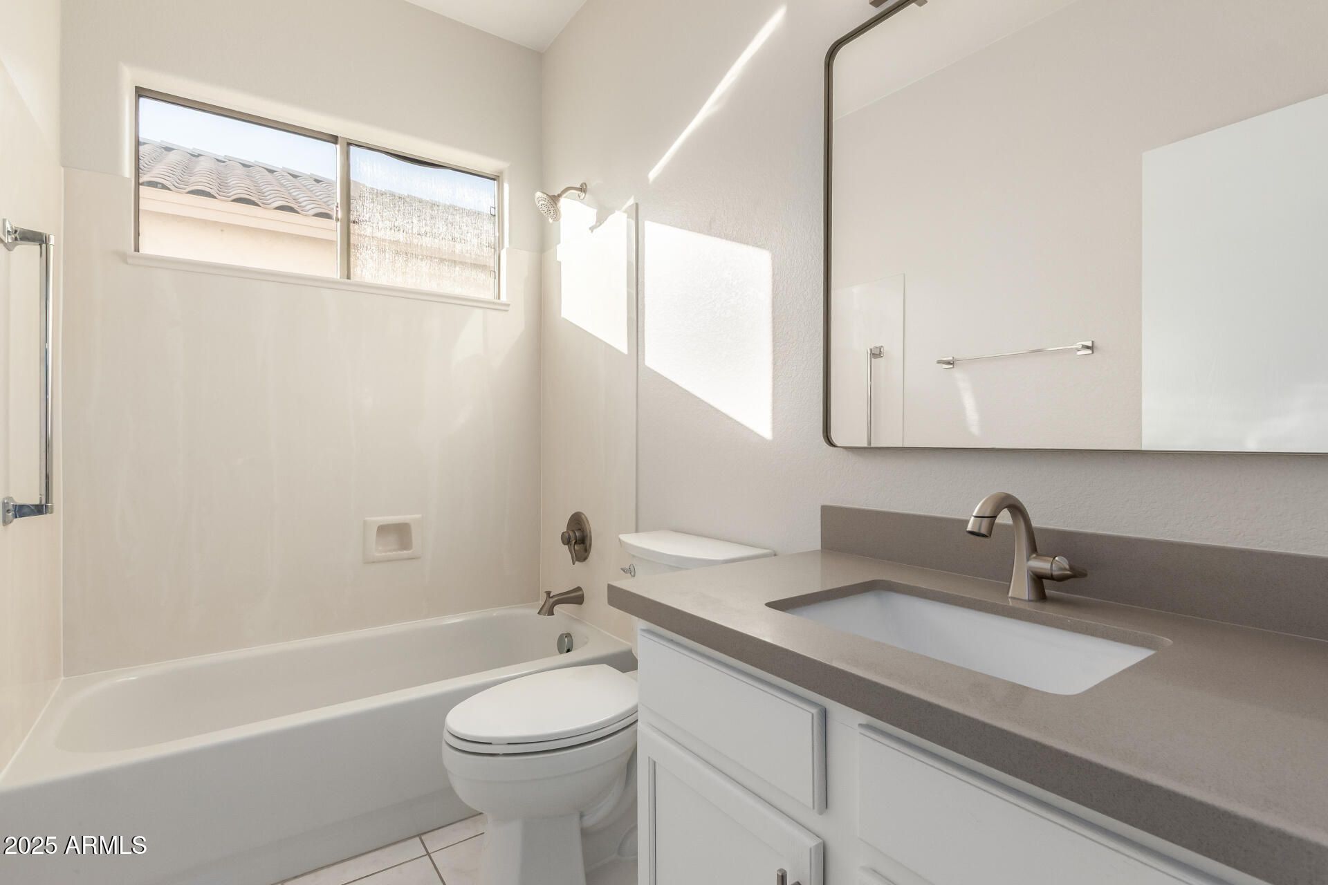 Tastefully remodeled home in Arizona Traditions 55+ guard-gated golf community! This 2 bed / 2 bath / 2-car garage gem offers newly painted inside and out, vaulted ceilings, plantation shutters, new wood-look tile flooring, and abundant natural light. The new kitchen features quartz countertops, new stainless steel appliances, new white cabinetry, new pendant lighting, new center island, and bay-window dining area. Spacious primary suite with dual sinks + walk-in closet. Enjoy year-round outdoor living in the screened-in patio overlooking a peaceful low-maintenance backyard. Community amenities include 18-hole golf, clubhouse, pools, fitness, pickleball & social activities. Minutes to shopping, restaurants and easy access to the 303 Freeway. Move-in ready and beautifully updated!