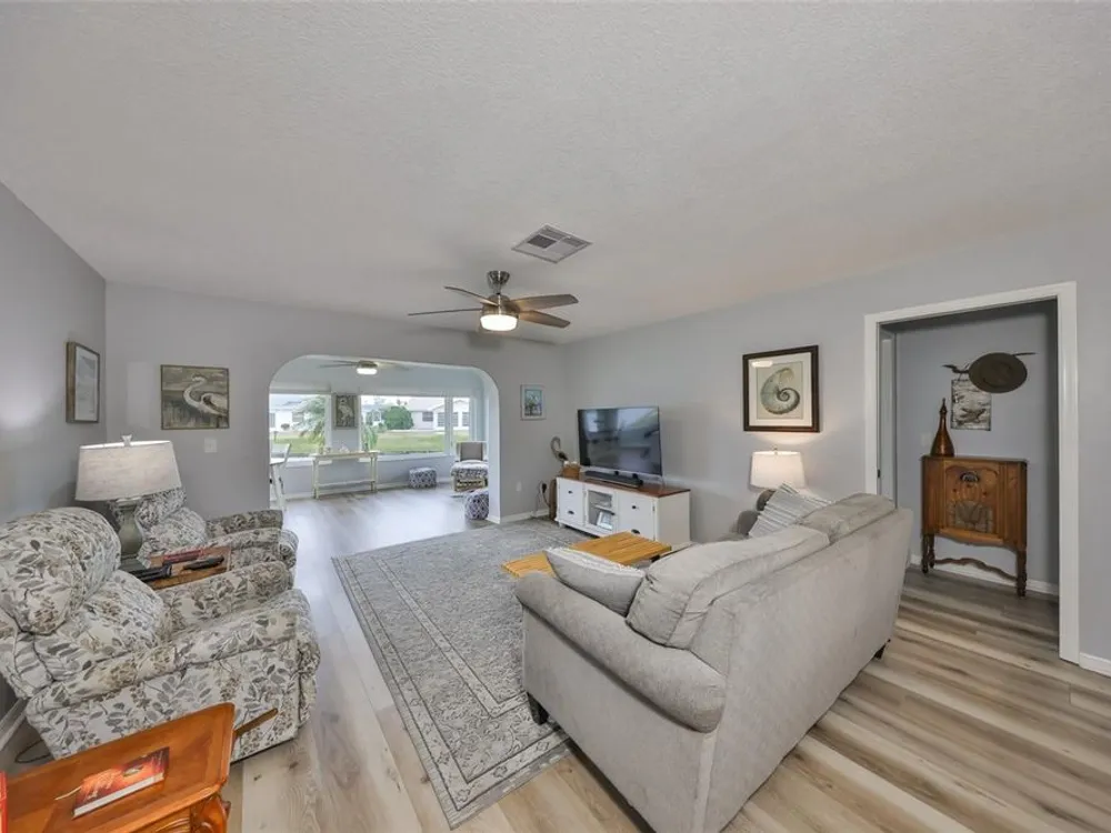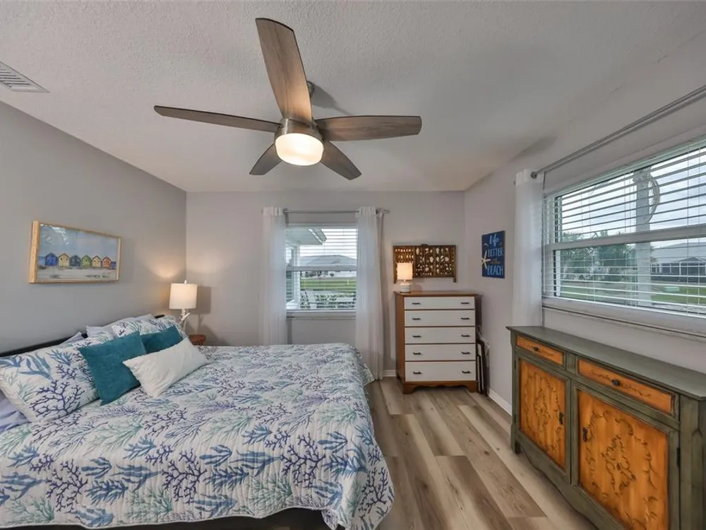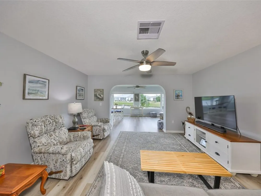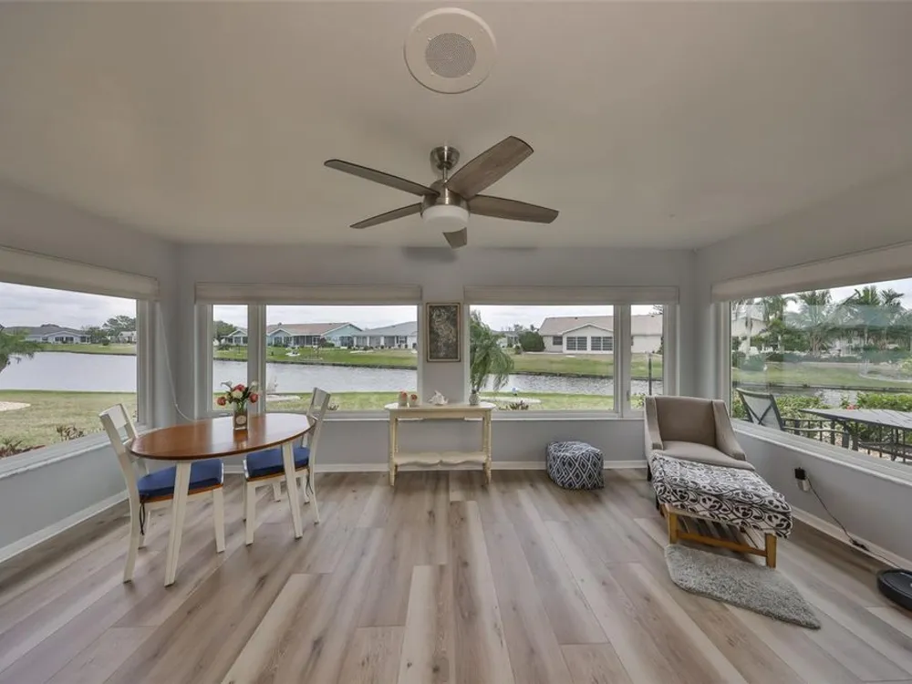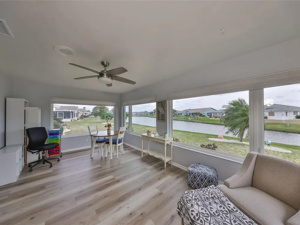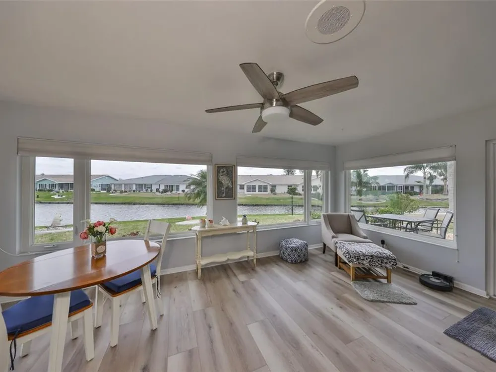 SELLER MOTIVATED. Calling all WATER LOVERS! .AMAZING WATER FRONTAGE ON MIRROR LAKE..TRULY EXCEPTIONAL, COMPLETELY UPDATED AND MOVE IN READY, this 2bed, 2bath “TWINTREE” model, is positioned on an oversized lot at the end of a quiet CUL-DE-SAC. CONTEMPORARY UPDATES AND A NEUTRAL paint palate makes this home EXCEPTIONAL. TWINTREEs are highly desired, as they have a split floor plan with 2 PRIVATE PRIMARY BEDROOM SUITES along with a LIVING ROOM, DINING ROOM and LARGE FAMILY ROOM. Walking through the front door you will see the living room and dining room areas have ample room for entertaining. The kitchen is off the dining area with full view of the family room, FLORIDA ROOM and Lake Mirror. This home is SPARKLING CLEAN and boasts of over $40K of UPGRADES! The Florida room has newer windows and STUNNING VIEWS OF MIRROR LAKE. The Kitchen has GRANITE counters, NEWER APPLIANCES, MODERN CABINETS, REVERSE OSMOSIS SYSTEM and RECESSED LIGHTING. Off the kitchen is an INDOOR laundry room with additional storage. Continuous, WATERPROOF, HIGH-END WOOD LAMINATE flows throughout the entire home. All floors are one level, so no step downs. Bathrooms have been FULLY UPDATED with CONTEMPORARY FIXTURES. All NEW interior painting, ceiling fans, light fixtures and closet doors. Even the popcorn ceiling has been removed. Just outside the FLORIDA room is an outdoor patio, a perfect space to while away the hours watching mother nature, boaters, or just enjoy a good book with a glass of wine. You could even put a small gate to ‘fence in’ the open-air patio for a small pet. You'll be amazed at the bountiful wildlife that surrounds the lush landscape. This was to be a FOREVER HOME, but life is a journey and the current owners have found their journey changing. Hence, a RARE OPPORTUNITY to own such a beautiful home is now yours. There are over 200 clubs, indoor and outdoor pools, pickle ball, lawn bowling and many other activities. Drive your golf cart to & from the clubhouses, computer room, woodworking shop, cafe, state of the art fitness center, grocery shopping, community center, the dog park and much more. You will never be without something to do in Sun City Center. TOO MANY UPDATES TO MENTION HERE, so schedule a showing to see just how beautiful this home really is. ROOF 2021, HVAC 2014, WATER SOFTENER 2023, REVERSE OSMOSIS 2023, 7 newer windows installed, Surround Sound in the Living Room.