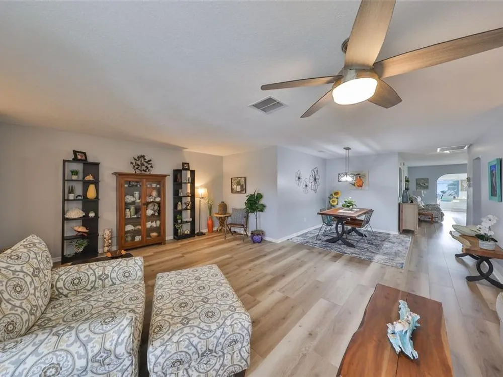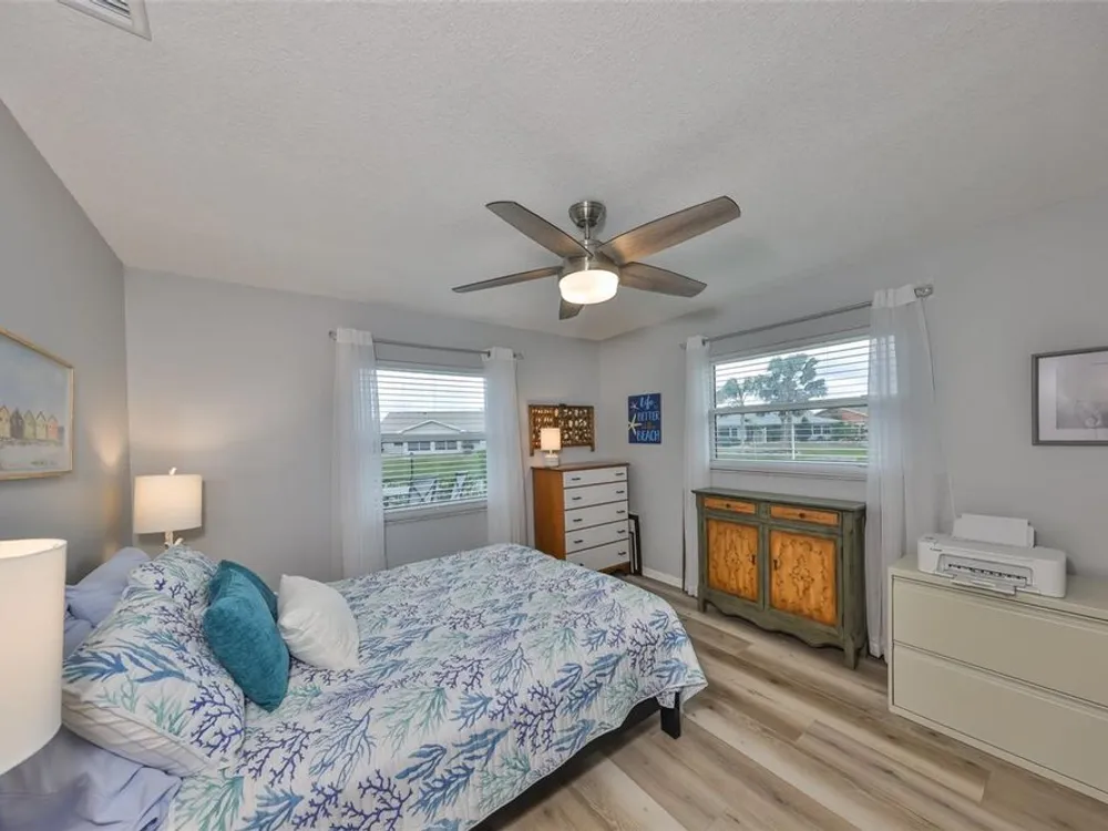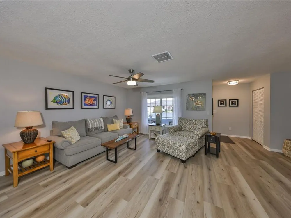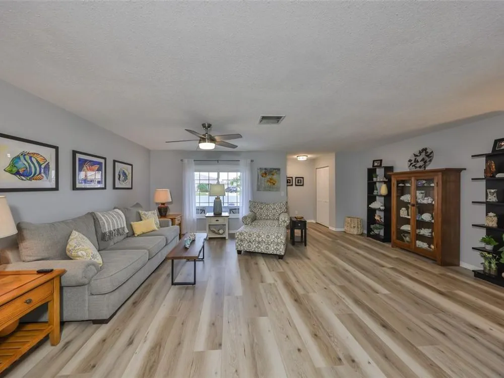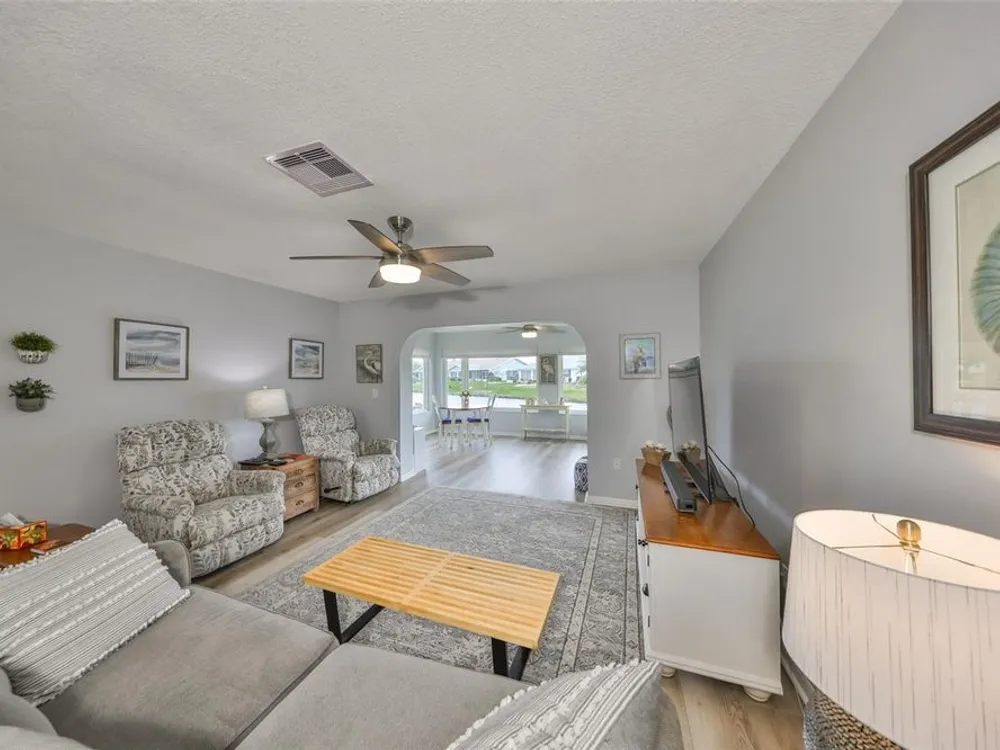 SELLER MOTIVATED. Calling all WATER LOVERS! .AMAZING WATER FRONTAGE ON MIRROR LAKE..TRULY EXCEPTIONAL, COMPLETELY UPDATED AND MOVE IN READY, this 2bed, 2bath “TWINTREE” model, is positioned on an oversized lot at the end of a quiet CUL-DE-SAC. CONTEMPORARY UPDATES AND A NEUTRAL paint palate makes this home EXCEPTIONAL. TWINTREEs are highly desired, as they have a split floor plan with 2 PRIVATE PRIMARY BEDROOM SUITES along with a LIVING ROOM, DINING ROOM and LARGE FAMILY ROOM. Walking through the front door you will see the living room and dining room areas have ample room for entertaining. The kitchen is off the dining area with full view of the family room, FLORIDA ROOM and Lake Mirror. This home is SPARKLING CLEAN and boasts of over $40K of UPGRADES! The Florida room has newer windows and STUNNING VIEWS OF MIRROR LAKE. The Kitchen has GRANITE counters, NEWER APPLIANCES, MODERN CABINETS, REVERSE OSMOSIS SYSTEM and RECESSED LIGHTING. Off the kitchen is an INDOOR laundry room with additional storage. Continuous, WATERPROOF, HIGH-END WOOD LAMINATE flows throughout the entire home. All floors are one level, so no step downs. Bathrooms have been FULLY UPDATED with CONTEMPORARY FIXTURES. All NEW interior painting, ceiling fans, light fixtures and closet doors. Even the popcorn ceiling has been removed. Just outside the FLORIDA room is an outdoor patio, a perfect space to while away the hours watching mother nature, boaters, or just enjoy a good book with a glass of wine. You could even put a small gate to ‘fence in’ the open-air patio for a small pet. You'll be amazed at the bountiful wildlife that surrounds the lush landscape. This was to be a FOREVER HOME, but life is a journey and the current owners have found their journey changing. Hence, a RARE OPPORTUNITY to own such a beautiful home is now yours. There are over 200 clubs, indoor and outdoor pools, pickle ball, lawn bowling and many other activities. Drive your golf cart to & from the clubhouses, computer room, woodworking shop, cafe, state of the art fitness center, grocery shopping, community center, the dog park and much more. You will never be without something to do in Sun City Center. TOO MANY UPDATES TO MENTION HERE, so schedule a showing to see just how beautiful this home really is. ROOF 2021, HVAC 2014, WATER SOFTENER 2023, REVERSE OSMOSIS 2023, 7 newer windows installed, Surround Sound in the Living Room.