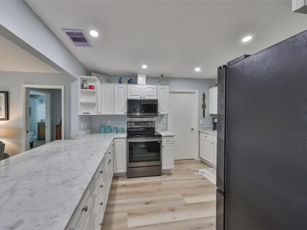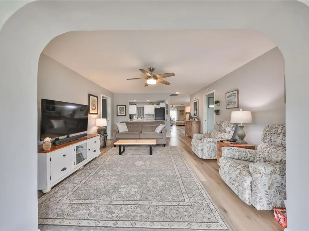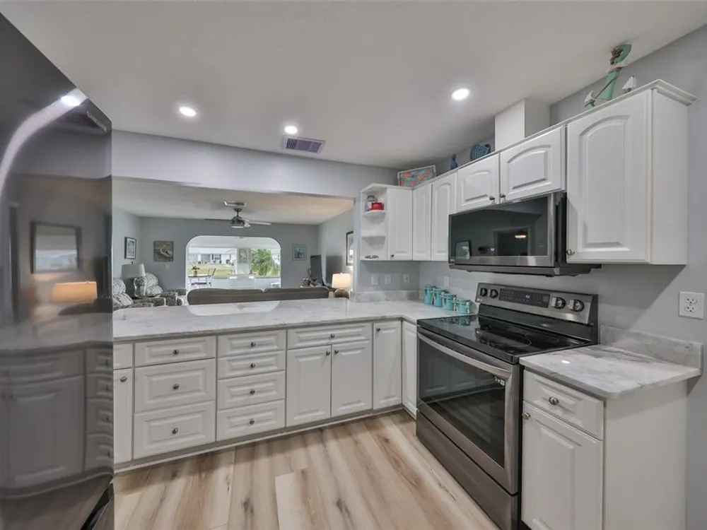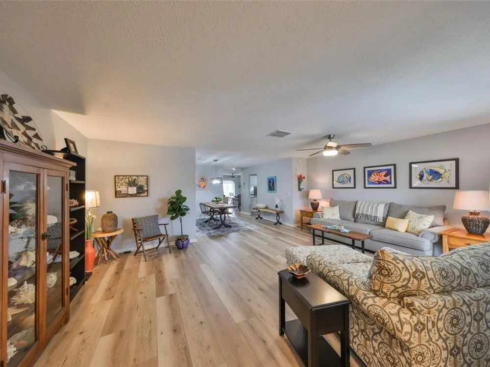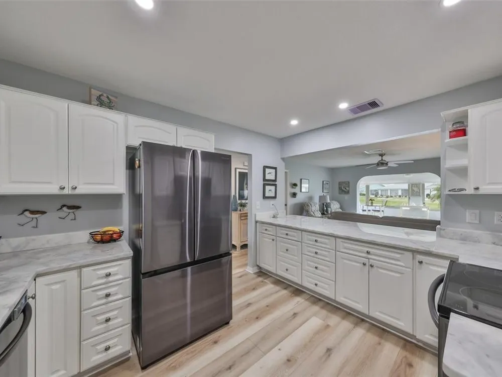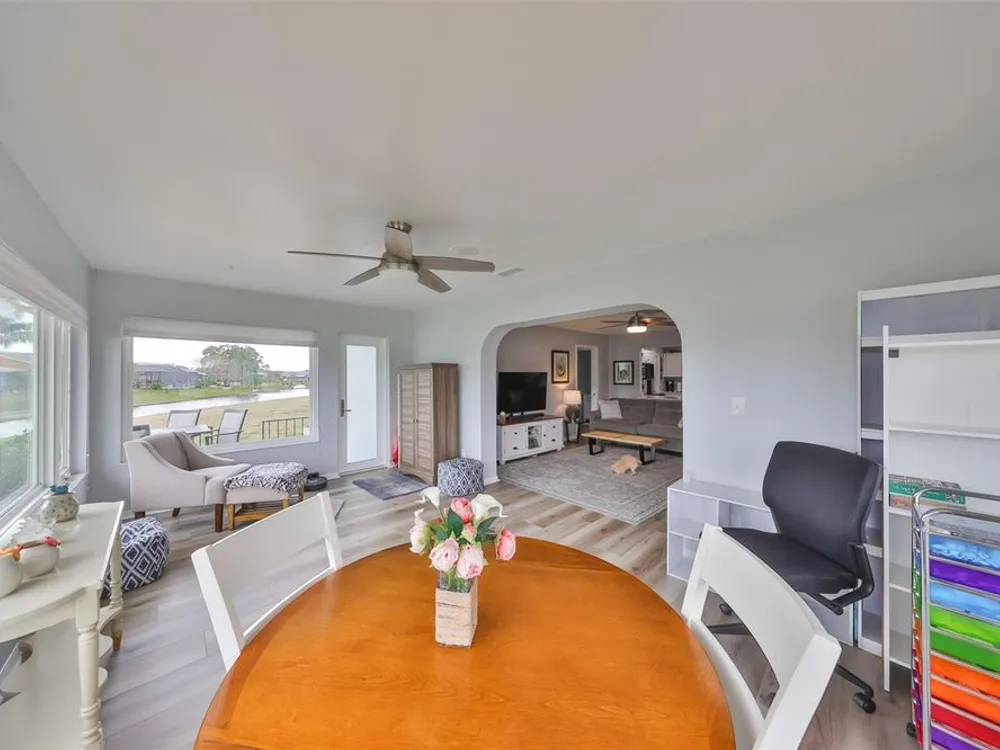 SELLER MOTIVATED. Calling all WATER LOVERS! .AMAZING WATER FRONTAGE ON MIRROR LAKE..TRULY EXCEPTIONAL, COMPLETELY UPDATED AND MOVE IN READY, this 2bed, 2bath “TWINTREE” model, is positioned on an oversized lot at the end of a quiet CUL-DE-SAC. CONTEMPORARY UPDATES AND A NEUTRAL paint palate makes this home EXCEPTIONAL. TWINTREEs are highly desired, as they have a split floor plan with 2 PRIVATE PRIMARY BEDROOM SUITES along with a LIVING ROOM, DINING ROOM and LARGE FAMILY ROOM. Walking through the front door you will see the living room and dining room areas have ample room for entertaining. The kitchen is off the dining area with full view of the family room, FLORIDA ROOM and Lake Mirror. This home is SPARKLING CLEAN and boasts of over $40K of UPGRADES! The Florida room has newer windows and STUNNING VIEWS OF MIRROR LAKE. The Kitchen has GRANITE counters, NEWER APPLIANCES, MODERN CABINETS, REVERSE OSMOSIS SYSTEM and RECESSED LIGHTING. Off the kitchen is an INDOOR laundry room with additional storage. Continuous, WATERPROOF, HIGH-END WOOD LAMINATE flows throughout the entire home. All floors are one level, so no step downs. Bathrooms have been FULLY UPDATED with CONTEMPORARY FIXTURES. All NEW interior painting, ceiling fans, light fixtures and closet doors. Even the popcorn ceiling has been removed. Just outside the FLORIDA room is an outdoor patio, a perfect space to while away the hours watching mother nature, boaters, or just enjoy a good book with a glass of wine. You could even put a small gate to ‘fence in’ the open-air patio for a small pet. You'll be amazed at the bountiful wildlife that surrounds the lush landscape. This was to be a FOREVER HOME, but life is a journey and the current owners have found their journey changing. Hence, a RARE OPPORTUNITY to own such a beautiful home is now yours. There are over 200 clubs, indoor and outdoor pools, pickle ball, lawn bowling and many other activities. Drive your golf cart to & from the clubhouses, computer room, woodworking shop, cafe, state of the art fitness center, grocery shopping, community center, the dog park and much more. You will never be without something to do in Sun City Center. TOO MANY UPDATES TO MENTION HERE, so schedule a showing to see just how beautiful this home really is. ROOF 2021, HVAC 2014, WATER SOFTENER 2023, REVERSE OSMOSIS 2023, 7 newer windows installed, Surround Sound in the Living Room.