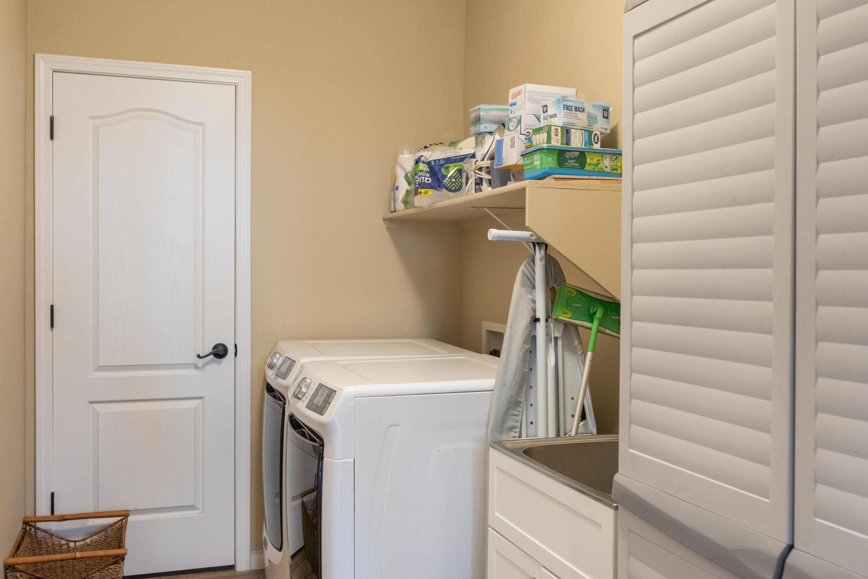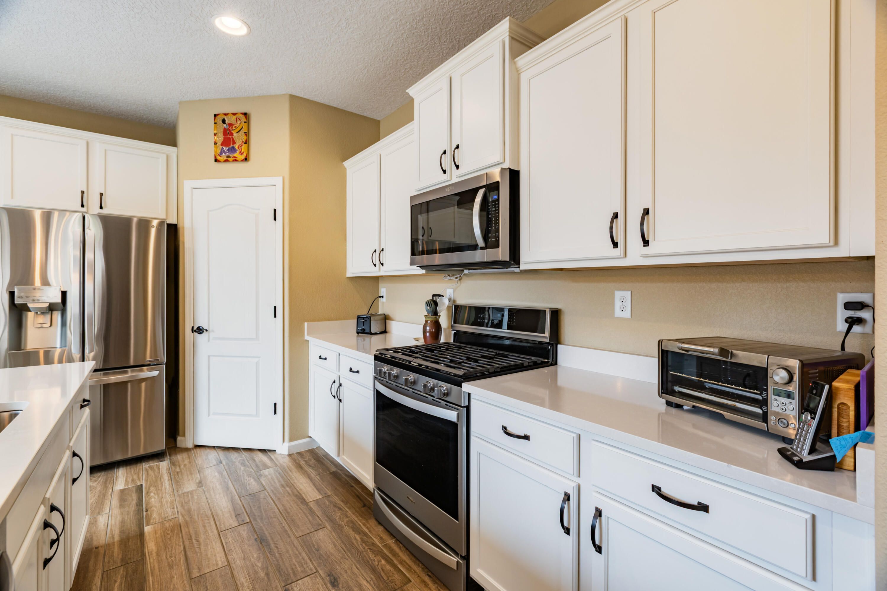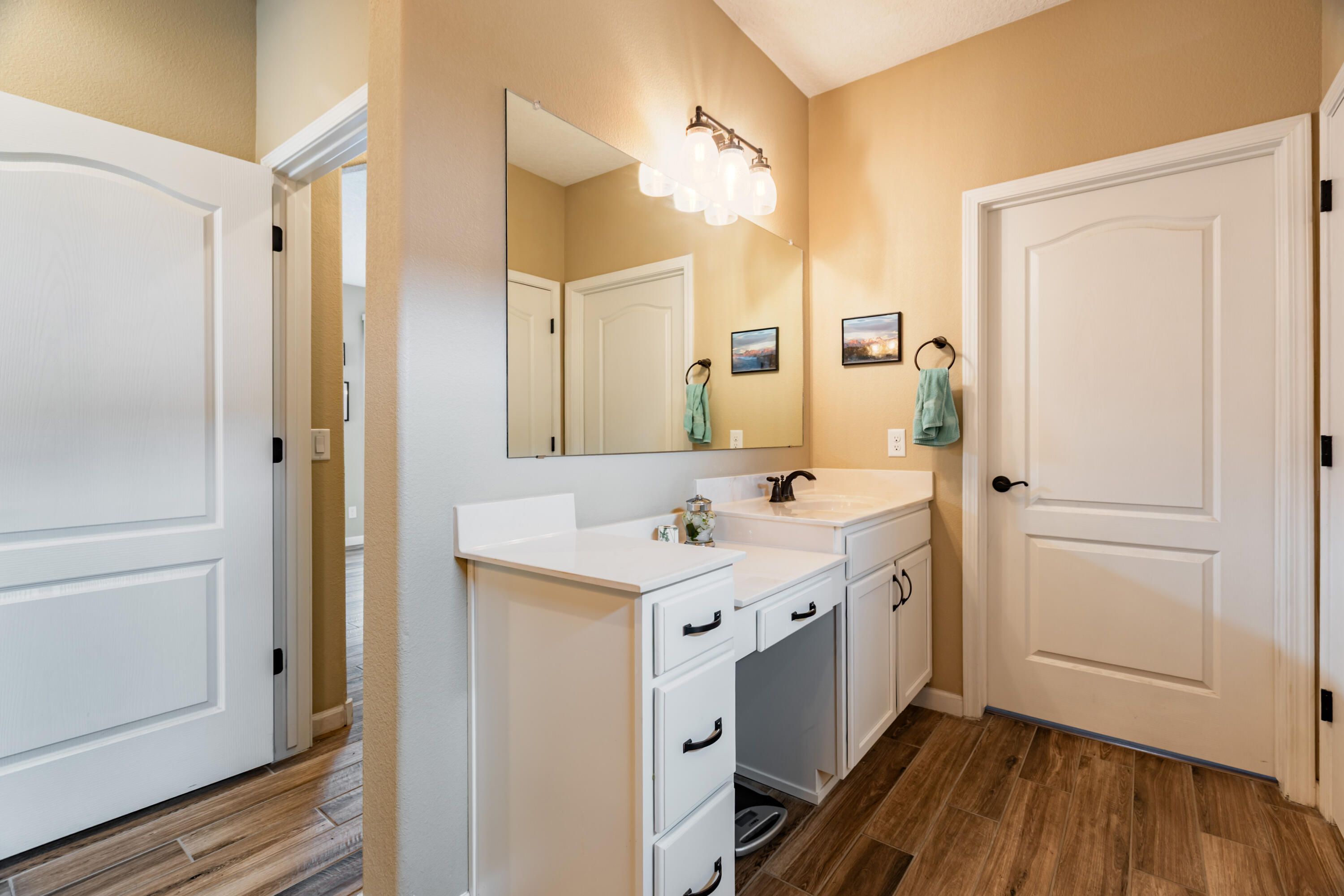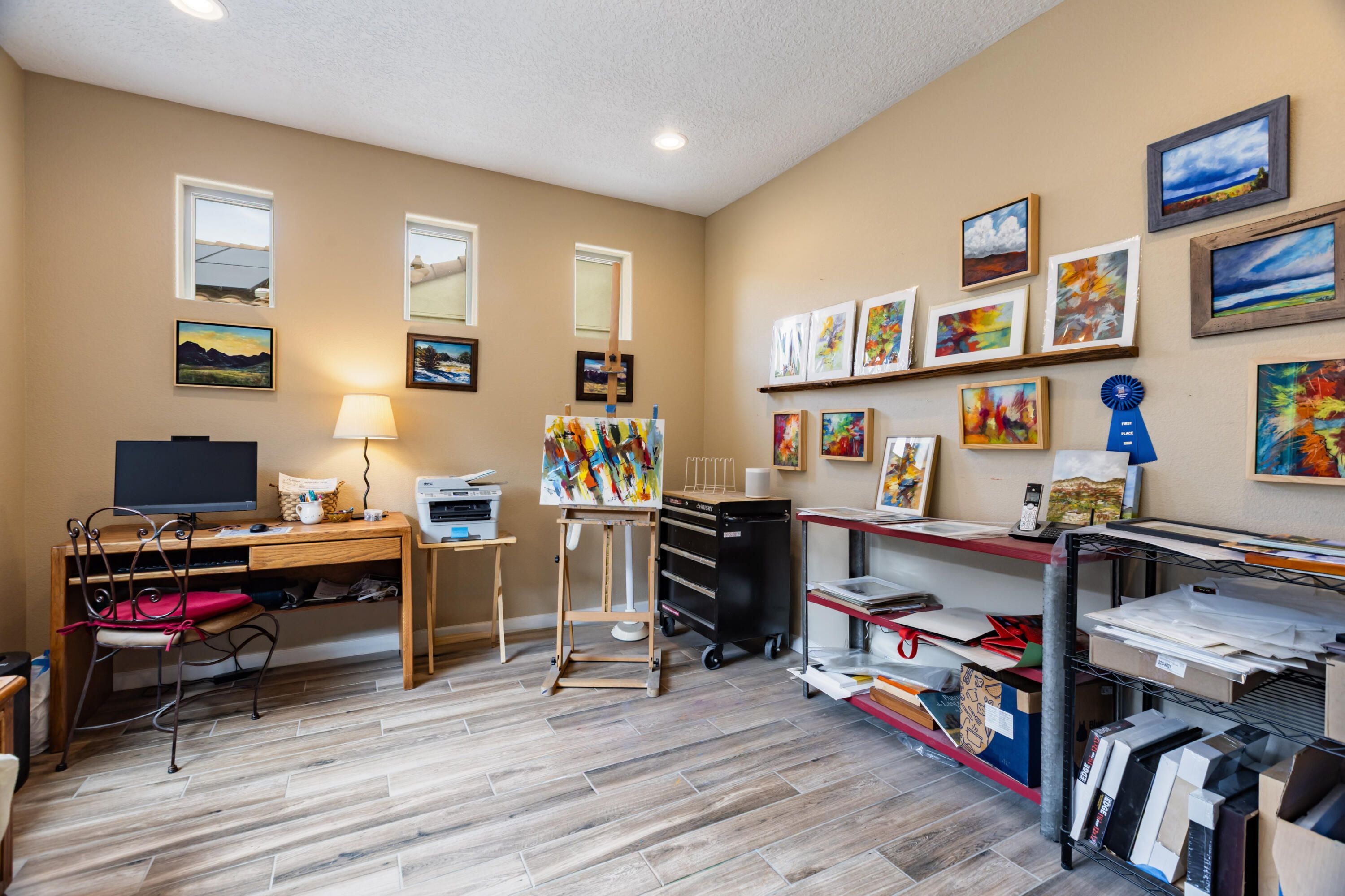 Beautiful home located in the 55+ Active Adult Gated Community in Del Webb Mirehaven! Original Owners built this home in 2019 w/ numerous upgrades including bay window in the primary bedroom, large WIC w/built-in drawers & shelving, extended 4ft garage w/'Hobby Package' w/extra storage & workbench stays, soft arched hallways, chefs kitchen, quartz countertops, French doors at office, laundry room sink, wood look tile, whole house water filter, custom blinds, ceiling fans, gas range. Home backs to open space & sits on a large .18 acre lot and is custom landscaped including: stained concrete side patio/courtyard & sidewalk to the backyard, pavers on the back patio, turf, plantings & gutters. You'll love the Sandia Amenity Center w/daily activities, gym, pool, Pickle Ball, tennis and more!!