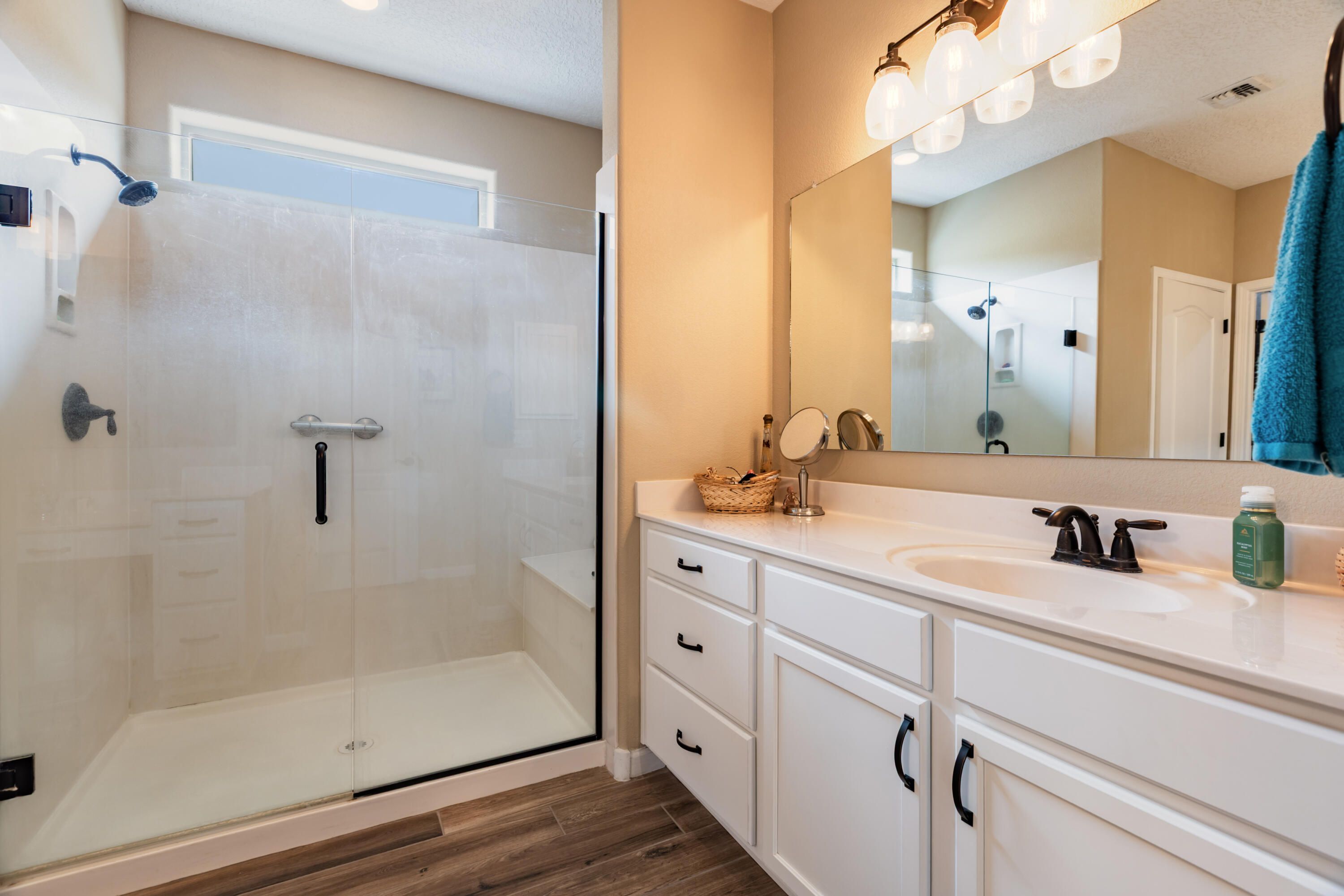 - Ceiling Fan(s), Dual Sinks, Home Office, Kitchen Island, Multiple Living Areas, Main Level Primary, Pantry, Separate Shower, Walk-In Closet(s)