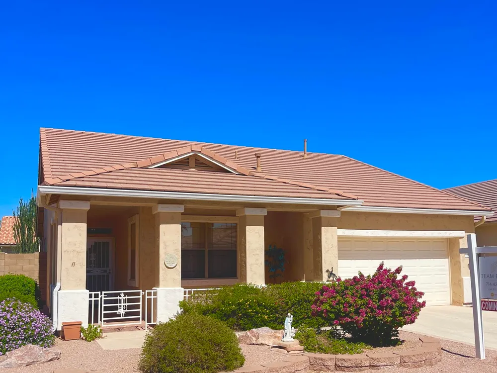Discover the charm of Arizona Traditions - where neighbors become lifelong friends and every day feels like vacation. Residents love this intimate, gated 55+ community for its friendly, small-town feel surrounded by stunning desert & mountain views. This home covered by a 2023 tile roof offers an updated kitchen with granite countertops and vaulted ceilings for an open and sunny feel. The primary en-suite bedroom with shower and large walk-in closet. The den serves as either an office, hobby area or additional sleeping area for guests. Inside laundry room with wash sink and lots of room to also be used for storage or hobby area. The 2 car attached garage has built in cabinetry and the landscaped back yard is private, has a shady covered patio and also a gated dog run for your pup! Enjoy resort-style living in Arizona Traditions with 3 sparkling pools, pickleball and tennis courts, golf on a beautifully landscaped course, and a vibrant clubhouse filled with laughter, music, and countless clubs to match every hobby. Whether it's morning walks under endless blue skies, evenings at the community barbecues, or simply relaxing in the peace and quiet of a secure yard, Arizona Traditions offers that perfect blend of connection, comfort, and carefree living that makes retirement feel truly rewarding.