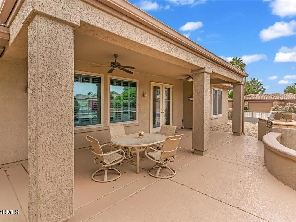 Beautiful Borgata model FULLY FURNISHED in Sun City Grand featuring a desirable split floor plan and exceptional resort-style amenities. The spacious layout includes a covered patio with a built-in gas grill overlooking a low-maintenance, desert-landscaped yard—perfect for relaxing or entertaining. The home is situated on a large 1/4 acre corner lot. Enjoy the unparalleled lifestyle that Sun City Grand offers, with four championship golf courses, multiple recreation centers, state-of-the-art fitness facilities, indoor and outdoor swimming pools, tennis and pickleball courts, and a full calendar of social clubs and community events. Residents also have convenient access to restaurants, shopping, and healthcare services—all just minutes away