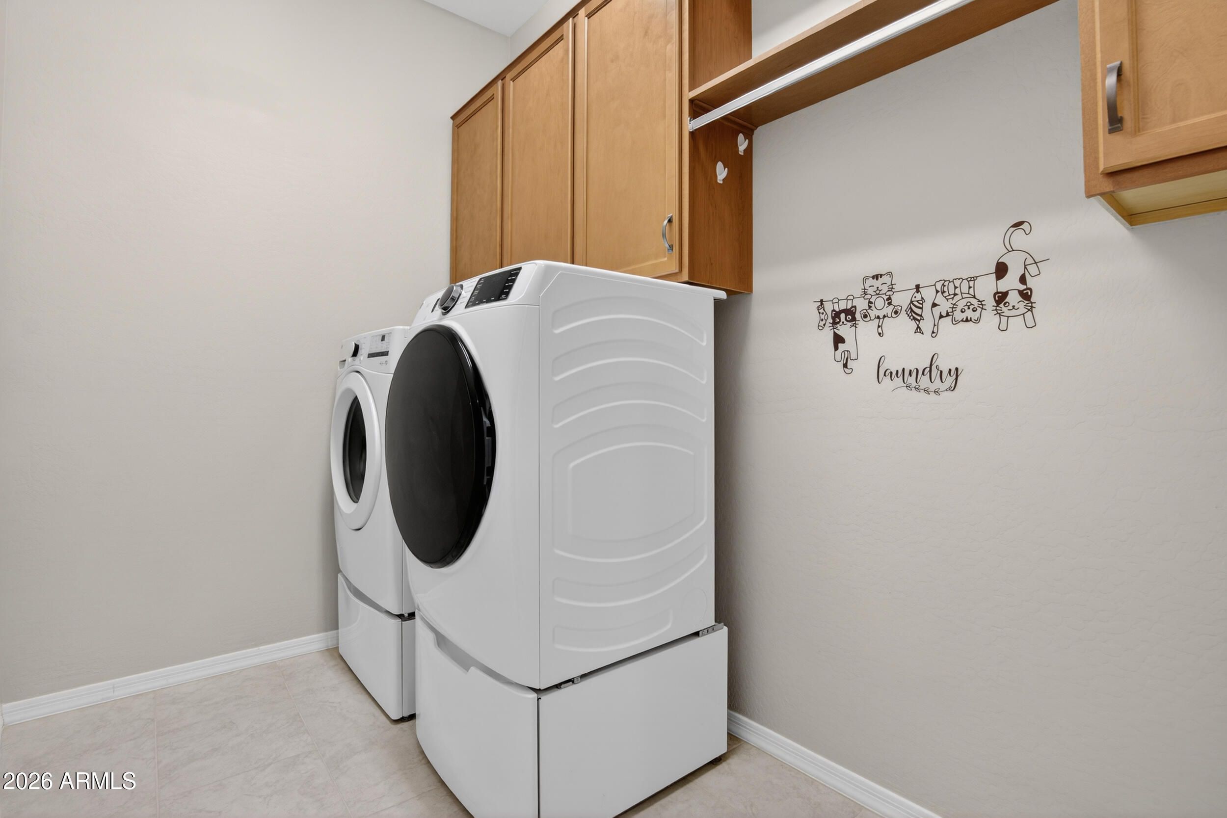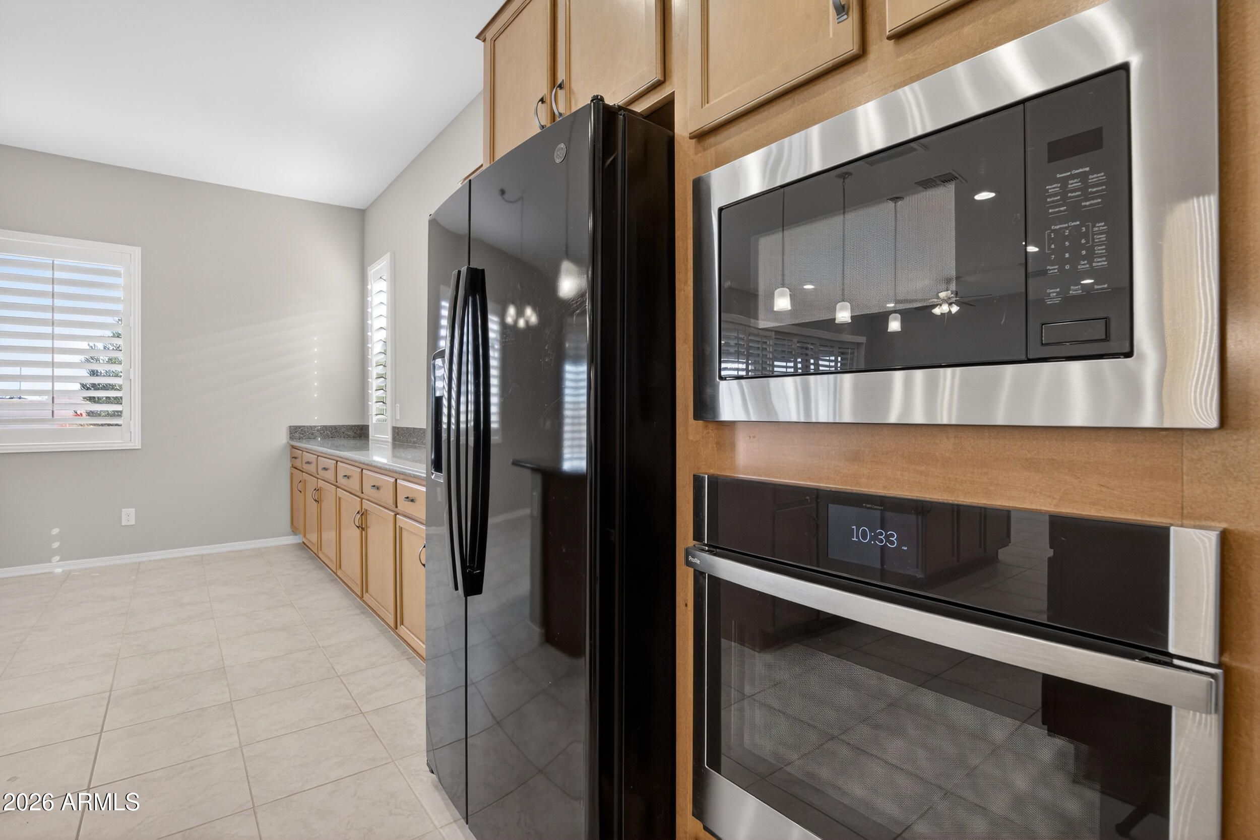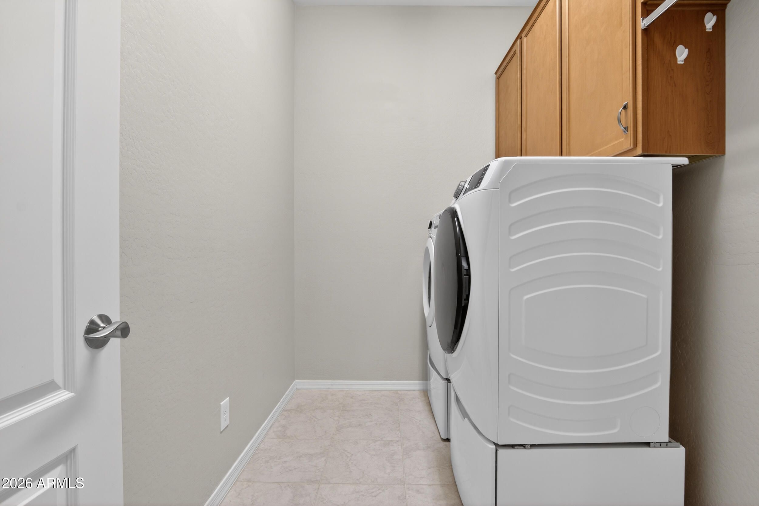 Welcome to Cantamia at Estrella, where every day feels more relaxed and enjoyable. Located on a private corner lot at the end of a cul de sac, this upgraded Taylor Morrison Octave floor plan offers exceptional privacy with no direct back neighbors and a peaceful setting. The home features 2 bedrooms plus a dedicated office, 10 foot ceilings, shutters throughout, ADA height counters, a walk in shower with grab bars, and a built in credenza. The kitchen offers extended cabinetry, under cabinet lighting, RO system, water softener, and ample storage. Additional highlights include a 2-car garage, laundry cabinetry, tankless water heater, gas line to BBQ, power to side gate, holiday outlet, Ring doorbell, and front load washer and dryer conveying. Enjoy Cantamia's resort lifestyle ! Cantamia at Estrella is a premier 55 plus community designed for active living, connection, and everyday enjoyment. Residents enjoy a resort style village center featuring indoor and outdoor pools, spa, fitness center, movement studios, and a full calendar of wellness classes. The community offers pickleball and tennis courts, bocce ball, walking and biking trails, lakes, dog parks, and beautifully maintained common areas. Social opportunities include clubs, interest groups, arts and crafts, games, live music, special events, and organized activities throughout the year. On site dining and gathering spaces create an easy way to connect with friends and neighbors. Cantamia offers a lifestyle focused on staying active, social, and engaged while enjoying the comfort and ease of low maintenance living in a beautifully planned setting.
