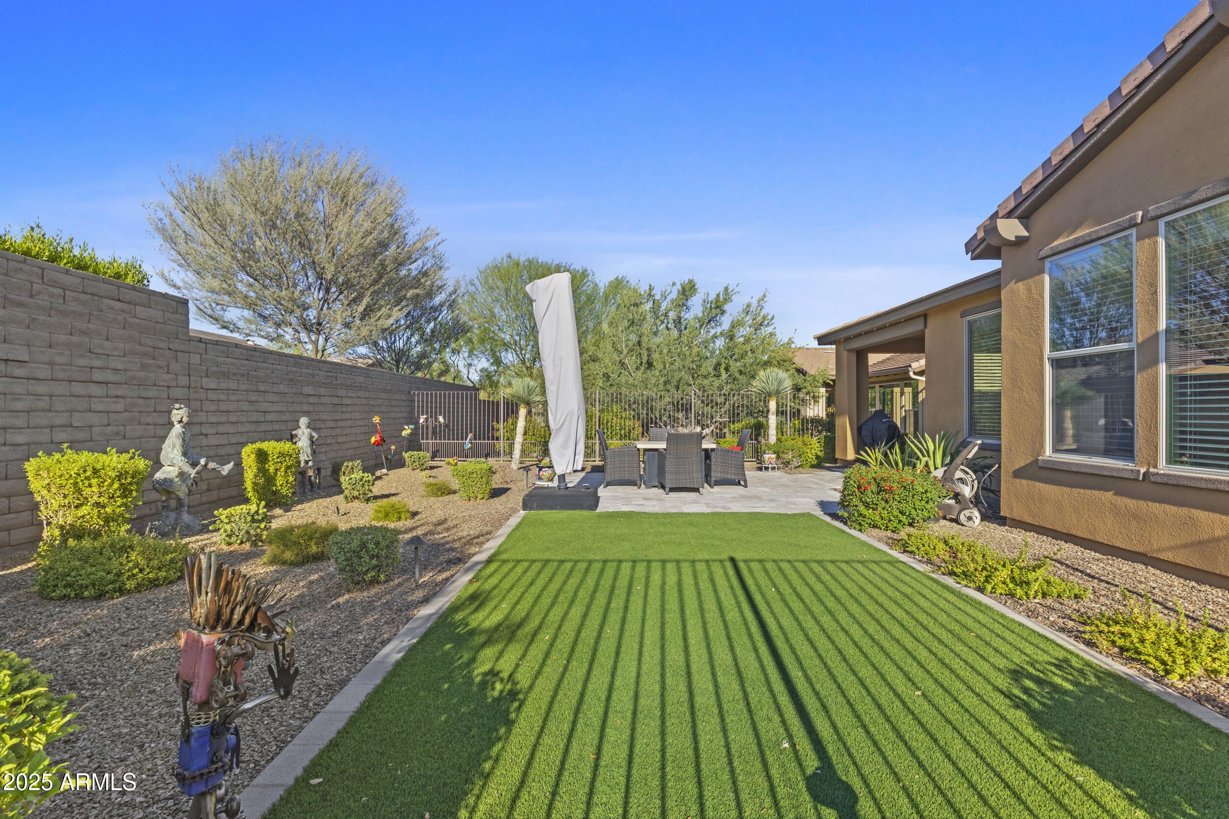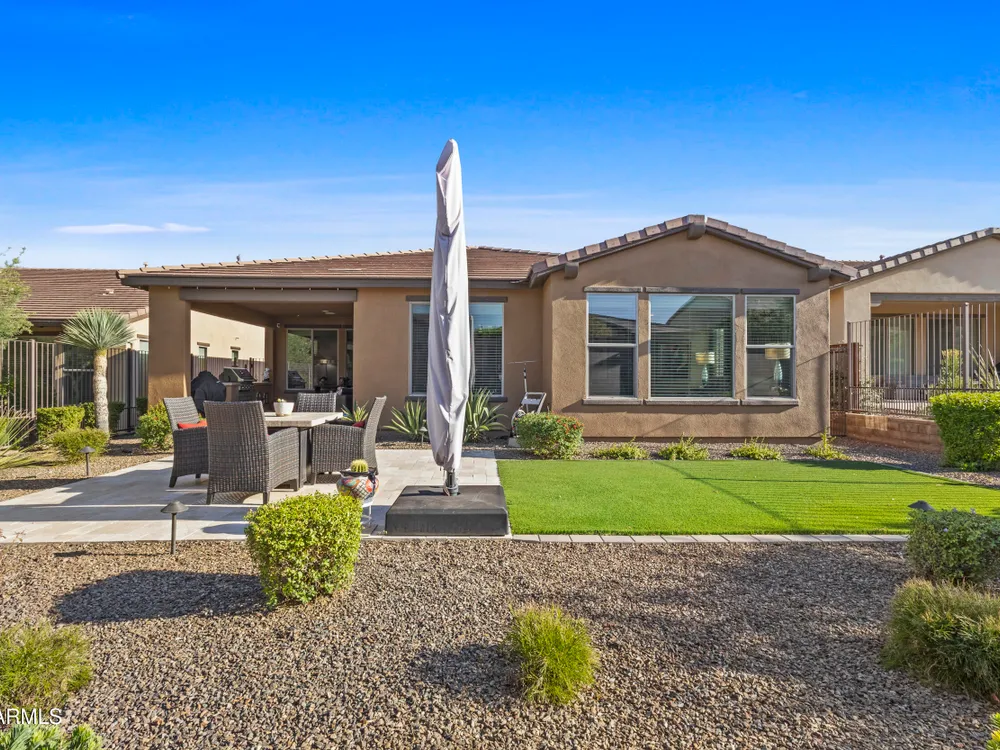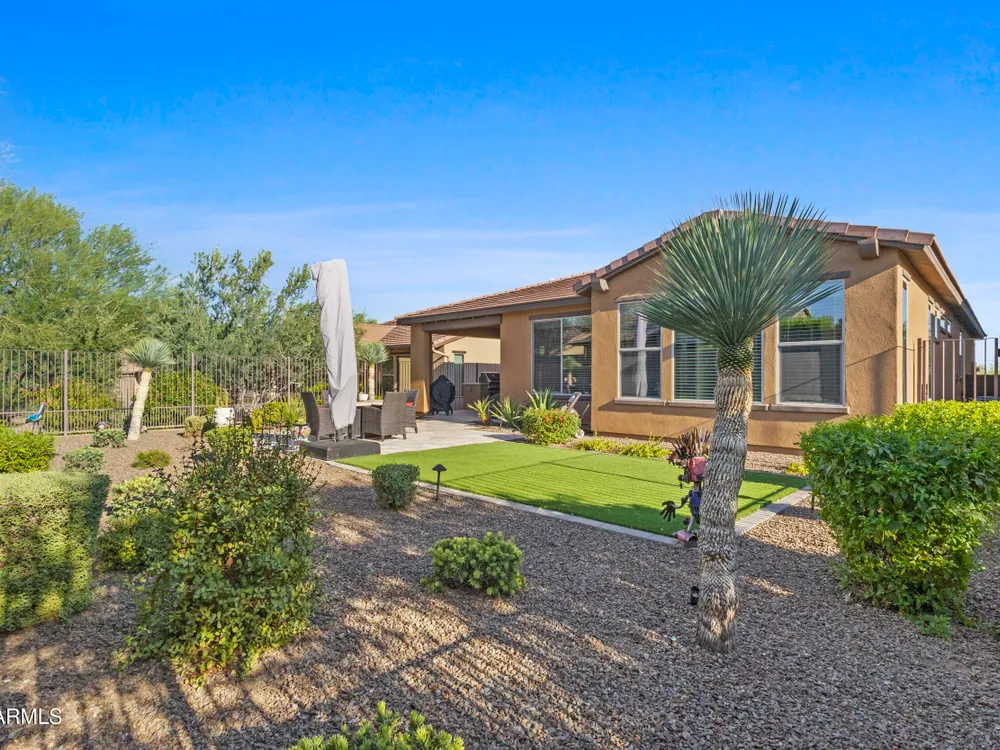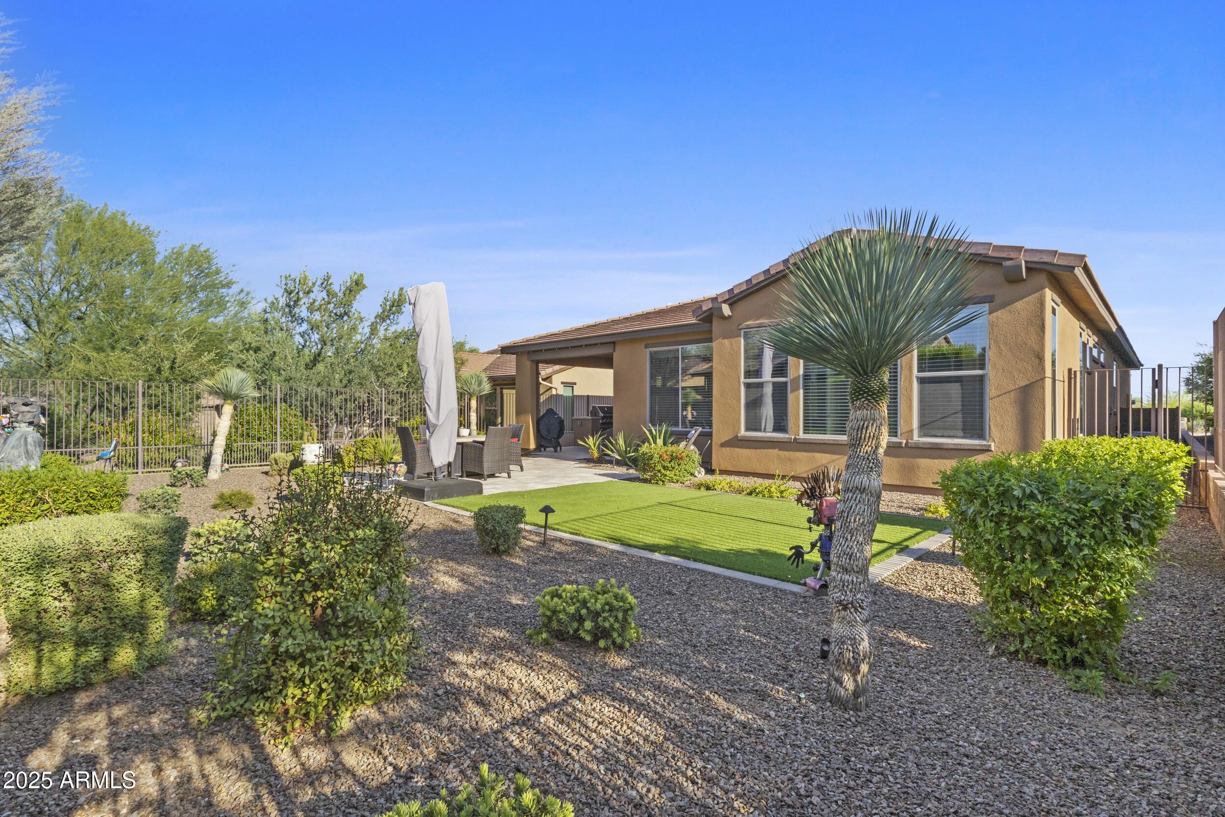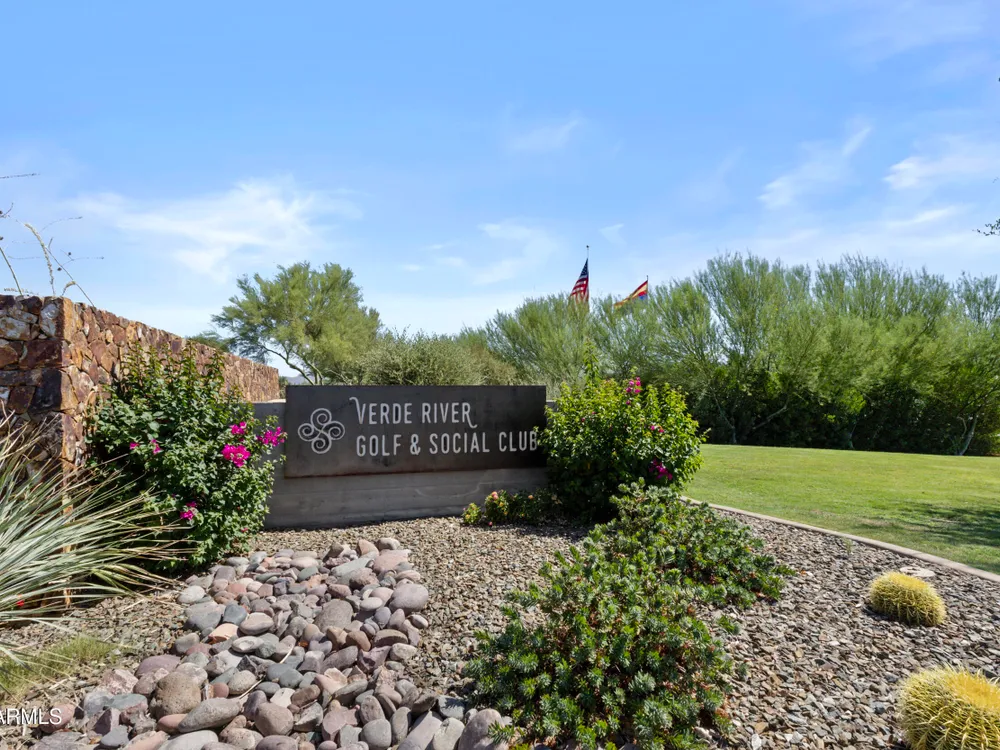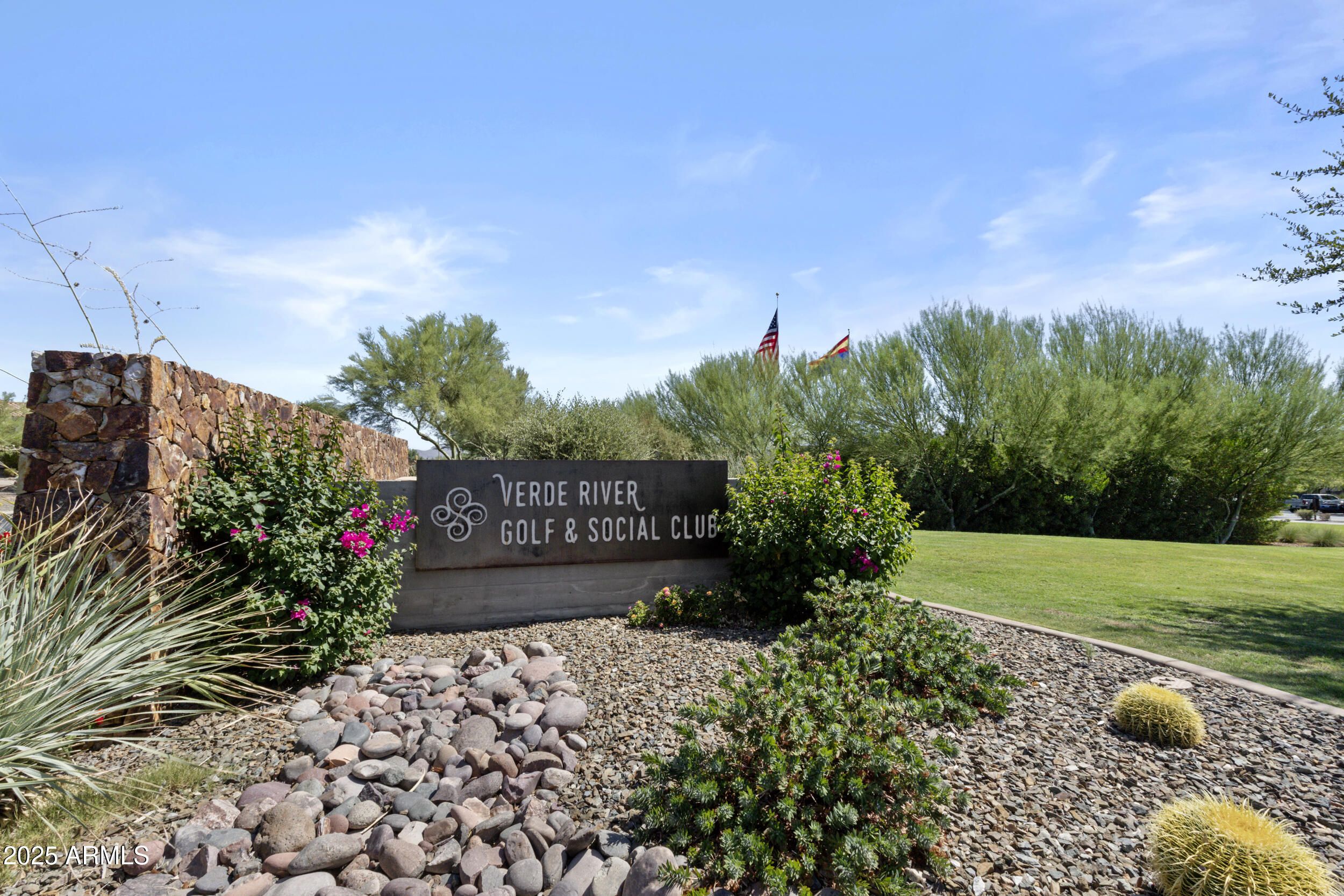Discover this popular floor plan in the sought-after Trilogy at Verde River, a premier gated golf community. This 2-bedroom, 2-bath home includes a versatile den/office, a fenced backyard, and a gourmet kitchen with upgraded stainless steel built-ins, a spacious island, and custom touches throughout. The primary suite offers a tiled shower, dual sinks, and a custom walk-in closet. Extras include a soft/RO water system, upgraded smart room/laundry with quartz counters, garage cabinets with epoxy floors, and a peaceful backyard retreat with built-in BBQ, extended travertine pavers, artificial turf, and misting system. Enjoy resort-style living with access to a Tom Lehman-designed golf course, clubhouse with dining at Needle Rock Kitchen & Tap, casual fare at Eddy's Diner, full-service spa, fitness center, pools, tennis, pickleball, dog park, art studio, and more. Nestled by the Tonto National Forest with miles of hiking and biking trails, this is desert living at its finest.