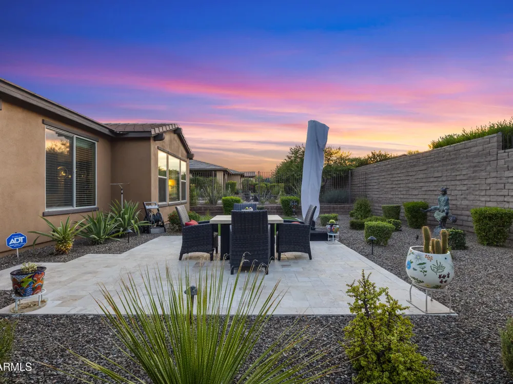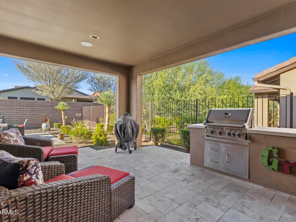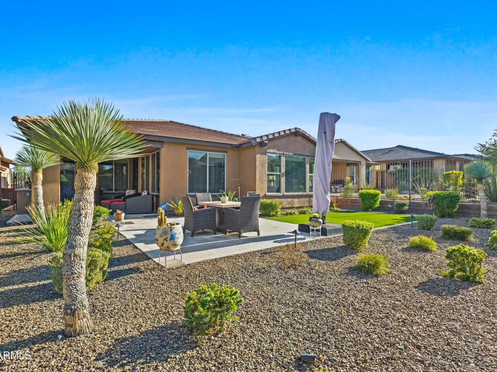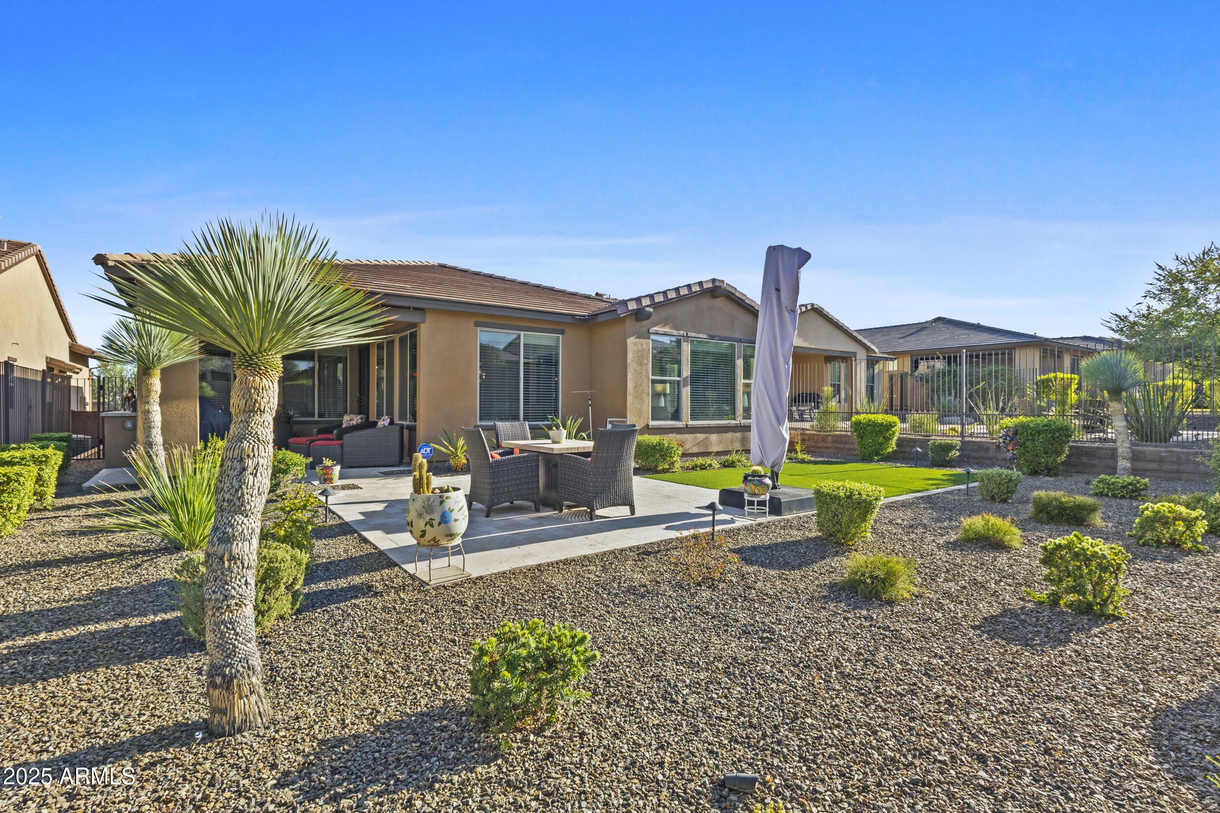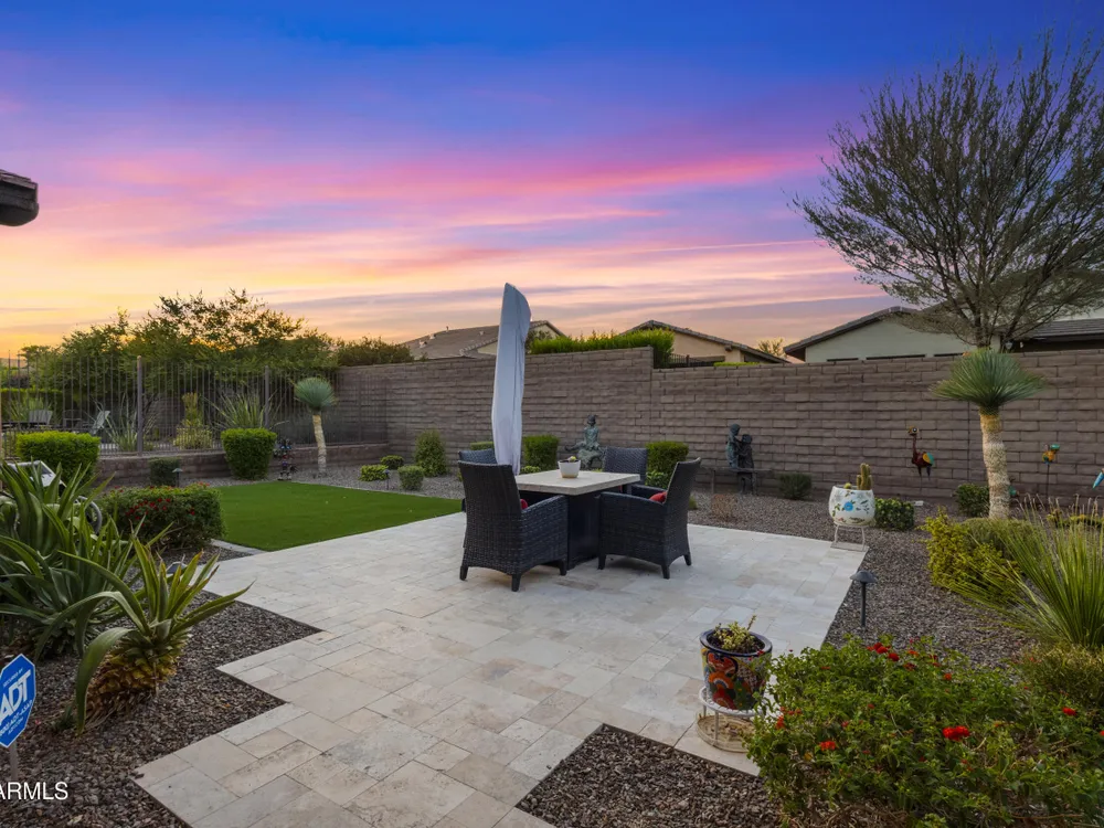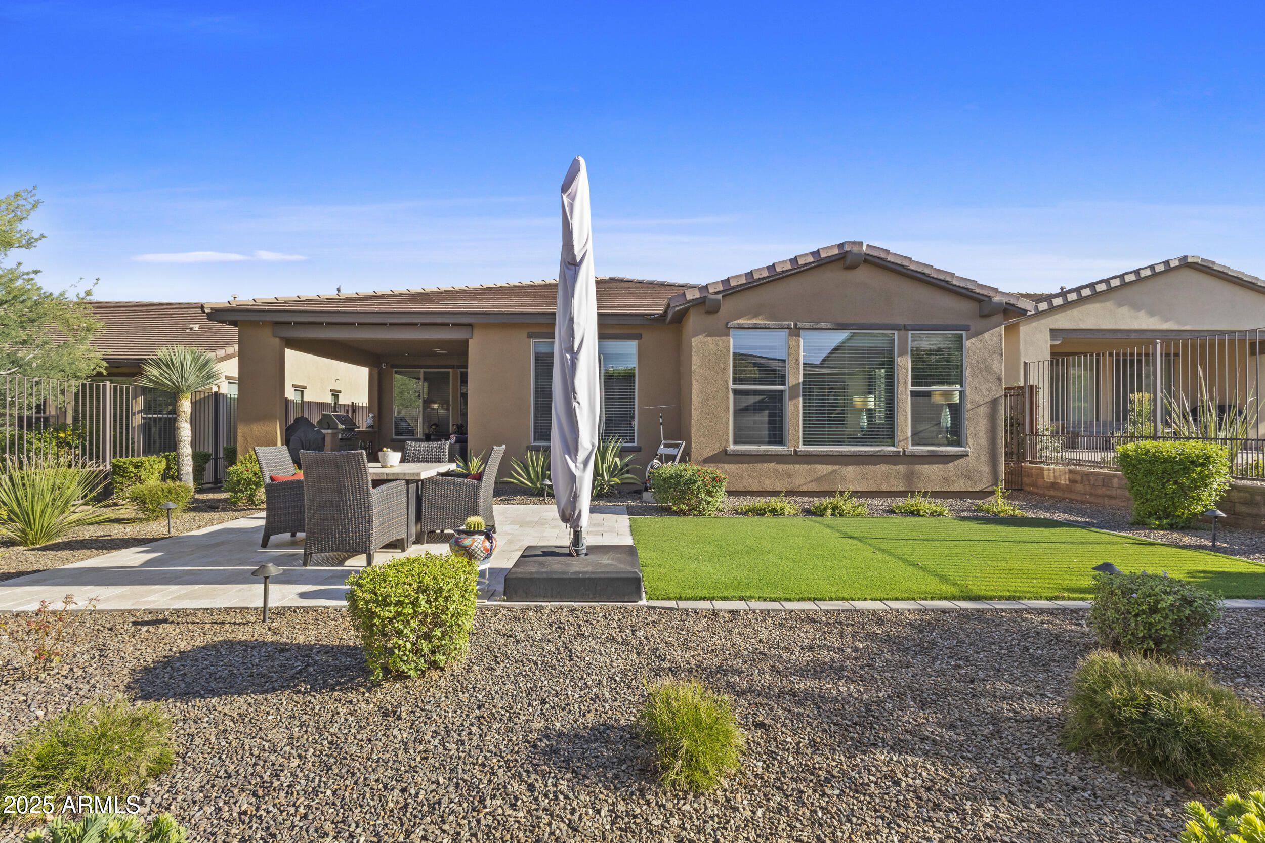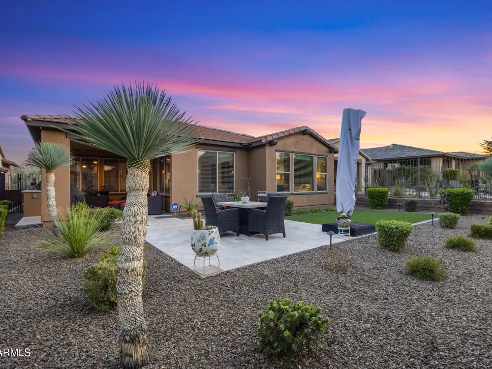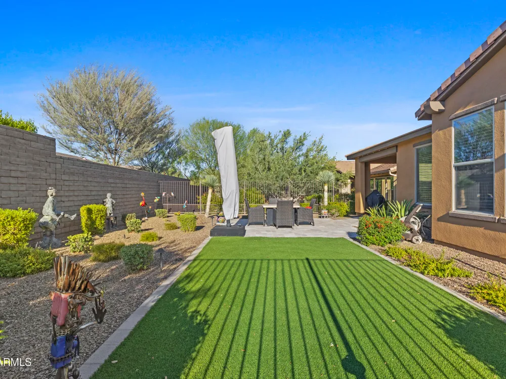 Discover this popular floor plan in the sought-after Trilogy at Verde River, a premier gated golf community. This 2-bedroom, 2-bath home includes a versatile den/office, a fenced backyard, and a gourmet kitchen with upgraded stainless steel built-ins, a spacious island, and custom touches throughout. The primary suite offers a tiled shower, dual sinks, and a custom walk-in closet. Extras include a soft/RO water system, upgraded smart room/laundry with quartz counters, garage cabinets with epoxy floors, and a peaceful backyard retreat with built-in BBQ, extended travertine pavers, artificial turf, and misting system. Enjoy resort-style living with access to a Tom Lehman-designed golf course, clubhouse with dining at Needle Rock Kitchen & Tap, casual fare at Eddy's Diner, full-service spa, fitness center, pools, tennis, pickleball, dog park, art studio, and more. Nestled by the Tonto National Forest with miles of hiking and biking trails, this is desert living at its finest.