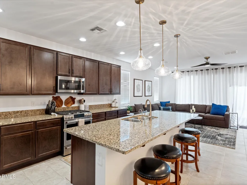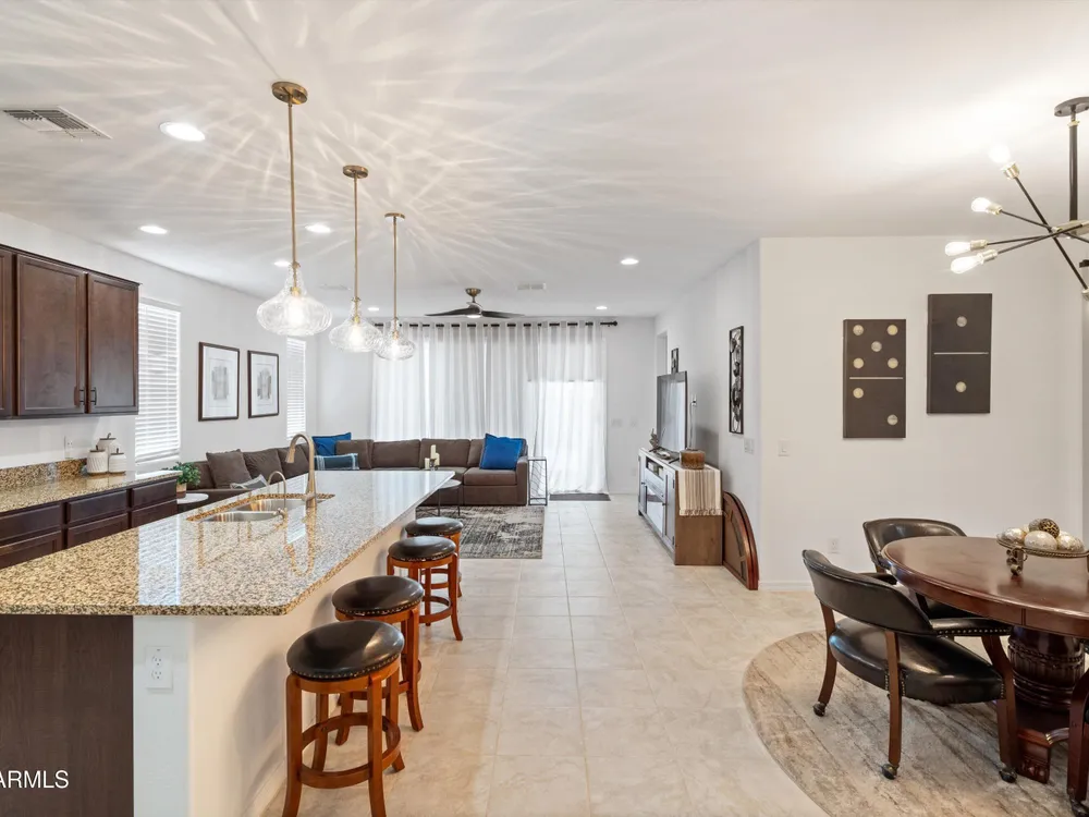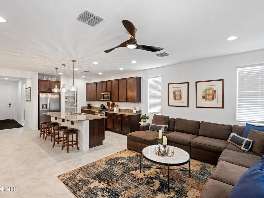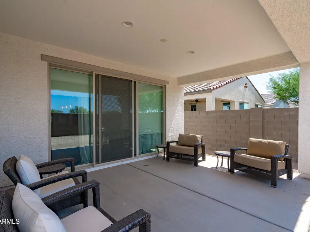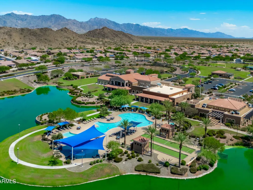 Step into this beautiful 2021 Marcato floorplan in the gated, active-adult community of CantaMia at Estrella, where every day feels like a getaway. Nestled against the breathtaking Estrella Mountains, this 2-bedroom, 2-bath home with a versatile flex room offers an open-concept design, granite countertops, and a seamless flow to the spacious covered patio—perfect for enjoying morning coffee, evening dinners, or simply relaxing under Arizona skies. The extended two-car garage provides both convenience and extra space for hobbies or storage. Life here is all about connection, wellness, and fun. Start your mornings with a swim in the indoor or outdoor pool, meet friends for pickleball or tennis, or explore your creative side in the art studio. Grab a bite at the café/bar, stay fit in the modern fitness center, or join one of the many clubs and social events that make this community so vibrant. At CantaMia, you're not just buying a homeyou're stepping into a lifestyle, surrounded by nature, neighbors, and endless opportunities to live life to the fullest in the Estrella.