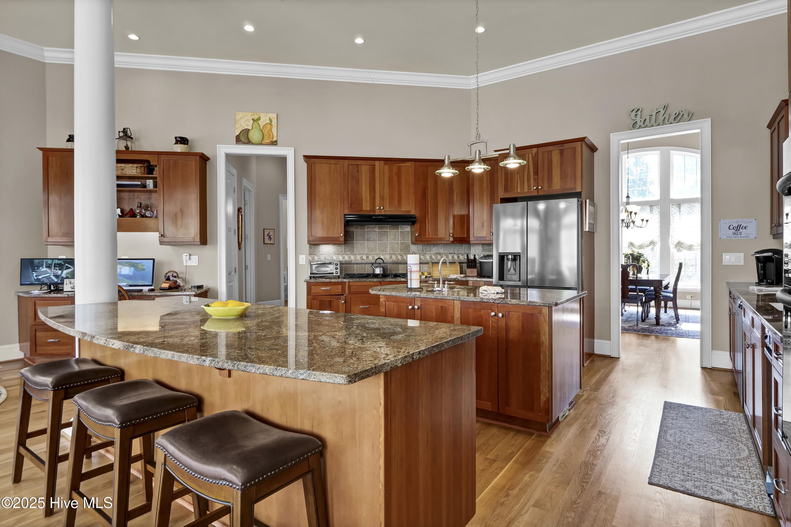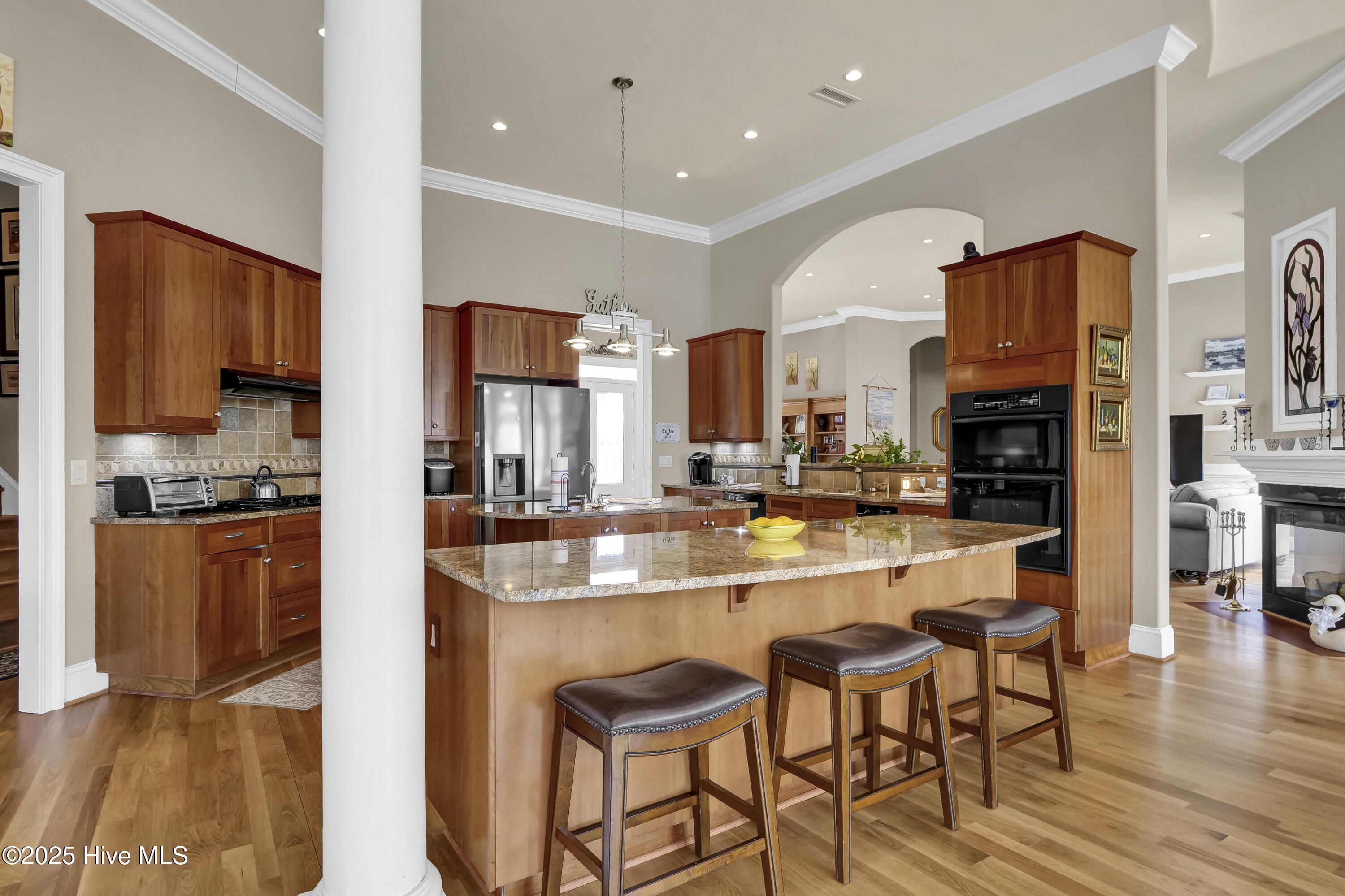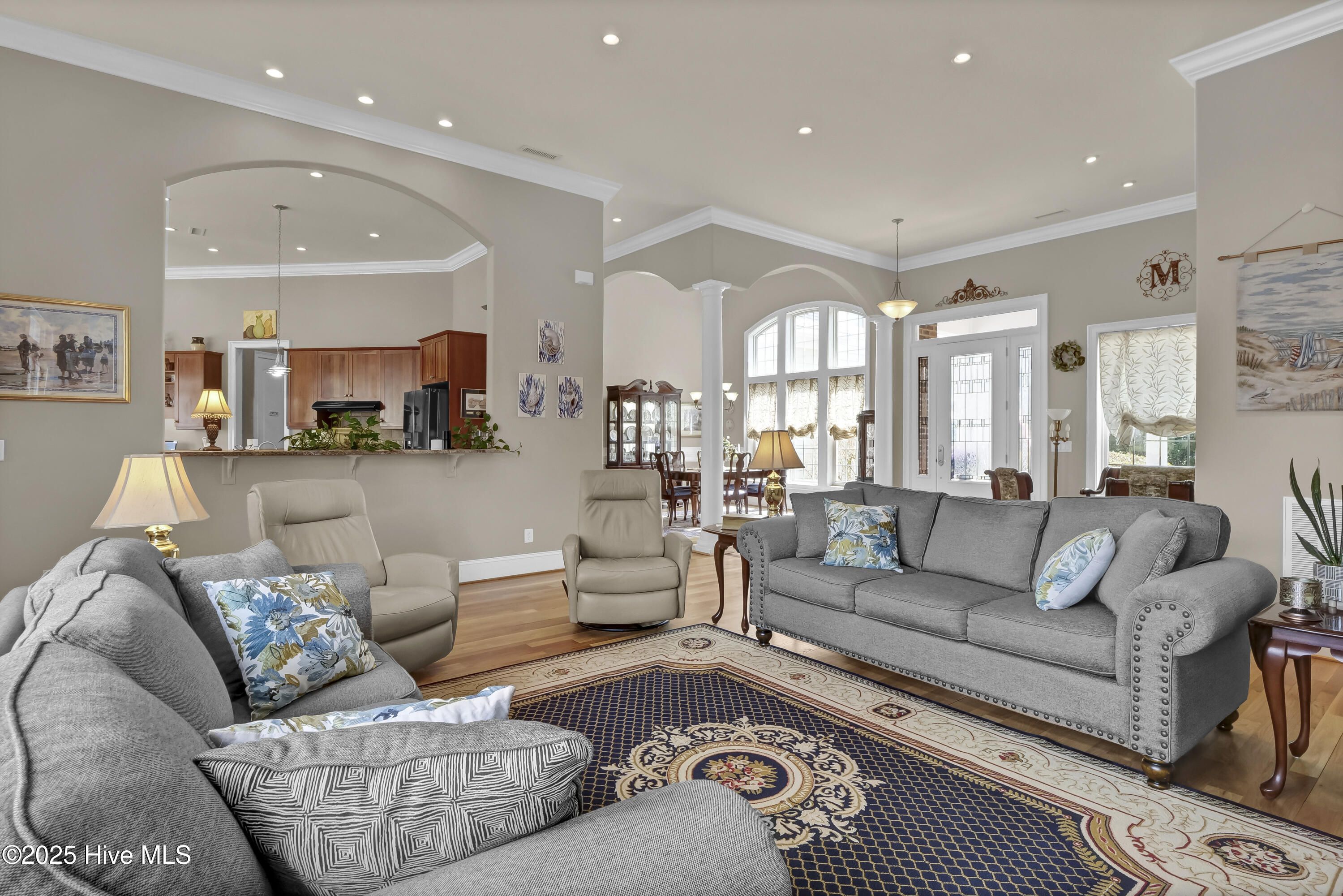 SELLER OFFERIG $5000 IN CLOSING COSTS! Incredible pond views from this fabulous custom brick home. Gourmet kitchen boasts two islands, granite counter tops, pantry and SS appliances. It is enhanced by hardwood floors, lots of natural light and a 3 car garage. The community amenities are unparalleled and include an ocean front beach club in Holden Beach with a pool and two gated parking lots, River House with picnic area and marina, Seaside marina with day slips, pool with pavilion, clubhouse, fitness ctr., tennis/pickleball, bocce and walking trails. The Carolina National Golf Course winds throughout the neighborhood.