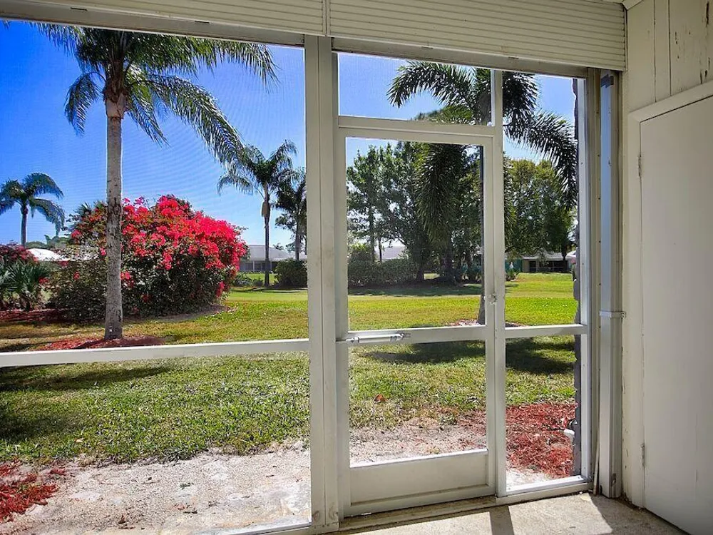 Free unlimited golf!!! Beautiful views of the par 3 course. Completely updated unit with quartz counters, stainless appliances and solid wood cabinets with soft close doors. This is a 55 plus age community. At least one person must be 55 years old to be approved through the association. Community amenities include par 3 golf, clubhouse, pool, tennis, pickleball and shuffleboard. No animals permitted. Roll down shutters for the patio and panels for all windows. Water and cable included.