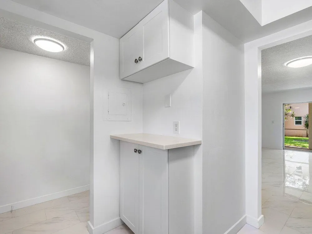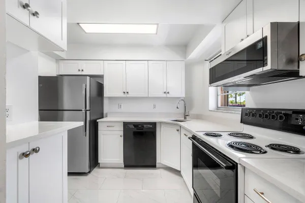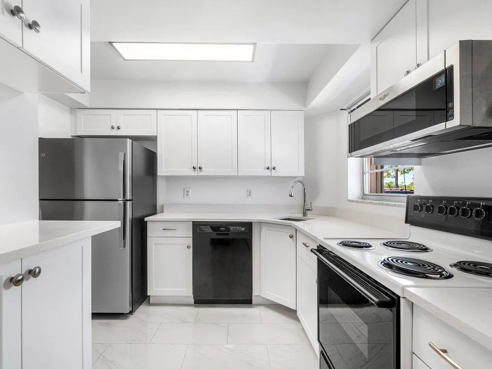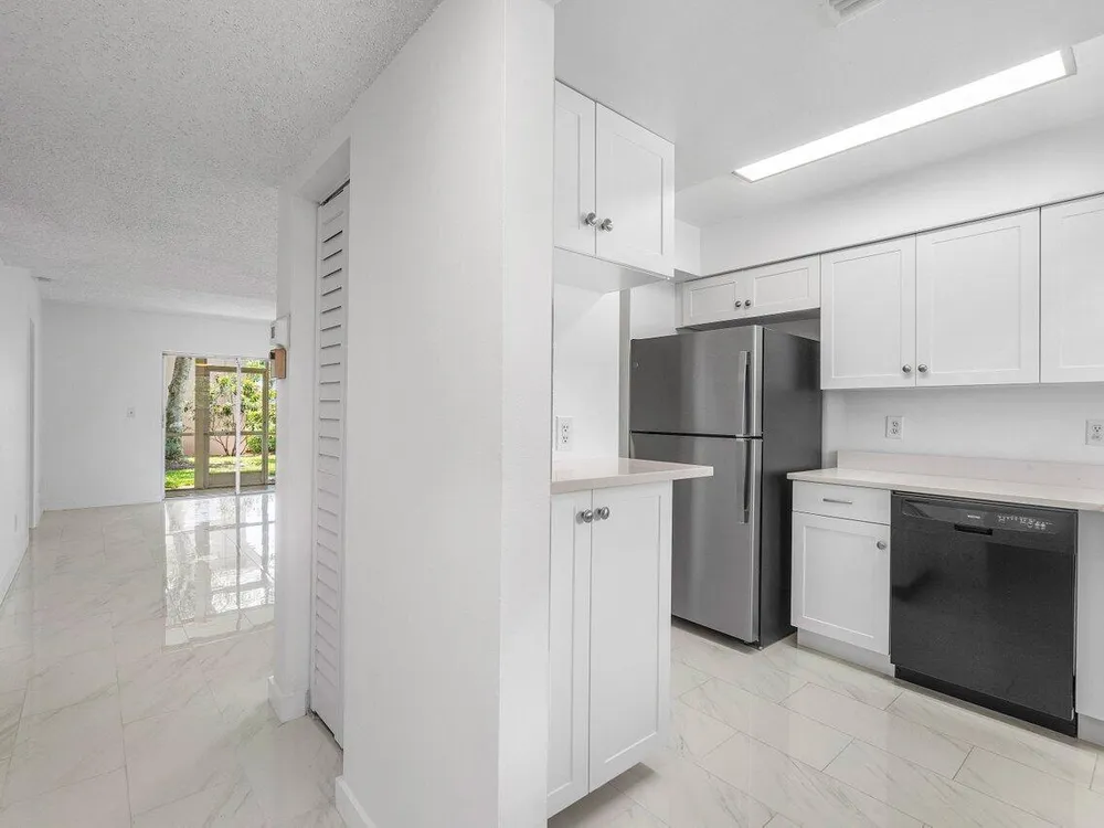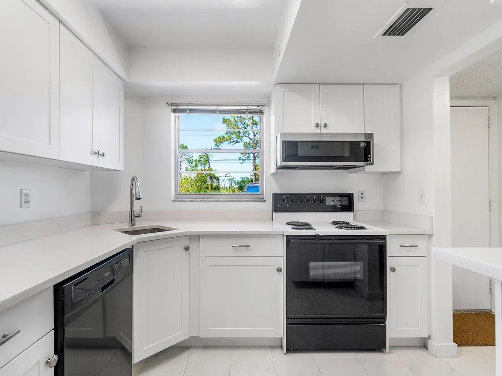 Embrace easy living in this sunlit 2BR/2BA end-unit condo in Jupiter's welcoming 55+ Little Club. This ground-floor unit offers step-free access, added privacy, and garden views. Inside, enjoy crisp white tile floors and a beautifully renovated kitchen with new cabinets and sleek countertops. Accordion shutters provide storm protection. Residents enjoy unlimited golf, pool, pickleball, clubhouse, and more all included in the low monthly fee. Close to beaches, shops, and restaurants. A smart move for those ready to simplify without compromise.