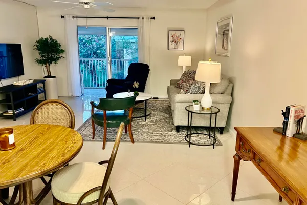 Welcome to Little Club, a serene and vibrant 55+ community nestled in Jupiter, FL, adjacent to the lush beauty of Jonathan Dickinson State Park. This beautifully furnished 2-bedroom, 1-bathroom second-floor condo offers the perfect blend of tranquility and activity. The unit features stunning tile flooring throughout, a modern kitchen, and a lovely screened-in patio where you can enjoy views of nature.Little Club residents enjoy a host of amenities, including a heated pool, pickleball, tennis, bocce ball, a 9-hole golf course, and a clubhouse with social events and a well-stocked library. The maintenance fee covers Bluestream fiber optic TV and WiFi, water, building insurance, and all lawn and amenities upkeep.