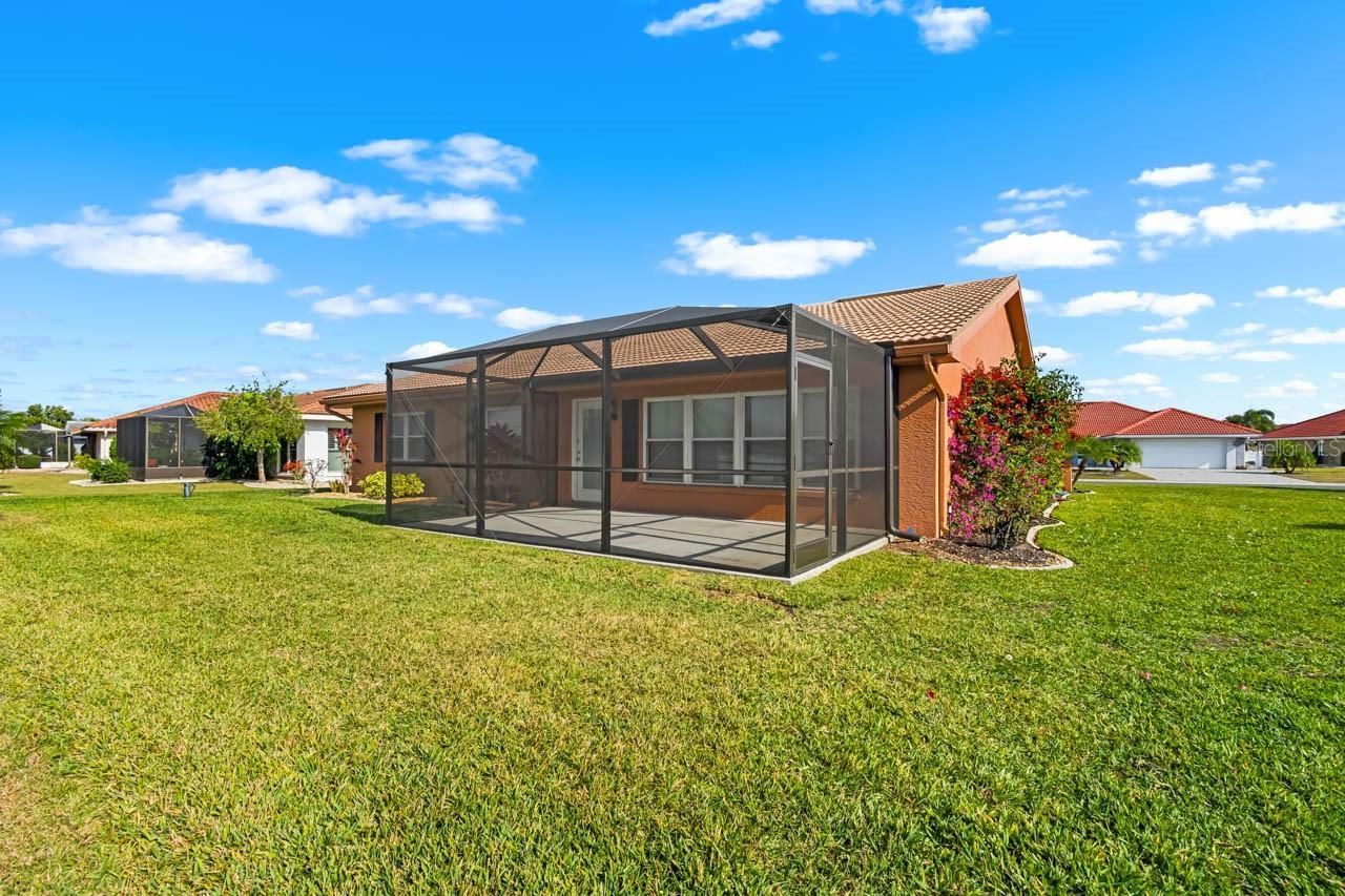Enjoy the NEWLY constructed 12'x23' screened lanai, Facing west, a GREAT spot to relax and enjoy BEAUTIFUL sunsets, and food, beverages, entertaining and endless conversations with friends and family. . . the perfect retreat! ASSUMABLE LOAN!! 3.375% INTEREST RATE... (AVAILABLE TO ANYONE WHO QUALIFIES) Step into luxury with this completely remodeled 2-bedroom, 2-bath home in the heart of SUN CITY CENTER! One of the LOWEST HOA fees in all of Sun City Center $115 a YEAR!! Named America's #1 RETIREMENT COMMUNITY for 2024 (Realtor.com). Every detail has been thoughtfully remodeled, creating a perfect blend of modern elegance and comfort. The CENTERPIECE of the home is the stunning kitchen, featuring a GRANITE WATERFALL ISLAND with custom wood cabinets. The living room and primary bedroom are accented by custom TRAY CEILINGS. Custom door molding adds a touch of SOPHISTICATION, while engineered hardwood flooring and 5" baseboards flow seamlessly throughout the house. The large and spacious primary suite, comes with a completely remodeled bath with his/her sinks and a custom spa-like 4x6ft walk-in shower, offering a serene retreat after a long day. The Large guest bedroom very comfortably accommodates a king size bed with plenty of room for more furniture. No need to worry about expensive water bills with the WELL in the back yard providing LAWN IRRIGATION. The yard has new sod and landscaping giving the property great curb appeal. With updated electrical and plumbing, added insulation to meet R38 standards, 2017 AC unit, and a 2019 Water Heater, this home provides peace of mind and energy efficiency. Located in the vibrant Sun City Center community, this home offers the perfect combination of style, comfort, and convenience. Don’t miss your opportunity to own this one-of-a-kind property—schedule your showing today and prepare to be impressed!