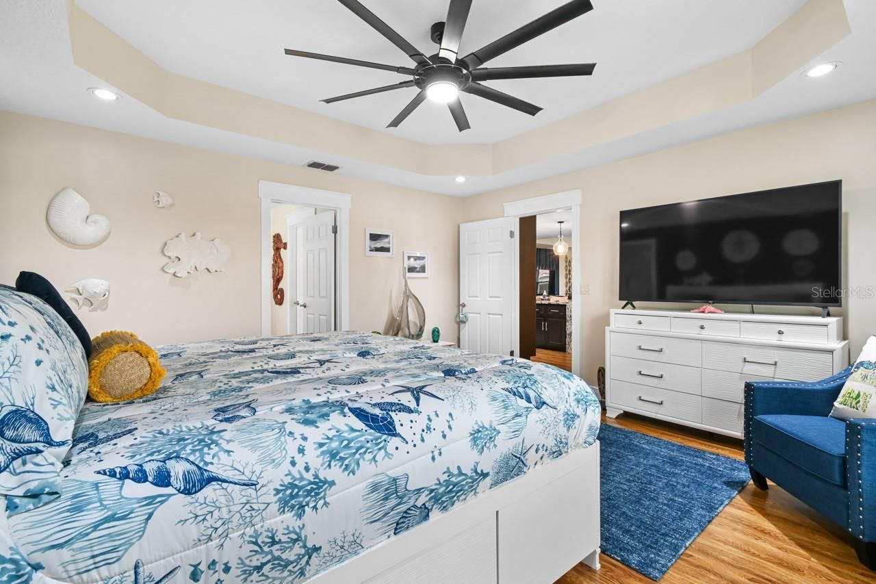 - Ceiling Fan(s), Crown Molding, Main Level Primary, Stone Counters, Thermostat, Tray Ceiling(s), Walk-In Closet(s)