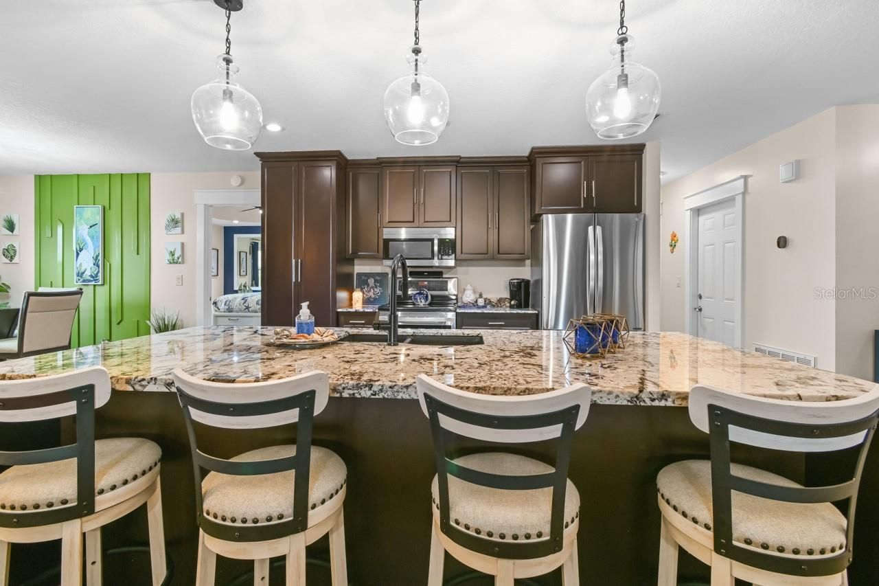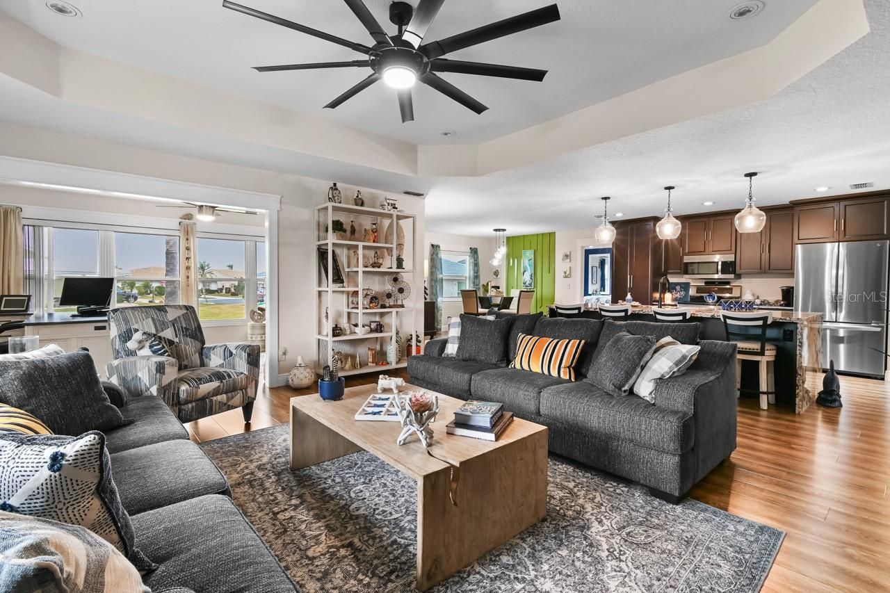 ASSUMABLE LOAN!! 3.375% INTEREST RATE... (AVAILABLE TO ANYONE WHO QUALIFIES) Step into luxury with this completely remodeled 2-bedroom, 2-bath home in the heart of SUN CITY CENTER! One of the LOWEST HOA fees in all of Sun City Center $115 a YEAR!! Named America's #1 RETIREMENT COMMUNITY for 2024 (Realtor.com). Every detail has been thoughtfully remodeled, creating a perfect blend of modern elegance and comfort. The CENTERPIECE of the home is the stunning kitchen, featuring a GRANITE WATERFALL ISLAND with custom wood cabinets. The living room and primary bedroom are accented by custom TRAY CEILINGS. Custom door molding adds a touch of SOPHISTICATION, while engineered hardwood flooring and 5" baseboards flow seamlessly throughout the house. The large and spacious primary suite, comes with a completely remodeled bath with his/her sinks and a custom spa-like 4x6ft walk-in shower, offering a serene retreat after a long day. The Large guest bedroom very comfortably accommodates a king size bed with plenty of room for more furniture. No need to worry about expensive water bills with the WELL in the back yard providing LAWN IRRIGATION. The yard has new sod and landscaping giving the property great curb appeal. With updated electrical and plumbing, added insulation to meet R38 standards, 2017 AC unit, and a 2019 Water Heater, this home provides peace of mind and energy efficiency. Located in the vibrant Sun City Center community, this home offers the perfect combination of style, comfort, and convenience. Don’t miss your opportunity to own this one-of-a-kind property—schedule your showing today and prepare to be impressed!