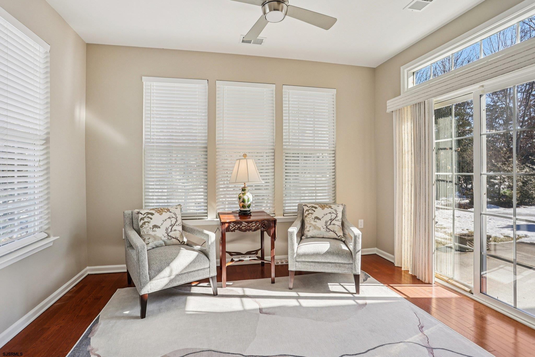 This home is a show stopper! Welcome home and welcome to The Four Seasons 55+ active adult community in Smithville. Exquisite and sought-after Mulberry model with 2BR/2BTH and a bonus room that can be a third bedroom, office, or den. Pride of ownership is exhibited throughout this well-cared-for home, which offers gleaming real wood floors, an open concept kitchen for all your entertaining. Granite countertops, 42" wood cabinetry, and a pantry closet. There is a beautiful four-seasons sunroom leading out to the oversized patio area for summer get-togethers with family and friends. 3-way gas fireplace, very large primary suite with 2 walk-in closets leading to the primary bathroom, faceted with double vanity/sinks, a walk-in shower stall, and a large soaking tub. New HVAC & HWH, 2-car garage, walk-up attic for extra storage, and ease finished with carpeting. Large oversized laundry room with cabinets and utility sink, clean, neutral tones throughout. Enjoy all the amenities The Four Seasons has to offer, such as indoor and outdoor pools, the fabulous clubhouse, bocce ball, pickle ball, tennis courts, shuffleboard, indoor billiards room, library, gym, and much much more!