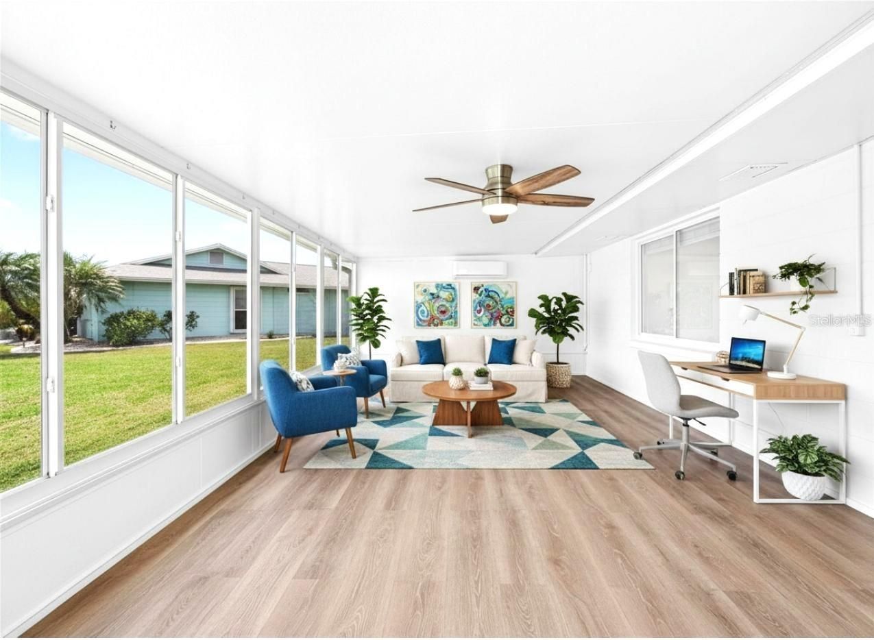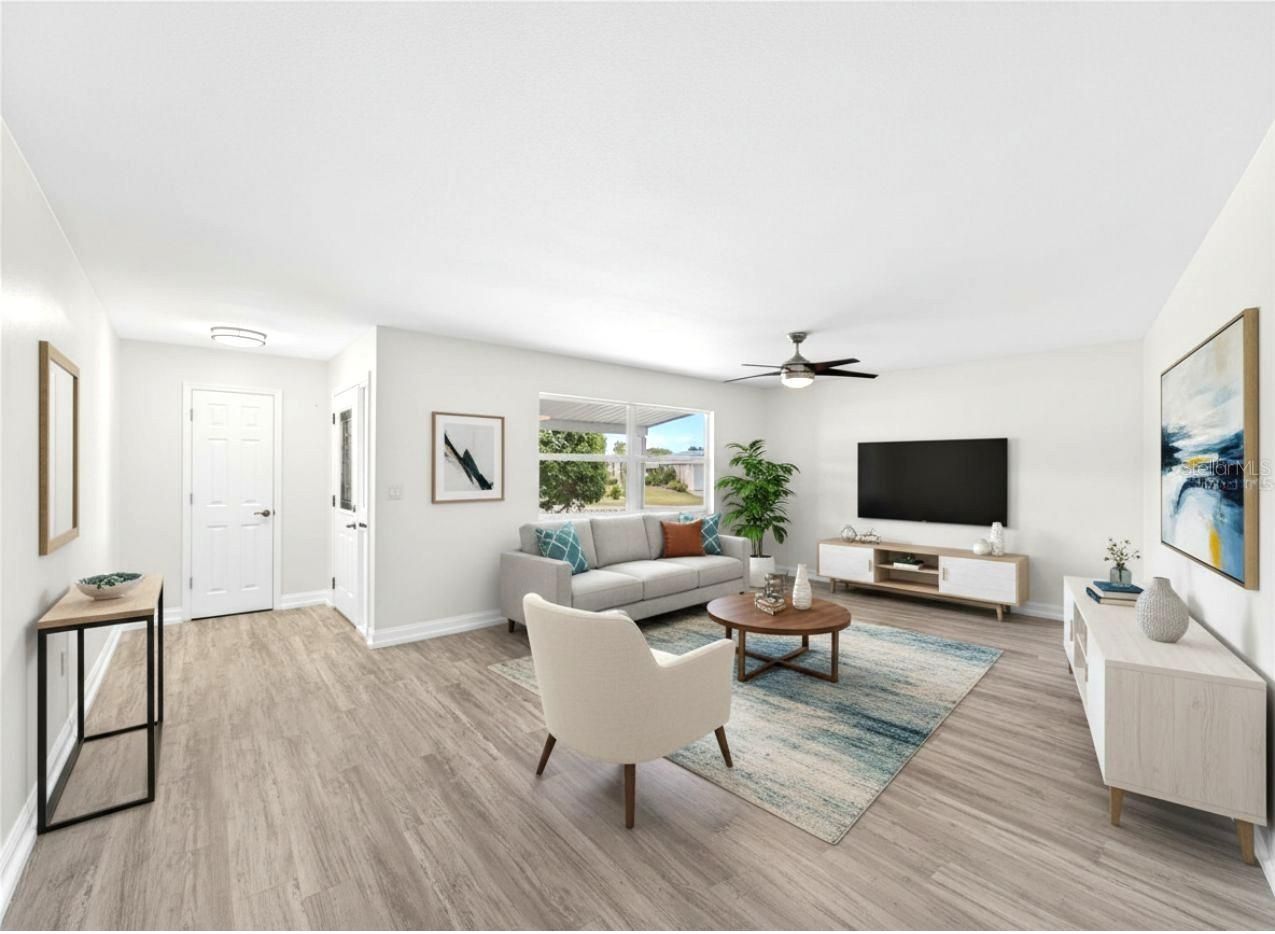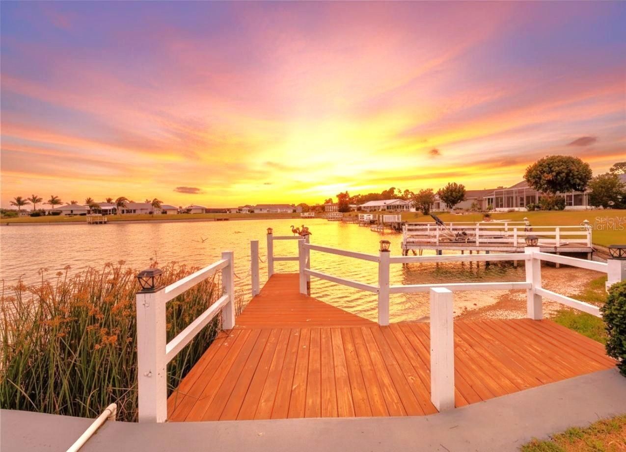 One or more photo(s) has been virtually staged. This exceptional property sits on a 1/3-acre corner lot overlooking Middle Lake. It is one of Sun City Center's premier homes. The HOA only governs middle Lake and fence restrictions, so you can do things your way here. This beautifully updated home has so much to offer with over 2,200 square feet of living space. A golfcart room/workshop makes this a rare 2 1/2 car garage. The view of Middle Lake is breathtaking. The rear of this magnificent home has 16 tinted windows that provide enhanced privacy, uninterrupted views of the serene waterfront and an abundance of natural light. The garage has overhead storage, a hybrid water heater and a water softener. The home features an extended driveway, perfect for parking a 40 plus foot RV or hosting many guests. Step outside to enjoy a private dock equipped with electricity and lighting, as well as a charming rear pergola, ideal for relaxing or entertaining. Inside, you’ll find thoughtful upgrades throughout, including double-pane thermal windows, new interior and exterior paint, designer ceiling fans, and sola tubes that fill the home with ambient light. Storage is abundant with generous closet space and custom cabinetry featuring convenient pullouts. Theres also a golf cart garage and a dedicated workshop, perfect for hobbies or additional storage. This home has been extensively upgraded. Recent updates: include a new roof, luxury vinyl plank flooring throughout. All galvanized sewer lines were replaced in 2022. The primary and secondary bathrooms have been fully updated. A custom California-style closet system is in place to amplify room in the primary suites walk-in closet. Popcorn ceilings have been removed; the plumbing and electric have been updated. 2024 updates include new garage door mechanics, a new irrigation pump for accessing irrigation water from Middle Lake. New ceiling fans, and a new PVC privacy fence that surrounds an 18x17 concrete pad It's an ideal place for a storage shed and landscaping equipment. And since there is no HOA to be concerned with there's no approval needed for exterior changes. The dock was resurfaced in 2025. Pontoon and John boats are allowed, and the fishing is incredible. You'll enjoy the regular community gatherings on the lake. This meticulously maintained waterfront gem combines comfort, style, and functionality in one of Florida’s most desirable active communities. With its long list of upgrades and unbeatable location, this home is immediately available and won’t last long. It is one-of-a-kind. Beyond the home, you'll enjoy the resort-style amenities that make Sun City Center Florida's #1 self-contained, active-living, 55 plus community. You’ll have access to 3 heated pools, a state-of-the-art fitness center, 2 spectacular clubhouses, an arts & crafts studio, a sports complex, and nearly 200 clubs and activities, that are all golf-cart accessible. A membership to the luxurious Renaissance Country Club and its fine dining and remarkable amenities is optional. Top-rated medical facilities, free paramedic & ambulatory services, and everything you'll ever need are a short golf cart ride away. Located near Tampa Bay, pristine Gulf beaches, and Orlando attractions, this is more than a home, it’s the ultimate Florida lifestyle. Schedule your private tour today and experience why 1810 Milford Circle is one of Sun City Center’s premier addresses. Be sure to watch the 3-D Matterport tour to see evry inch of the interior in 3-D, and most of the exterior.