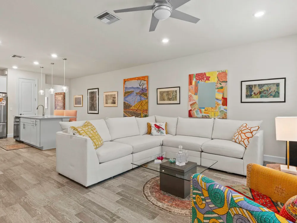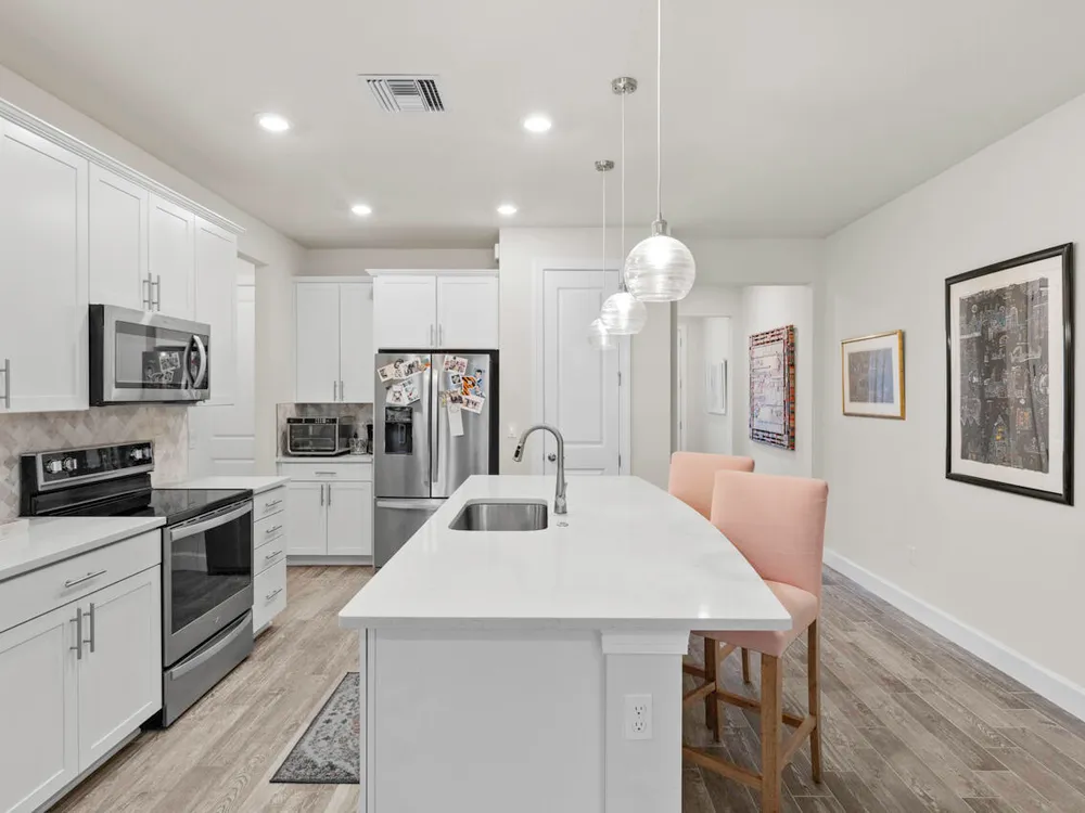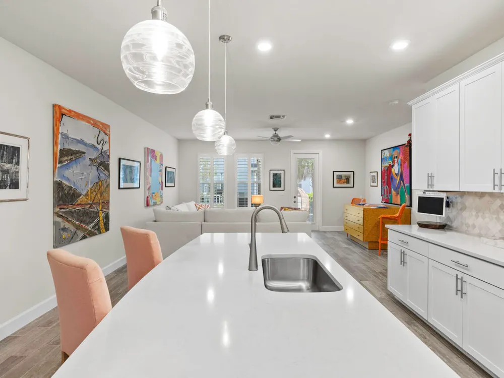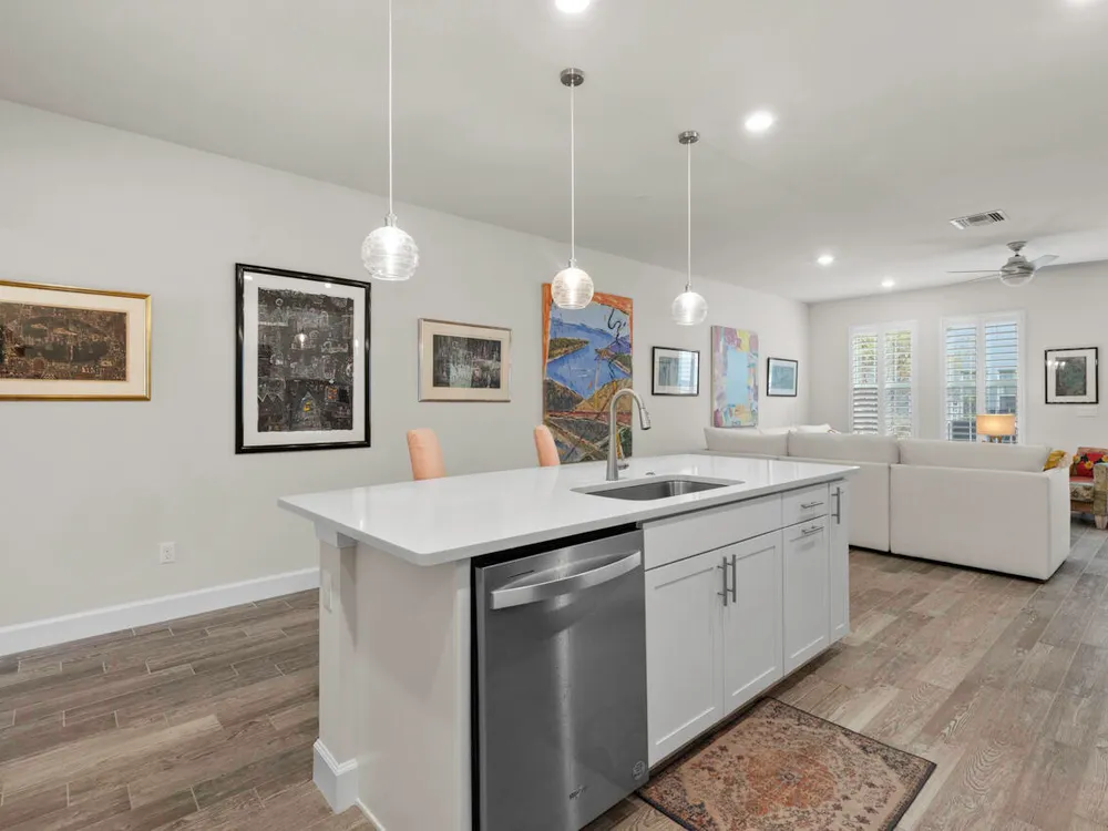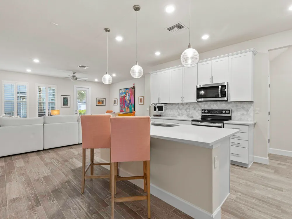 Located in the heart of Stuart, this 3-bedroom, 2.5-bathroom townhouse offers modern living in a prime location. Built in 2022, the home features an open floor plan with a stylish island kitchen equipped with quartz countertops and a spacious walk-in pantry. The interior is adorned with custom lighting, plantation shutters, and impact glass windows, ensuring both elegance and energy efficiency. Additional highlights include an expanded patio for outdoor relaxation and a one-car garage. Situated conveniently close to downtown Stuart, historic Port Salerno, and minutes from the beach, this property provides easy access to a variety of dining, shopping, and recreational options. This move-in-ready townhouse combines comfort, style, and an unbeatable location!