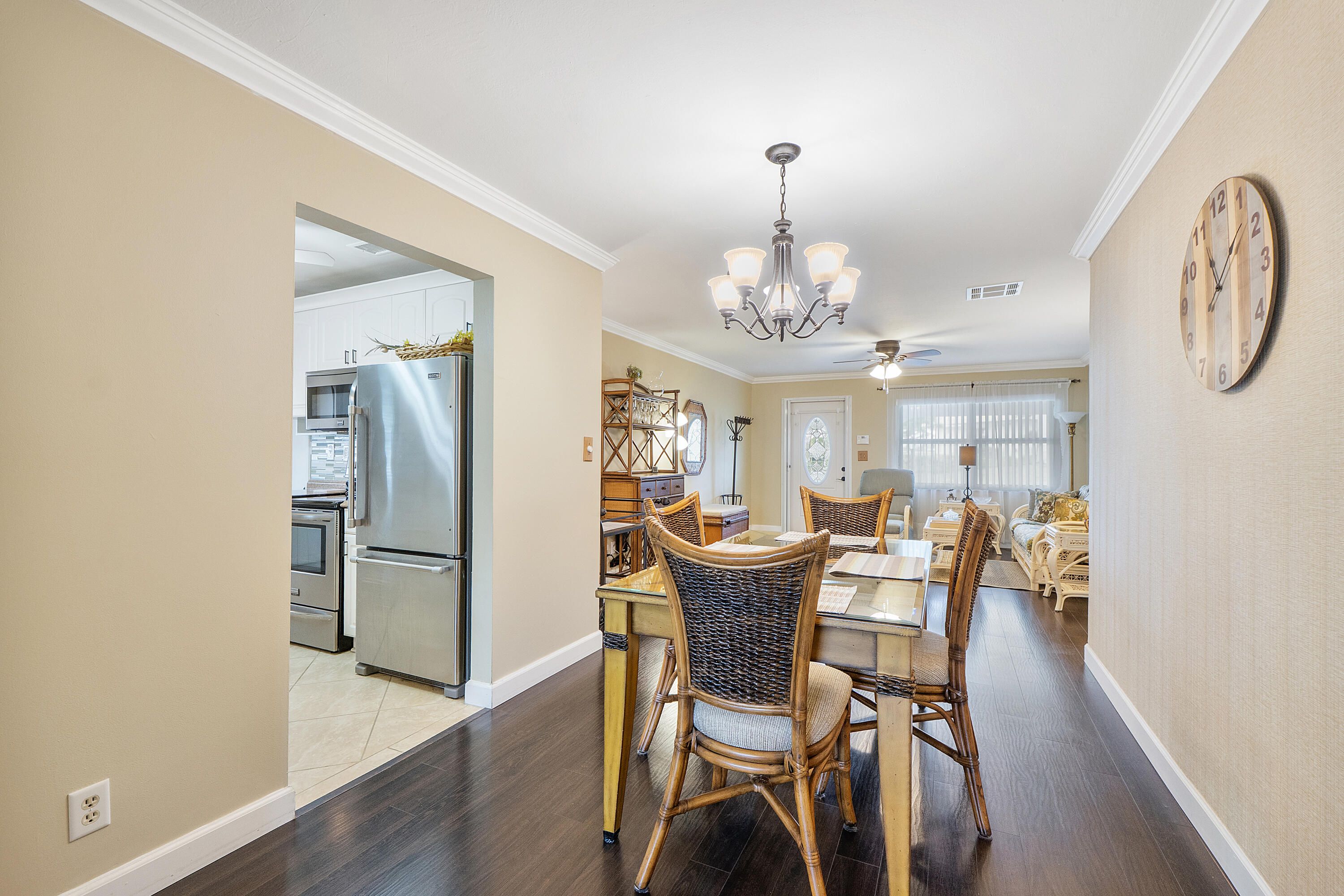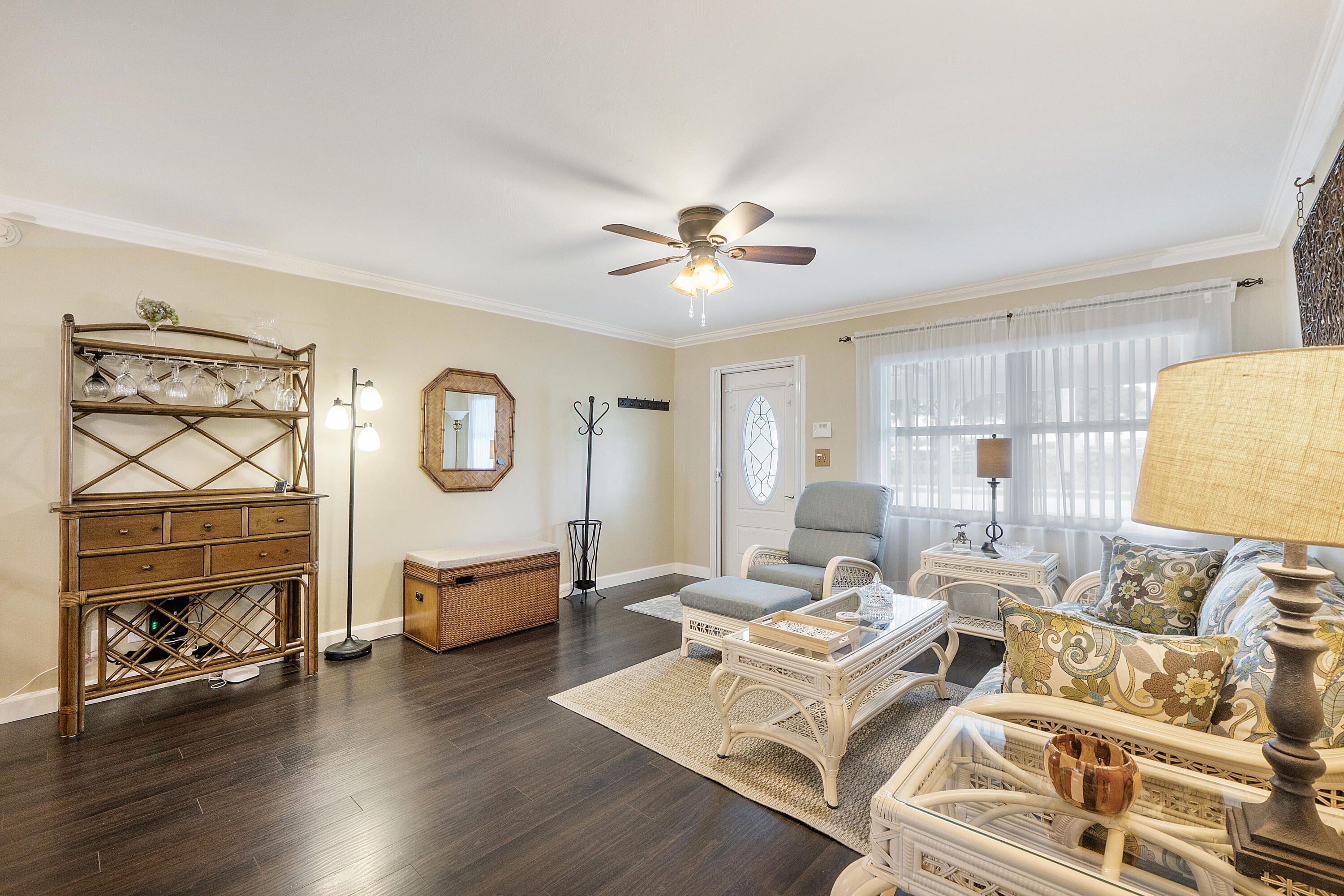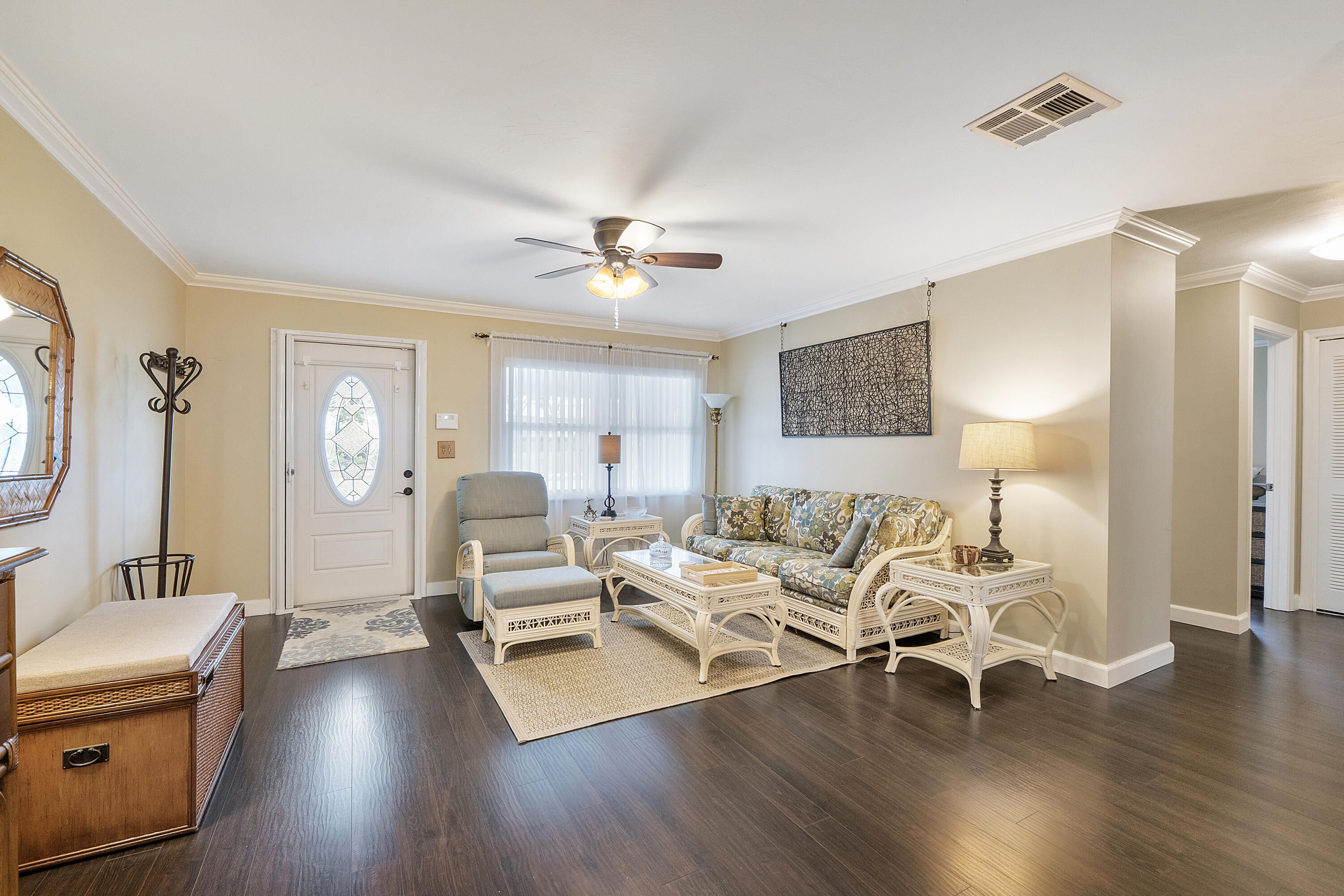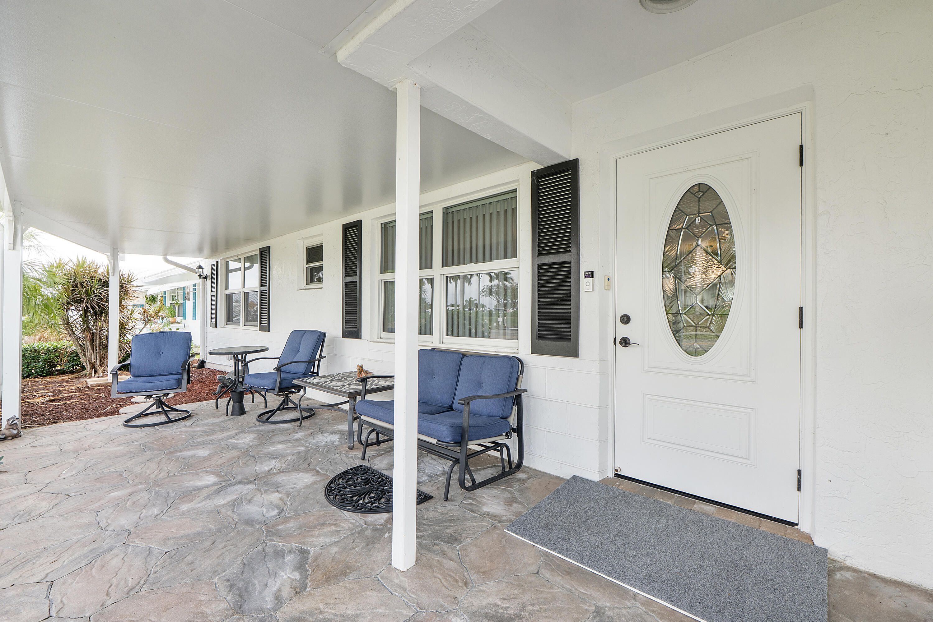 Step into this impeccably maintained 3BR/2BA/1CG residence showcasing thoughtful upgrades throughout, including a 2025 AC, 2021 water heater, 2013 roof (also resealed, painted and recoated in 2026), impact windows and doors, including garage door,double driveway, updated kitchen with stainless appliances and extra cabinets, updated bathrooms, beautiful engineered wood floors throughout, crown mouldings, phantom screens on front and back doors and an outside entry from the third bedroom. Enjoy outdoor living at its best with a welcoming covered front porch and a covered paver patio in the back perfect for grilling and relaxing. Prime location---walk across the street to the pool, clubhouse, office and all amenities. Don't miss out on this gem. Furniture negoltiable