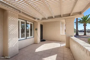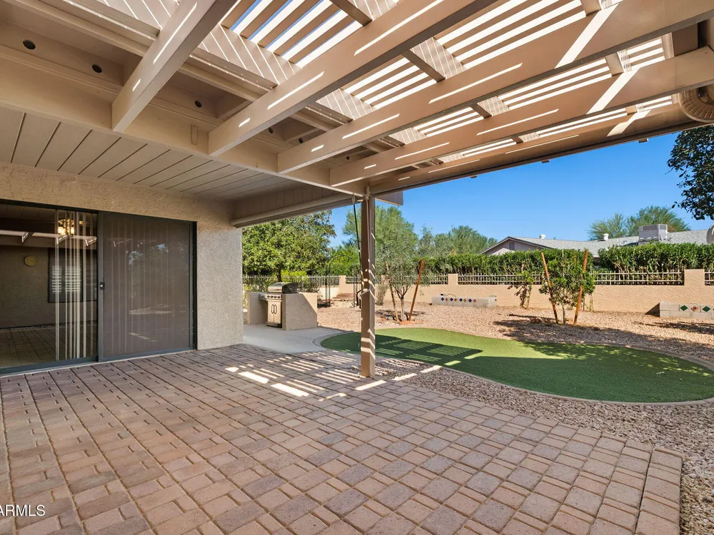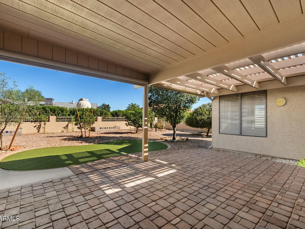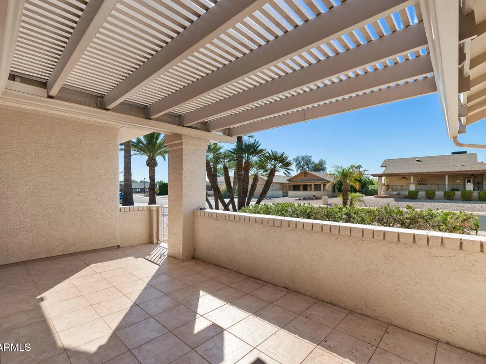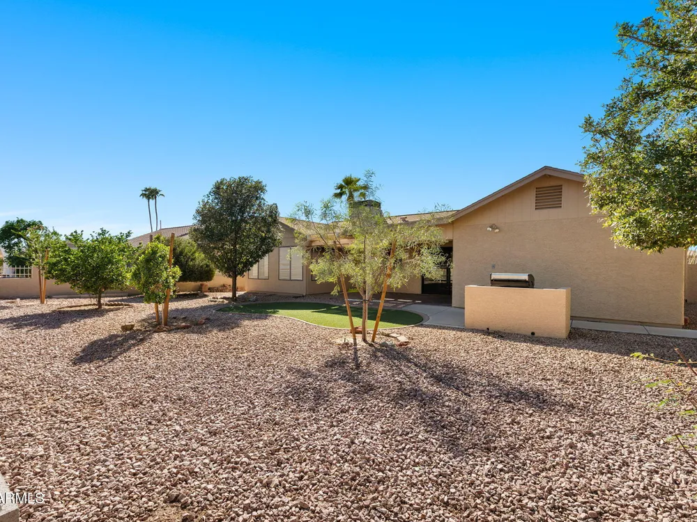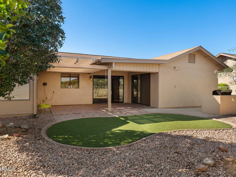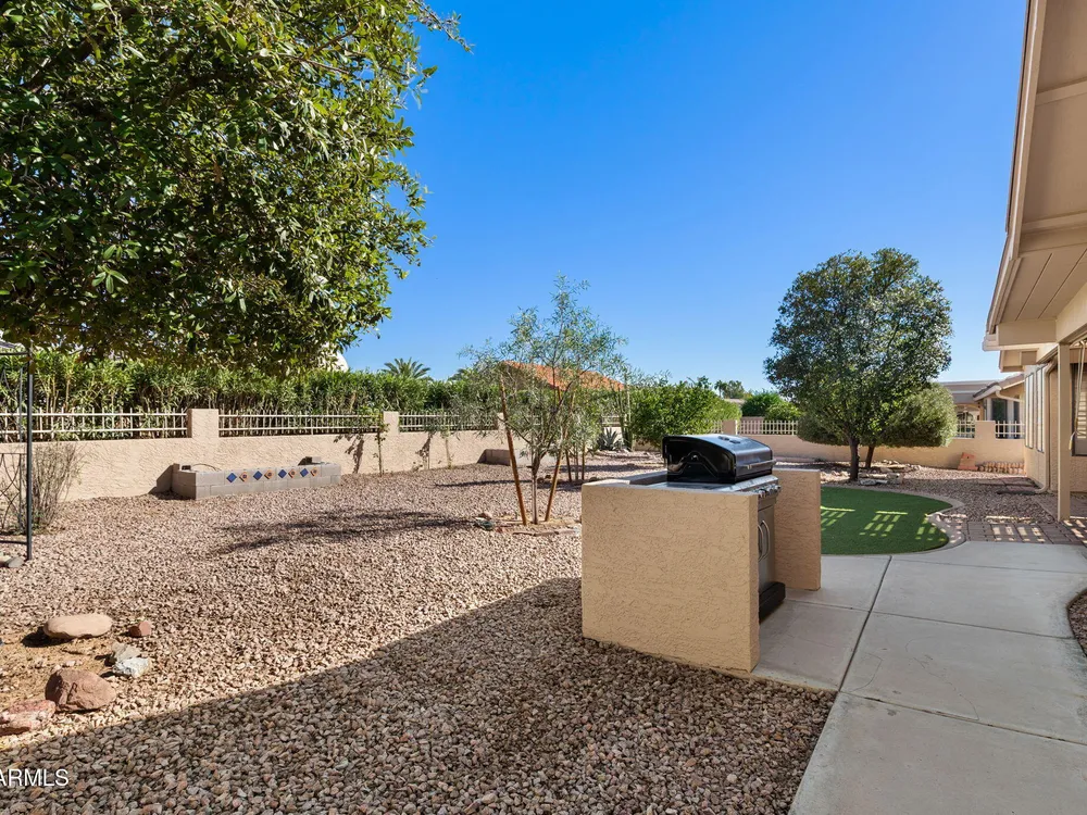 Beautiful Expanded Granada in Leisure World! Welcome to this charming 3-bedroom Expanded Granada located in the premier active adult community of Leisure World! This well-designed home features a split floor plan for added privacy and an enlarged second bedroom-perfect for guests or a home office. Enjoy Arizona living with a spacious enclosed backyard featuring artificial grass, desert landscaping, and plenty of room for outdoor entertaining. The covered front patio provides relaxing spot to enjoy your morning coffee or chat with neighbors. Note***Dishwasher was replaced with a wine refrigerator. Still plumbed for dishwasher if you choose to convert back! Leisure World offers resort-style amenities, including 36 holes of private golf, a tennis complex, pickleball courts, multiple swimming pools, a modern fitness center, arts & crafts studios, billiards, a library, and so much more. Come experience the active, social lifestyle you've been looking for-this is more than a home, it's a community!