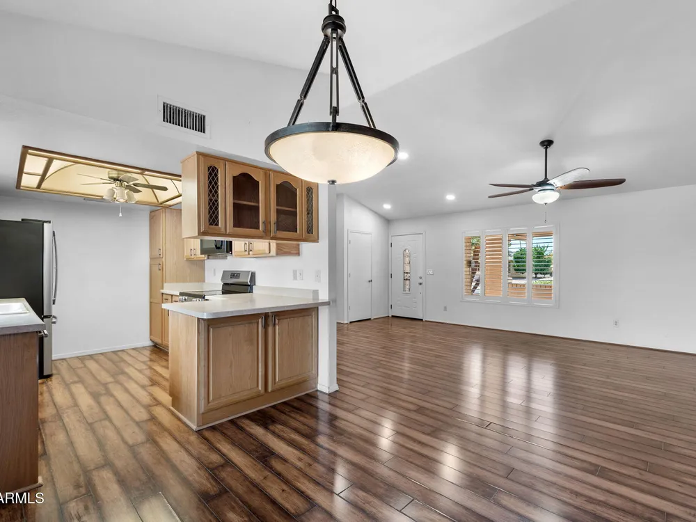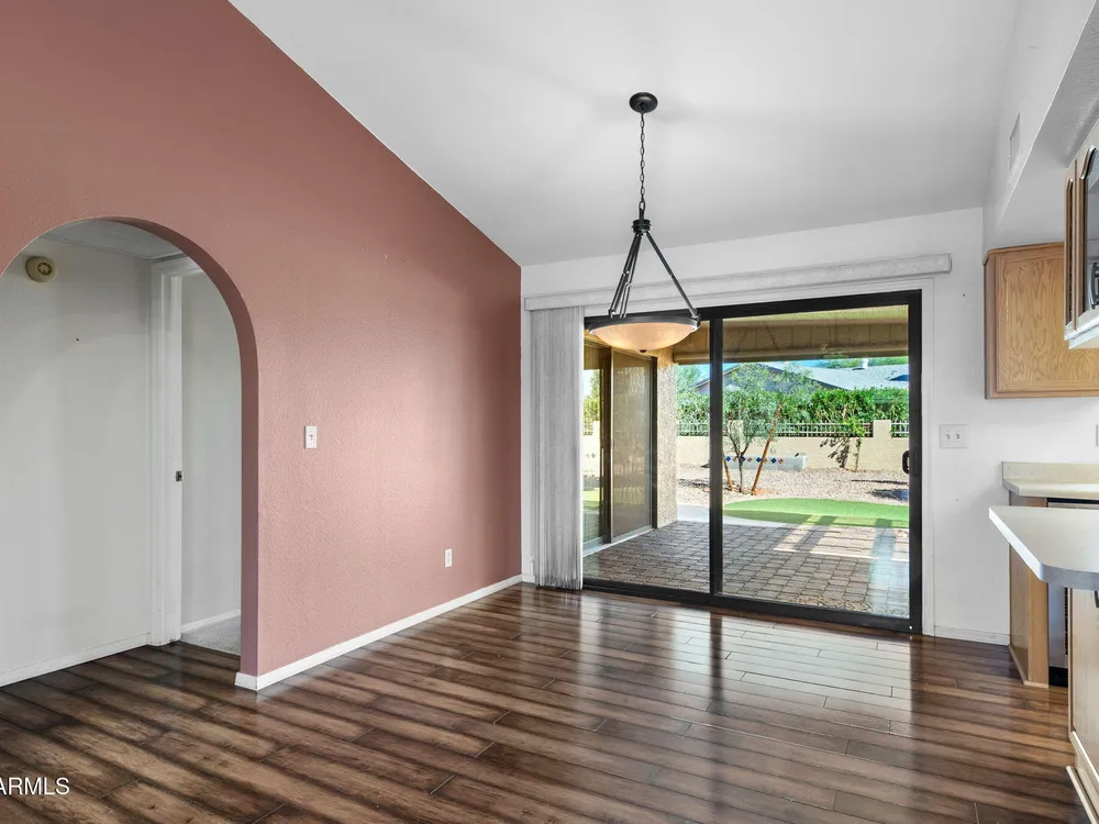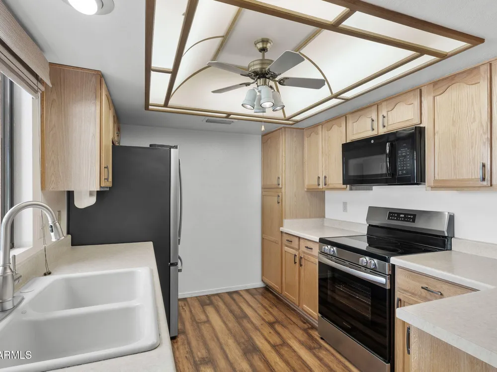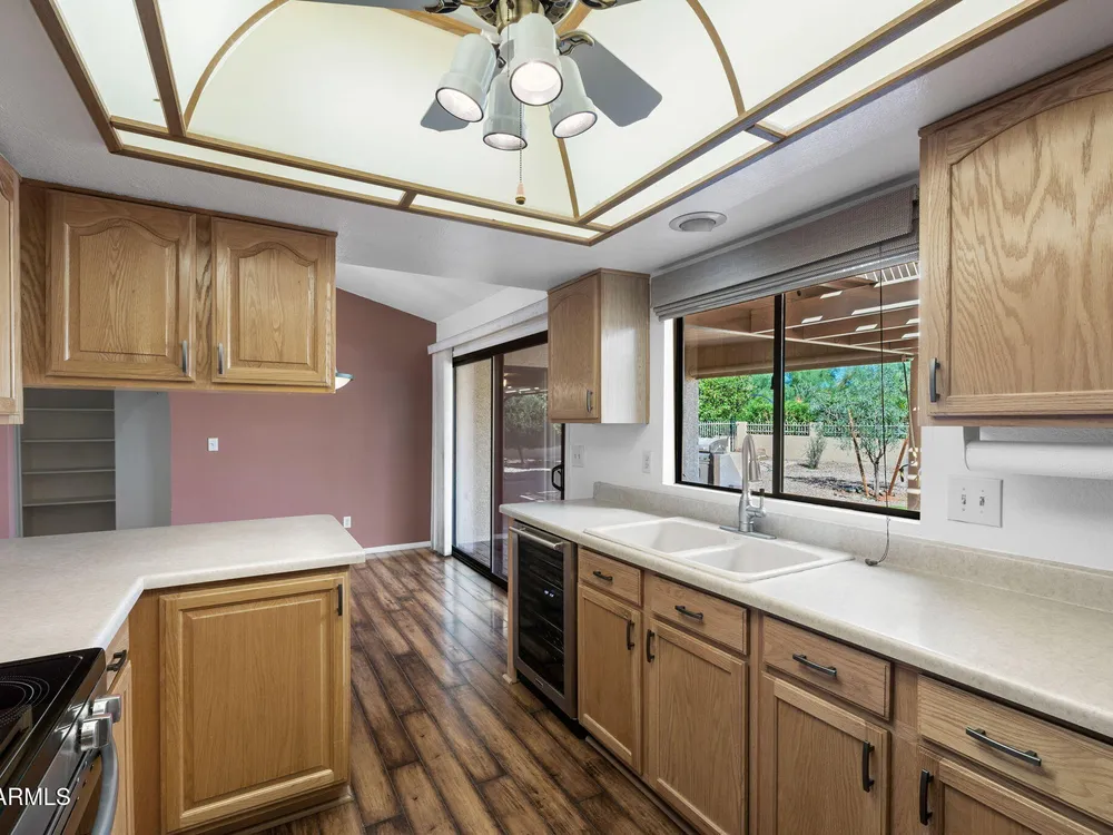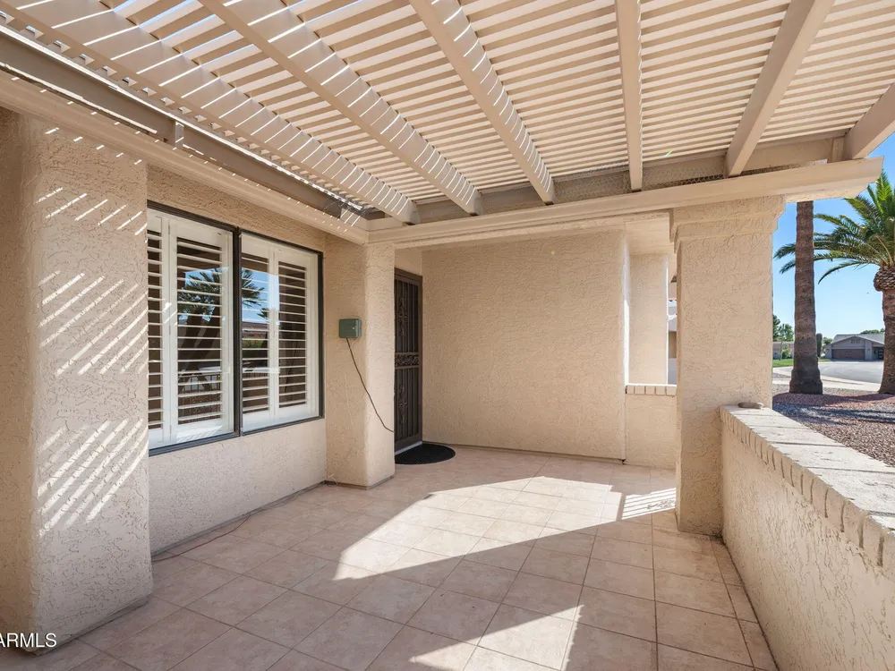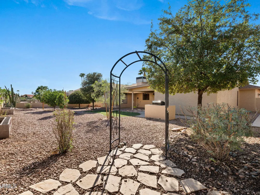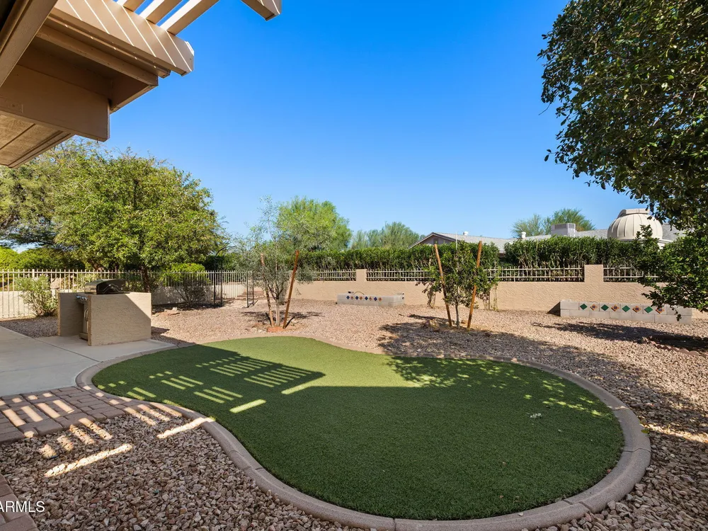 Beautiful Expanded Granada in Leisure World! Welcome to this charming 3-bedroom Expanded Granada located in the premier active adult community of Leisure World! This well-designed home features a split floor plan for added privacy and an enlarged second bedroom-perfect for guests or a home office. Enjoy Arizona living with a spacious enclosed backyard featuring artificial grass, desert landscaping, and plenty of room for outdoor entertaining. The covered front patio provides relaxing spot to enjoy your morning coffee or chat with neighbors. Note***Dishwasher was replaced with a wine refrigerator. Still plumbed for dishwasher if you choose to convert back! Leisure World offers resort-style amenities, including 36 holes of private golf, a tennis complex, pickleball courts, multiple swimming pools, a modern fitness center, arts & crafts studios, billiards, a library, and so much more. Come experience the active, social lifestyle you've been looking for-this is more than a home, it's a community!