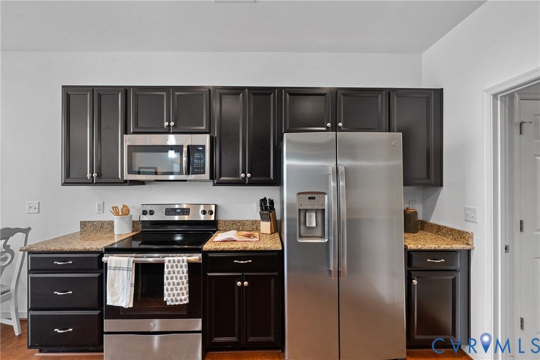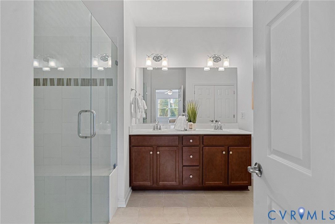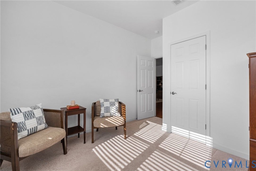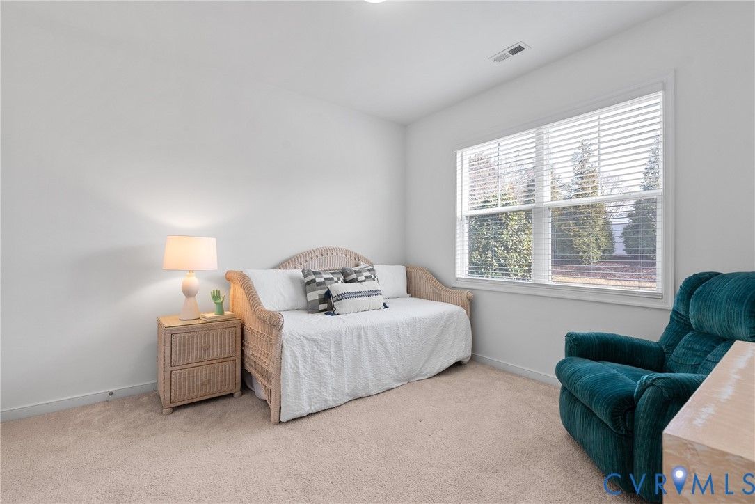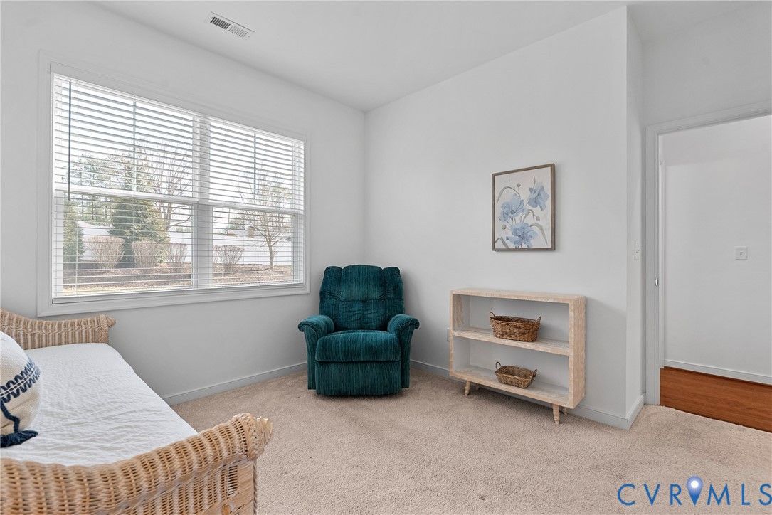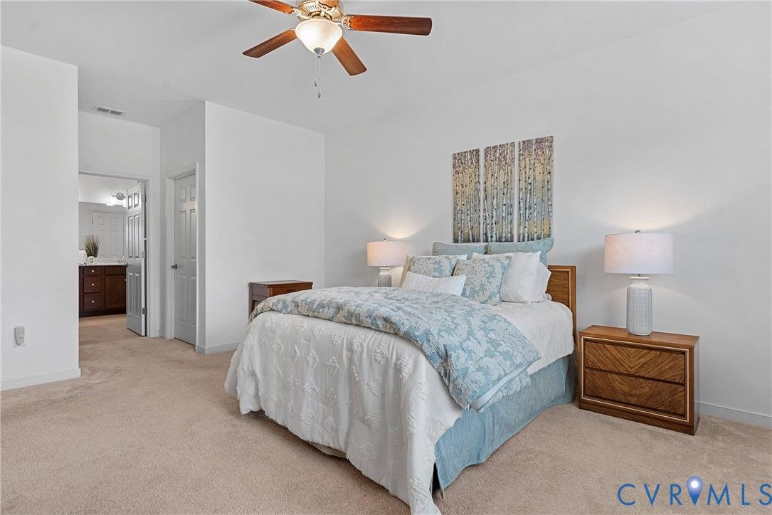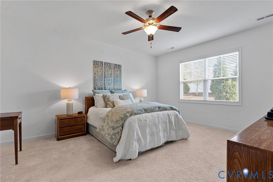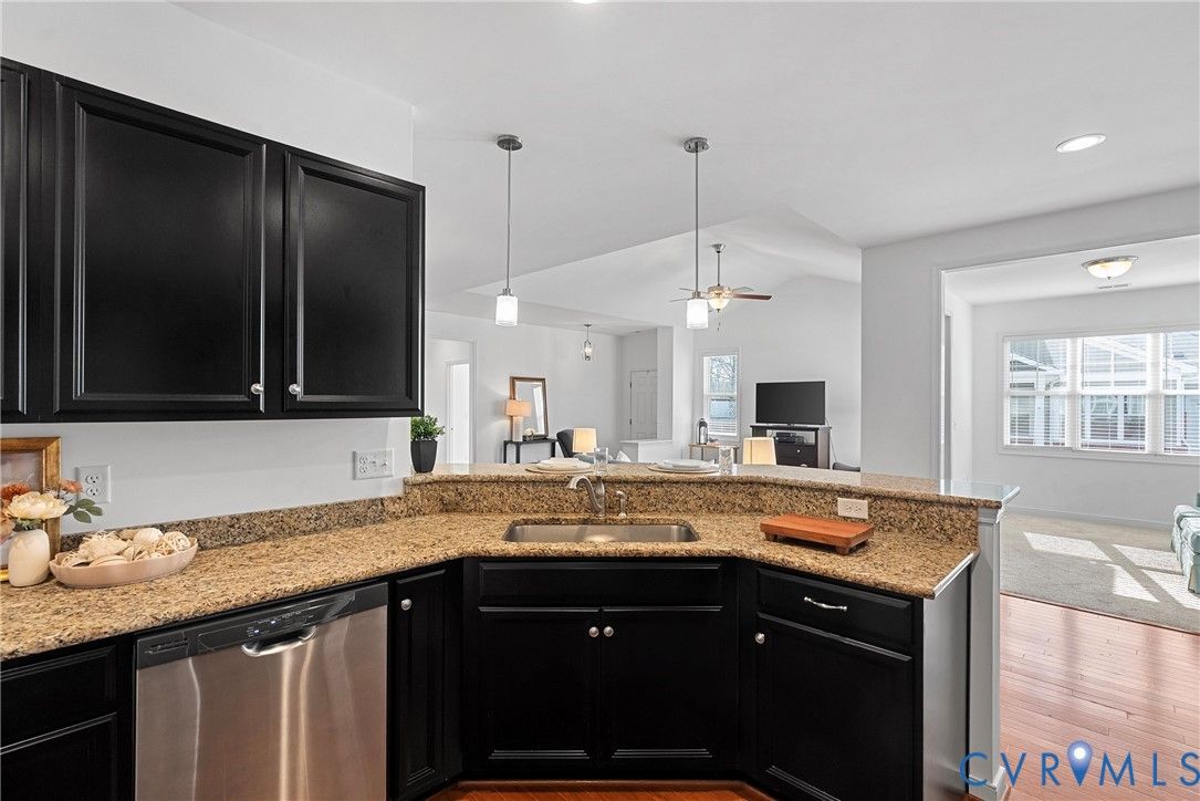 Welcome to The Villas at Providence, a sought-after 55+ community in the heart of Chesterfield County. With quick access to Powhite Parkway and Route 288, getting anywhere in the Richmond area is easy—while dining, shopping, grocery, and top-tier medical care are just minutes away. Tucked in a peaceful setting, The Villas offers maintenance-free living, giving you time to enjoy each day. Step inside a welcoming foyer and discover hardwood floors throughout the main areas creating a warm and polished feel from the start. The vaulted living room is spacious and inviting, complete with a ceiling fan and an open layout flowing seamlessly into the kitchen and dining room, perfect for everyday living and entertaining. The dining room offers generous space for hosting family gatherings and celebrations. The large kitchen features bar seating, abundant cabinetry and counter space, stainless steel appliances, and a granite countertops. A large pantry offers excellent storage, and the deep double-bowl sink adds both function and style. For casual meals or morning coffee, enjoy the cozy breakfast nook just off the kitchen. Beyond the main living area, a sunroom offers a peaceful retreat filled with natural light—perfect for unwinding with a book. The primary suite offers two large walk-in closets, a ceiling fan with light, and wood blinds. The en-suite bath features tile floors, a zero-entry tiled shower with a built-in seat and grab bars, a double adult-height vanity, an oversized linen closet. Two additional bedrooms offer flexibility for guests or a home office, with a full bath conveniently located between them. Off the kitchen, you’ll find a spacious laundry room with a closet for extra storage. The oversized two-car garage includes an automatic door opener, plenty of room for vehicles, closet storage, and a pull-down attic. This beautifully maintained community features irrigated green spaces, manicured grounds, and a charming neighborhood gazebo—perfect for gathering with friends.