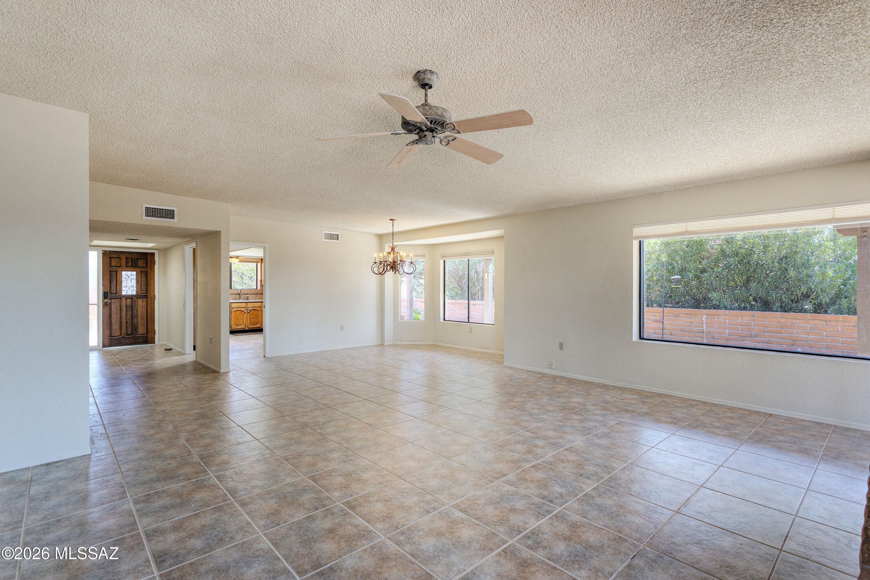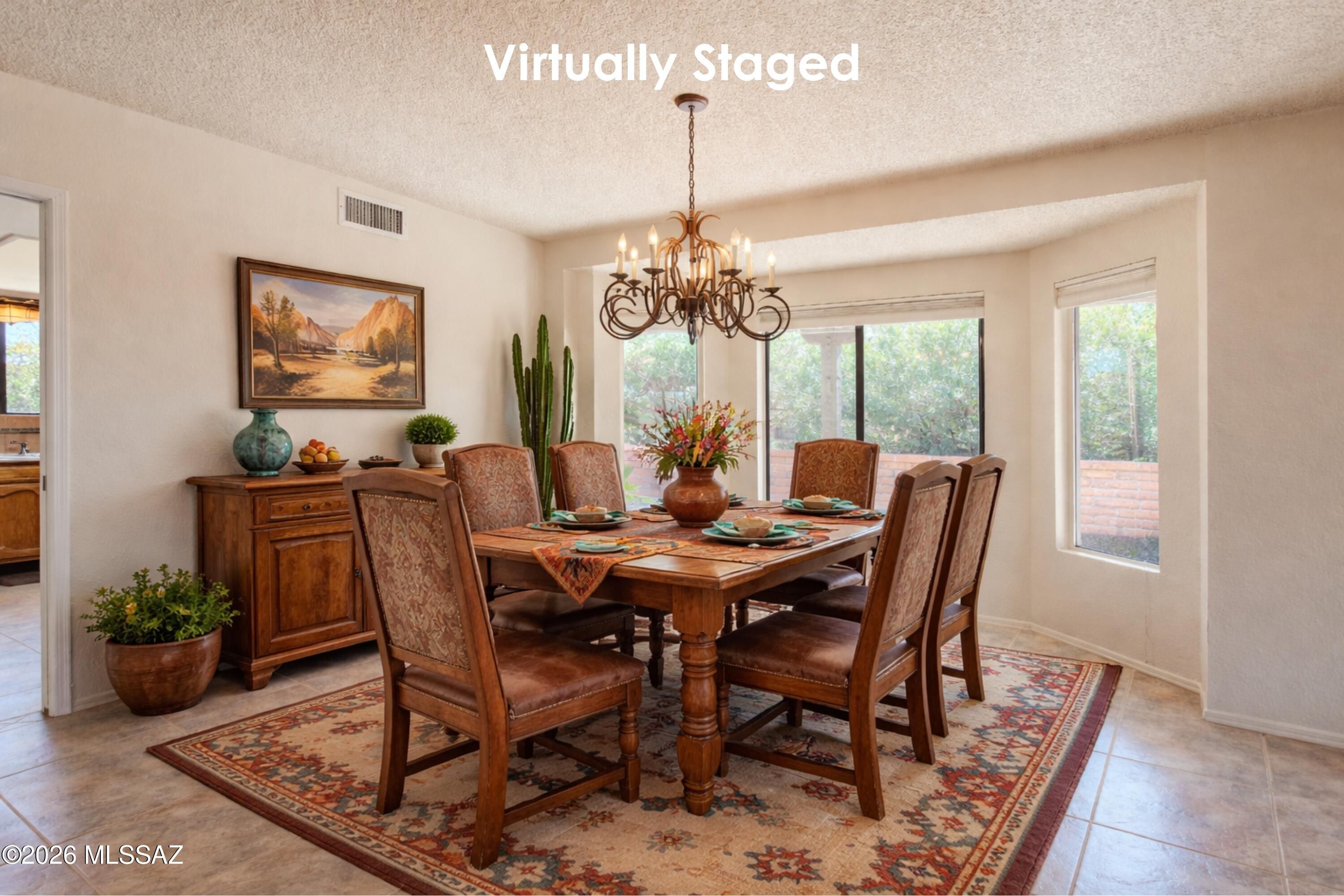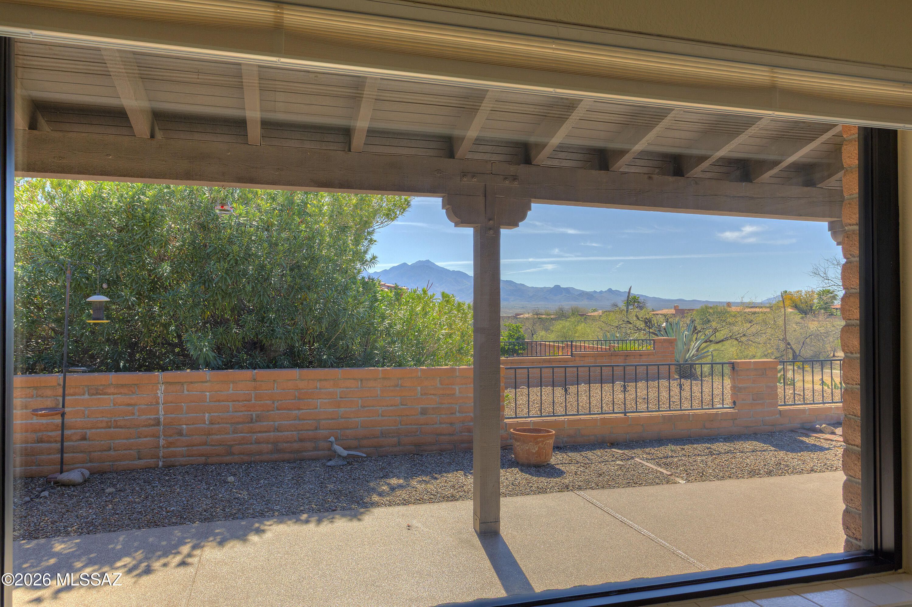 Situated on a hillside lot bordering the Canoa Hills Trails, nature lovers & outdoor enthusiasts will love the abundant wildlife & birdsong that greet you daily. The wrap-around porch is an absolute showstopper--sip your morning coffee or unwind at sunset while soaking in the views of the Santa Ritas from both the back patio and living room. This well-maintained and freshly painted home features the popular slump block construction, known for its durability and classic Southwestern character. Inside, you'll find tile flooring throughout the living areas. The flexible third bedroom transitions beautifully into a den/home office, perfectly suited for remote work or a quiet retreat. Whether you're looking for a peaceful full-time residence or a serene Arizona getaway, this property delivers.