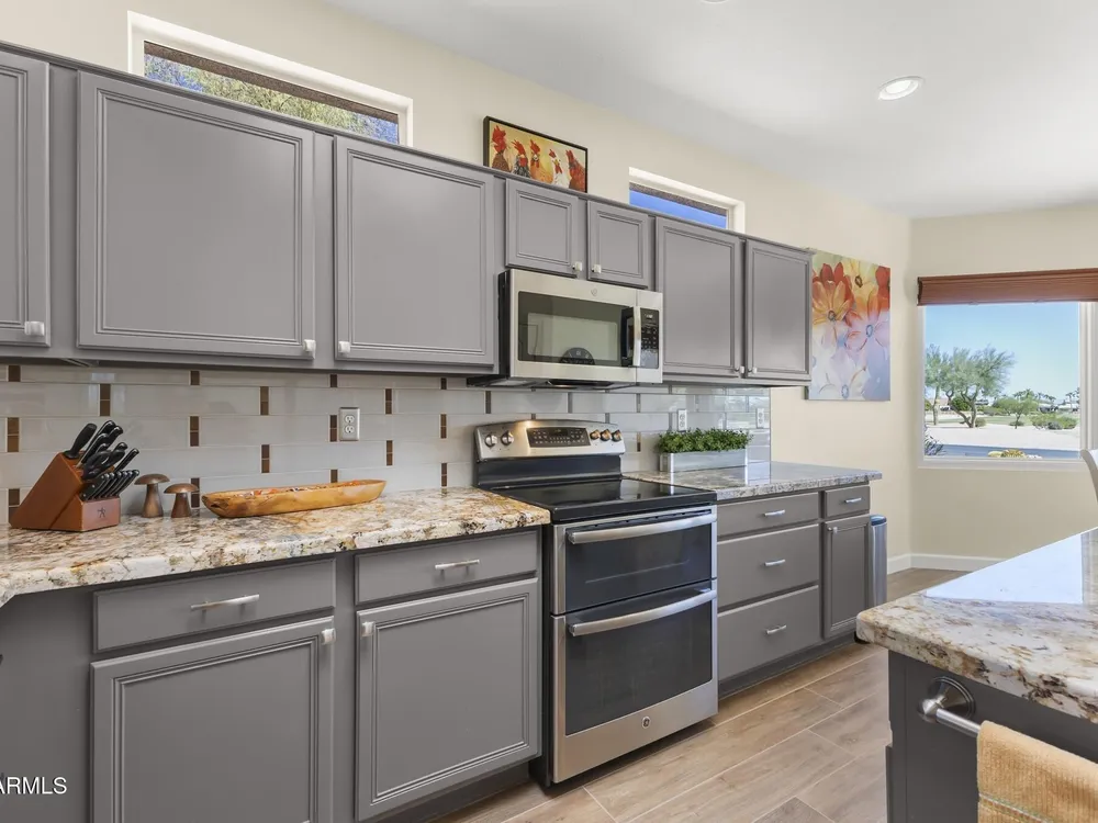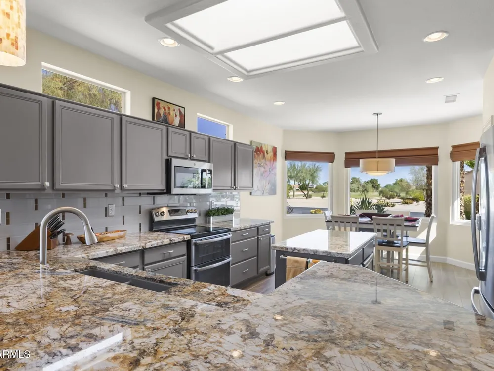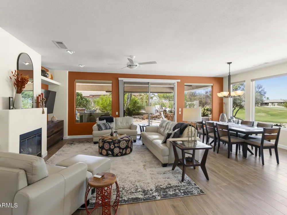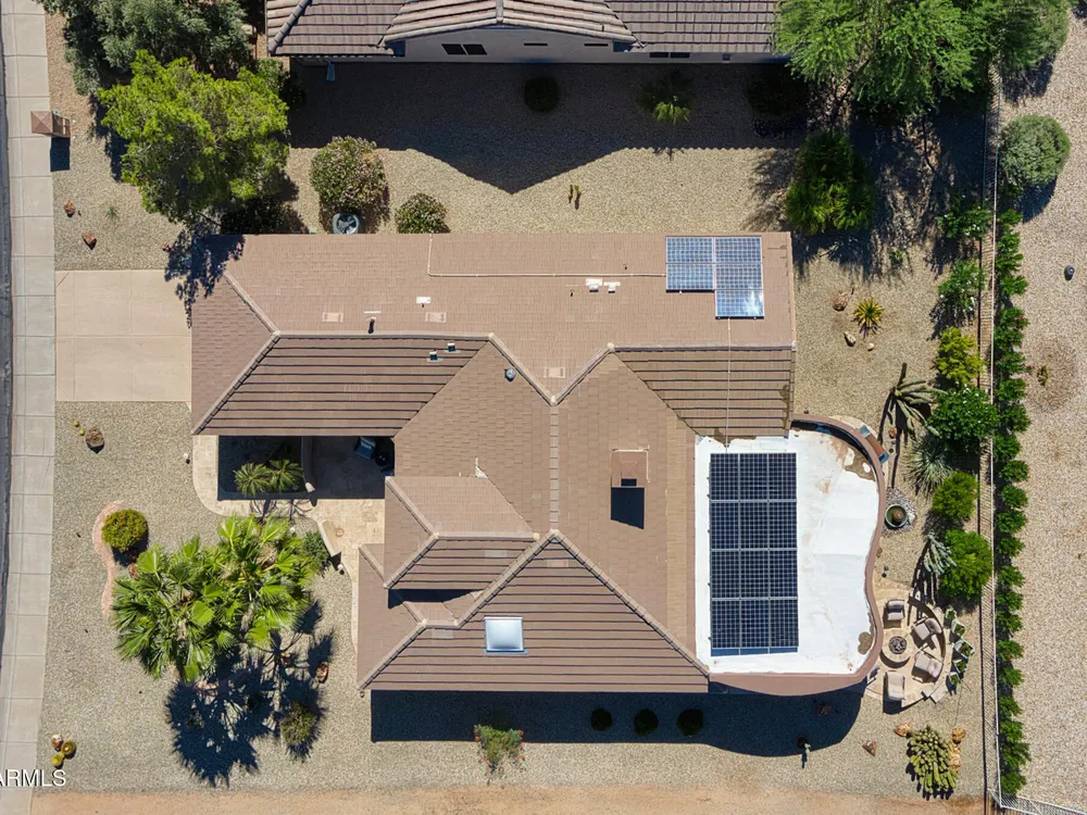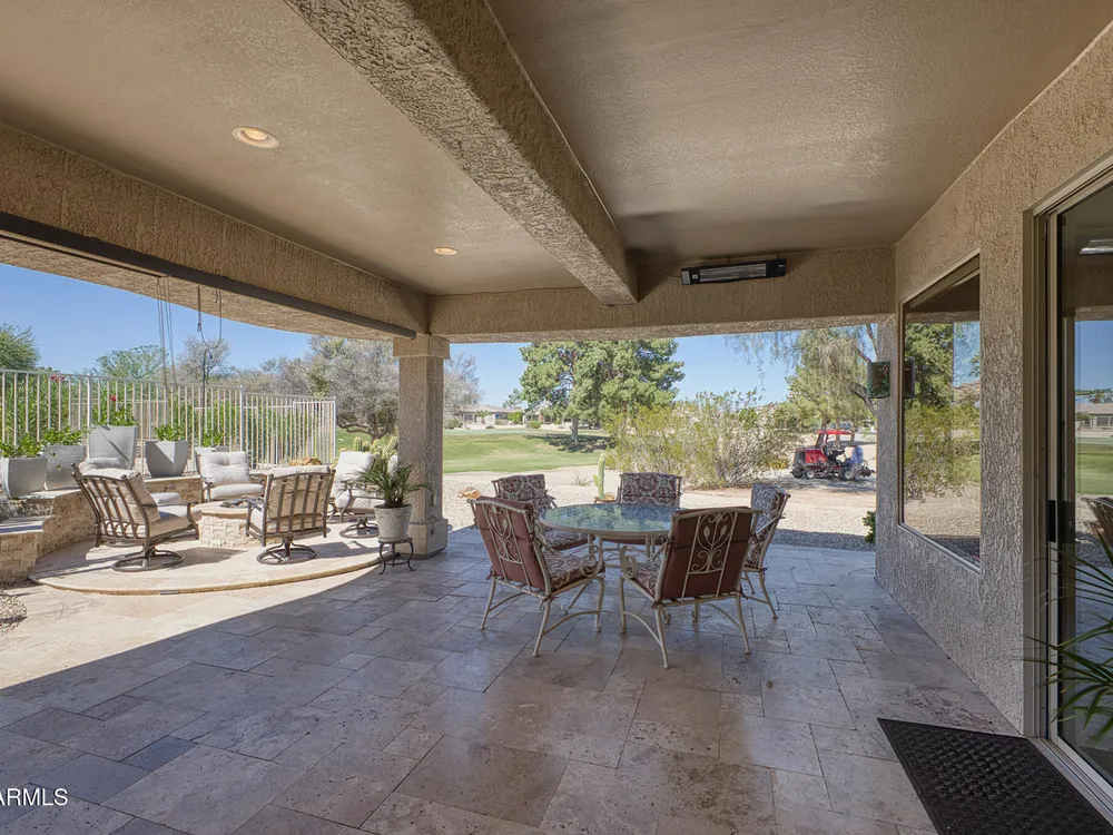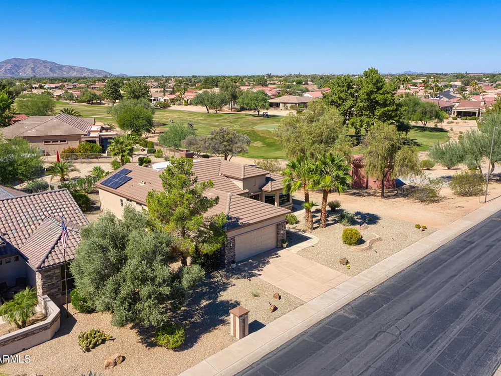 Uniquely positioned with picturesque views of both the undulating green of the 4th hole on one side and scenic views of the 5th tee box and fairway from the bay window out front! There are Golf views from almost every room in the house! The open-floorplan is evenly lit with abundant natural light from all the large picture windows! The bright kitchen has absolutely gorgeous granite countertops, stainless steel GE appliances, designer pendant lights, a center island and pantry and even a touchless faucet! The entertainment wall is newly remodeled with built-in dimmable accent lighting, a gas fireplace and a spacious place for your large screen TV! Spoil yourself in the expansive 23' x 13' master suite with its bright en-suite bathroom and spacious walk-in closet! The owned solar system: You'll have low utility bills with the completely owned solar system (no payments!), the beautiful energy-efficient Renewal by Anderson windows and newer Trane furnace and A/C! The Trane furnace even has a UV light to eliminate germs, viruses and mold spores! New and inviting tile floors were also added this summer throughout in all but the bedrooms! You'll enjoy many other features including a whole house hot water recirculator for quicker hot water at all sinks and showers as well as the smart technologies like the app savvy intelligent Nest Thermostat and the Bhyve sprinkler system controller - you can control the temperature inside and the watering schedule even while you're away for the summer or on a long trip! French doors were added to the study to allow it to serve as a private office or a third bedroom when extended family comes to visit! Entertain your friends and family in the on the extended and covered travertine patio and the large gas firepit in the privacy of the lush landscaping or just relax with the gentle sounds of the water feature! Your new home shows off well at night as well with an abundance of accent landscape lighting! This house is more than just a place to liveit's a place to thrive. Whether you're hosting gatherings with friends or family, preparing meals in the gourmet kitchen, or just enjoying quiet evenings by the firepit in your own private backyard oasis, you'll find comfort at home!