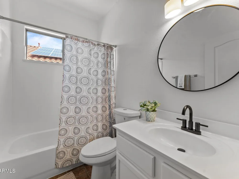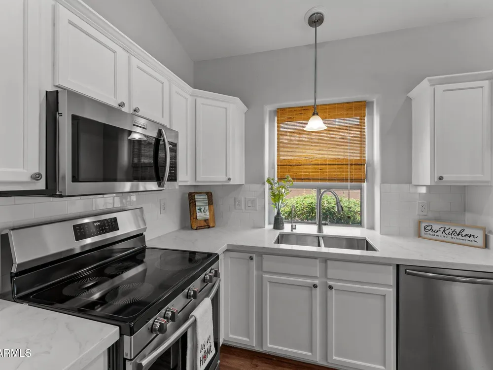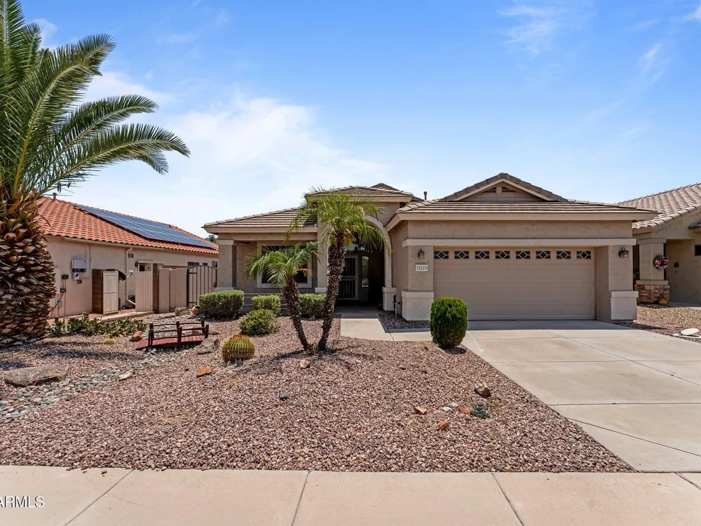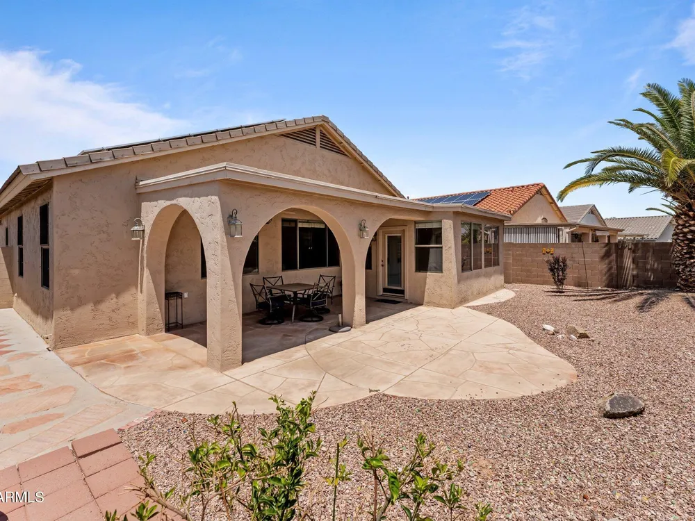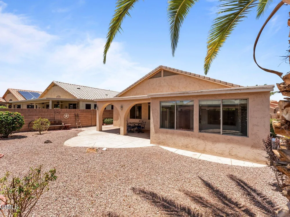 You're going to love this remodeled, charming 2 bedroom, 2 bathroom, including an enclosed AZ sunroom. Located in the highly desirable Arizona Traditions ''Active Adult'' community. This home boasts an open floor plan with vaulted ceilings providing ample natural light throughout. The kitchen features stainless appliances, new quartz counter tops, and beautifully refinished cabinetry. The primary bathroom features dual sinks, large walk-in closet and private toilet room. You'll love the north/south exposure along with a backyard, that's, tastefully landscaped for minimal maintenance and covered patio. This home is beautifully finished. You're going to love the small community feel yet with all the ''big community'' amenities that Arizona Traditions has to offer. The main community center houses a public Sports Bar which overlooks the Arizona Traditions Golf Course and has a stunning view of the White Tank Mountains with beautiful sunsets. The 18-hole golf course winds through the Community and is challenging to players of all skill levels. The Softball Field is considered one of the best in the retirement communities of the West Valley. The tennis & pickleball courts, pools and fitness centers and walking trail offer great exercise choices. There is an activity for everyone! Literally just minutes to groceries, dining, entertainment and the 303. Don't miss out on this lovely home in this amazing community!