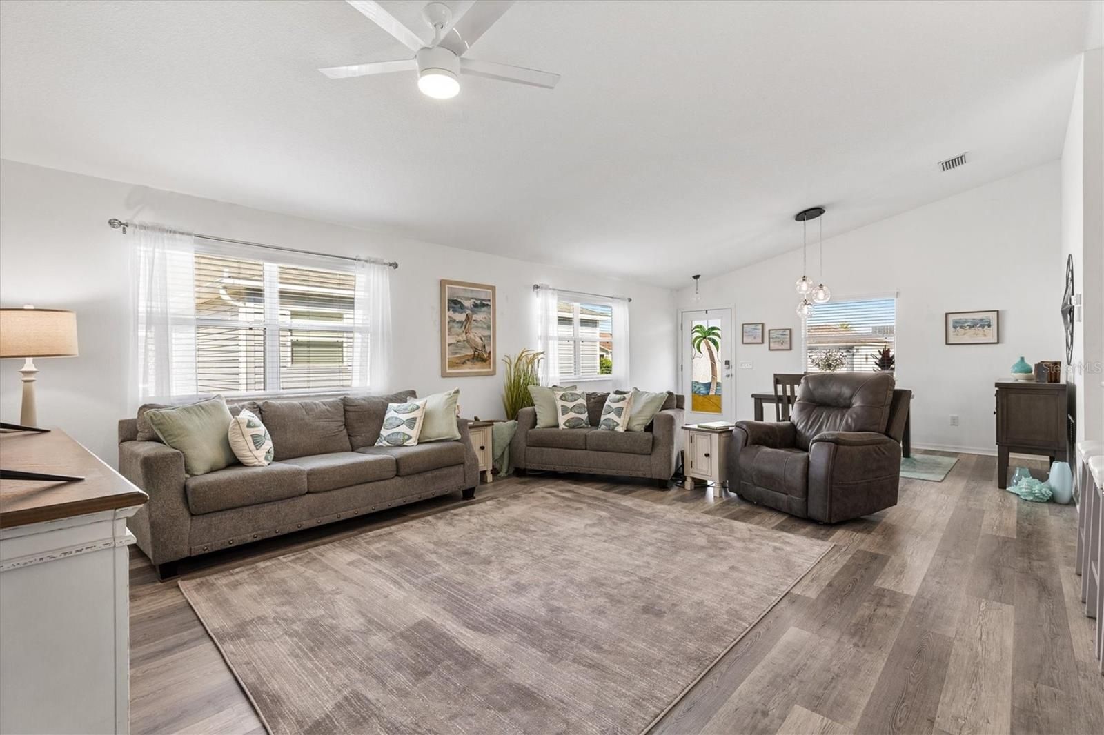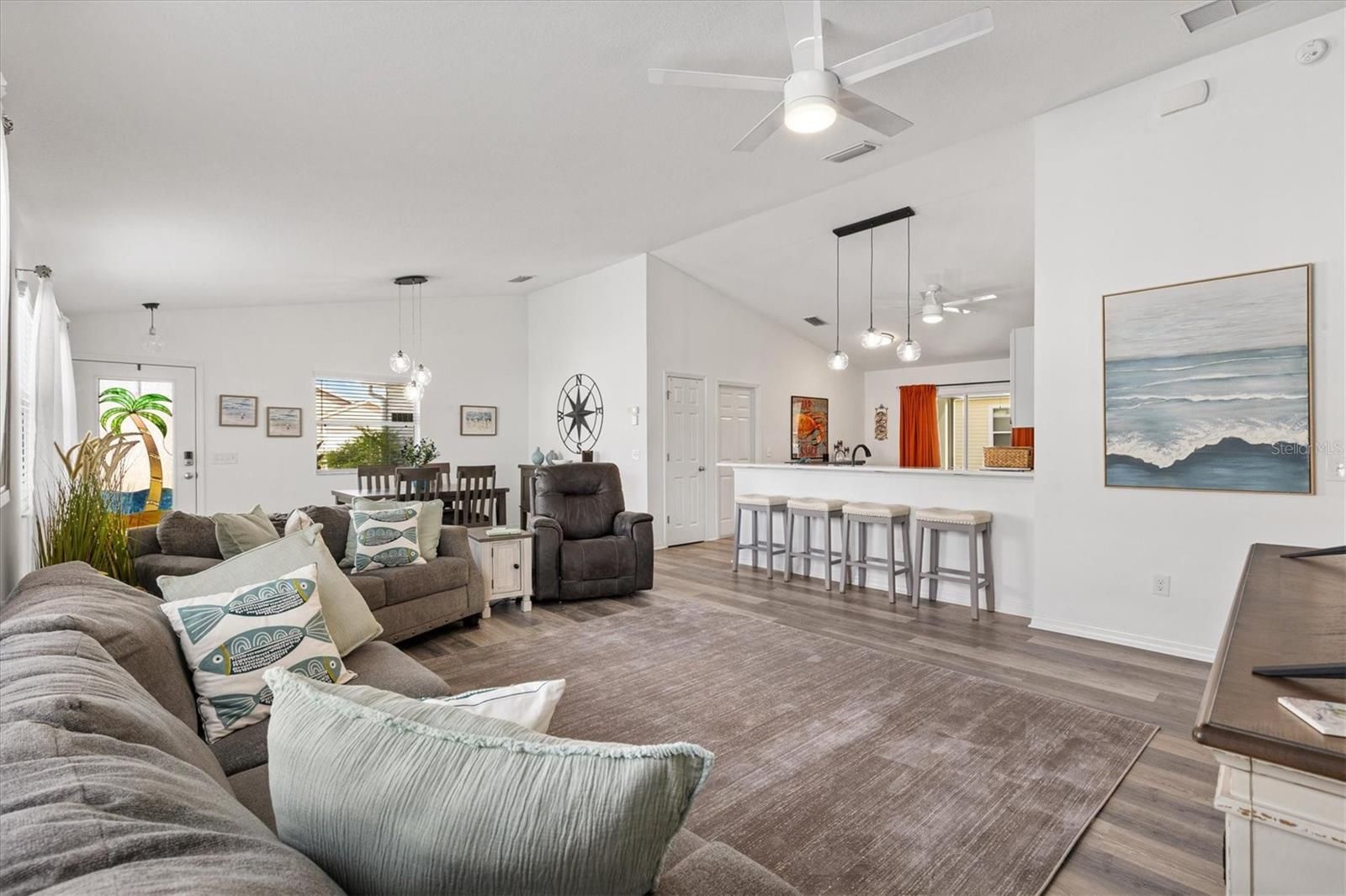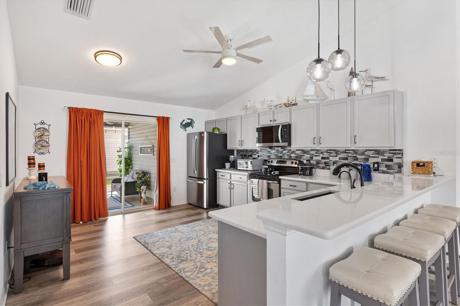 Experience comfortable, low-maintenance living in this beautifully updated 3-bedroom, 2-bath home just minutes from Lake Sumter Landing. This 1,483-sq-ft residence features Luxury Vinyl Plank flooring throughout and a bright, open layout ideal for both seasonal and full-time enjoyment. The kitchen showcases sleek quartz countertops, modern finishes, and excellent workspace for everyday cooking or entertaining. A new roof and new HVAC provide peace of mind and true move-in-ready convenience. Spacious bedrooms and well-appointed baths offer comfort and flexibility for guests or a home office. With its prime location near dining, shopping, and nightly entertainment, this home delivers an updated, easy-care lifestyle in one of The Villages’ most desirable areas.
