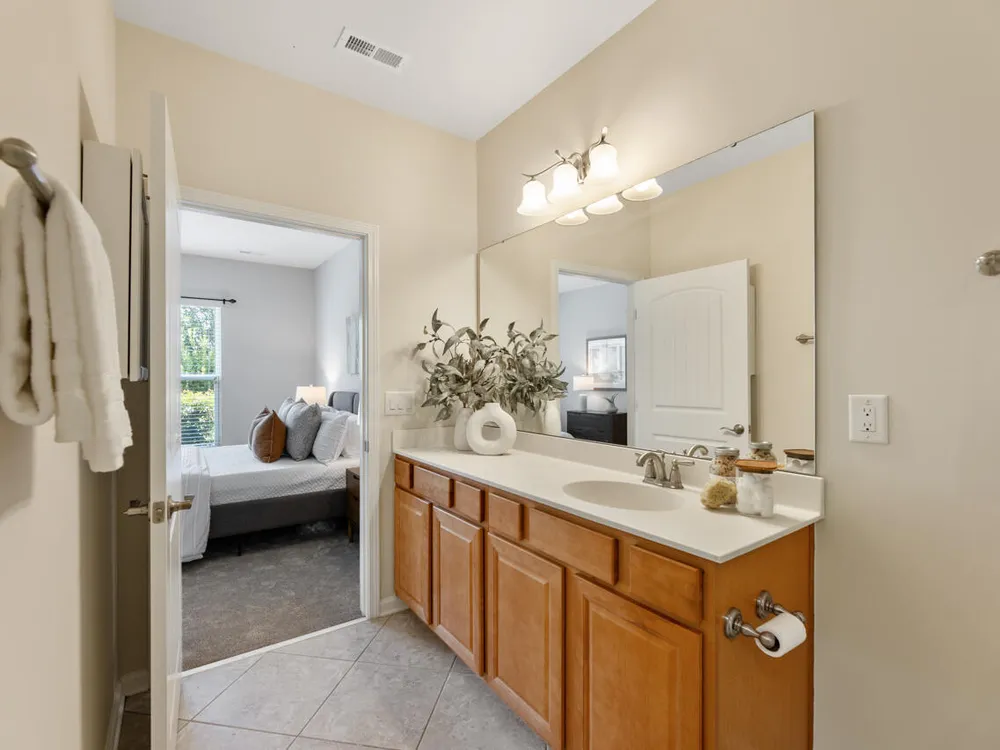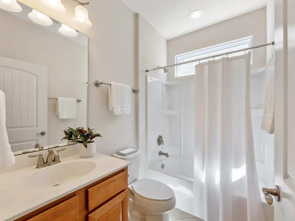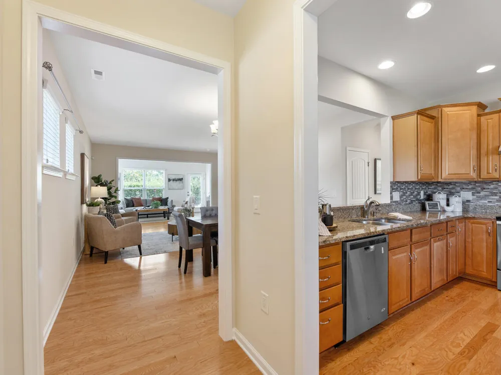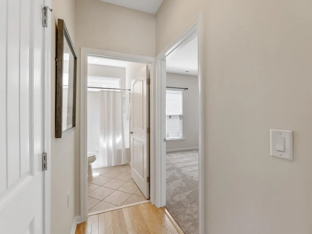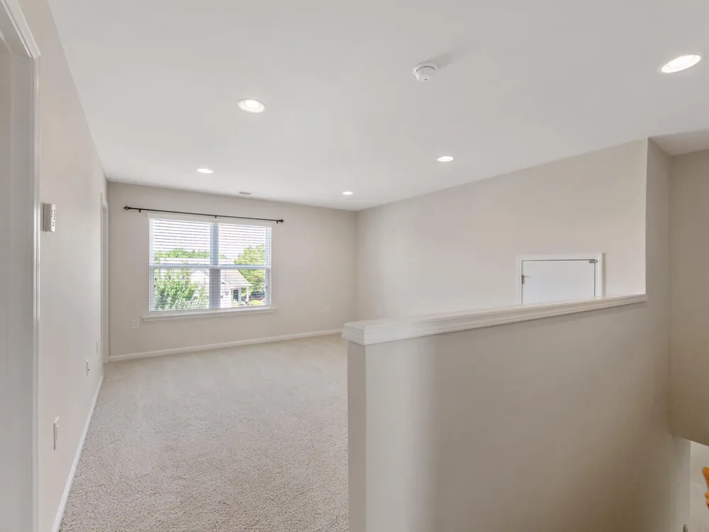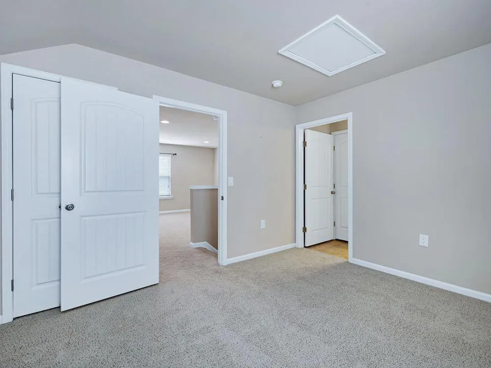 Welcome to 1812 Horne Creek Dr in Durham, NC! This spacious 2,002 sq ft home on a corner lot offers the perfect blend of comfort and convenience along with tons of natural light. It has three bedrooms and three full baths with the primary and a secondary bedroom on the main level. The main-floor owners' suite is a true retreat with a huge walk-in closet, fresh paint and brand-new carpeting. Upstairs, you'll find a third bedroom, a versatile loft space bonus room, and plenty of storage space, including a full-length dual-entry closet and walk-in attic access. The two car garage has a built-in sink, perfect for washing a pup or cleaning the garden tools. This home is full of thoughtful updates, including much fresh paint, a new HVAC (2025), and new carpeting in both of the downstairs bedrooms. The kitchen comes complete with all appliances (fridge, dishwasher, disposal, microwave), AND the first floor laundry room includes washer and dryer (2024) with purchase so you can move in and start living! Enjoy the cozy sunroom off the living room, perfect for relaxing or reading, and a back patio with just the right amount of space for your outdoor furniture and grill. Plus, with a blank canvas yard, you have the opportunity to add your personal touch and create your dream outdoor space. No mowing necessary as the HOA takes care of that. Located in the desirable Carolina Arbors community, you'll have access to top-tier amenities, including a massive clubhouse, indoor and outdoor pools, hot tub, gym, pickleball courts, basketball courts, dog parks, and walking trails. All this is just a 5-minute drive to shopping, dining, and everything you need.