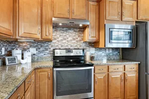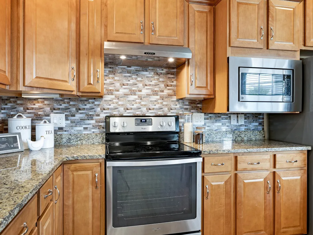 - Dishwasher, Disposal, Dryer, Electric Range, Gas Water Heater, Ice Maker, Microwave, Range Hood, Refrigerator, Stainless Steel Appliance(s), Washer