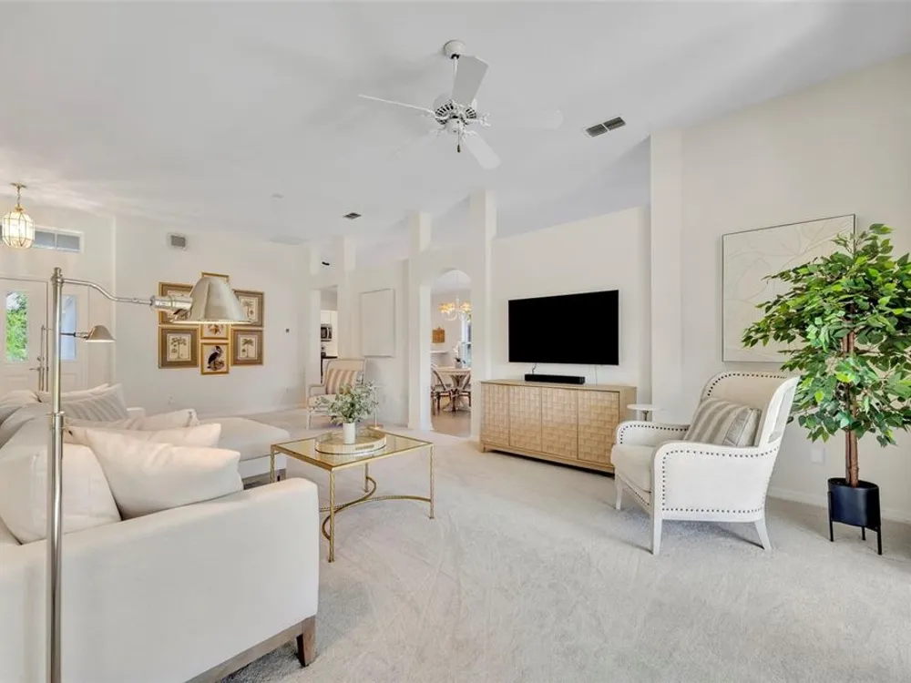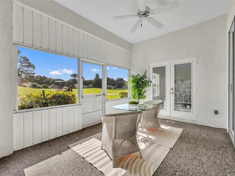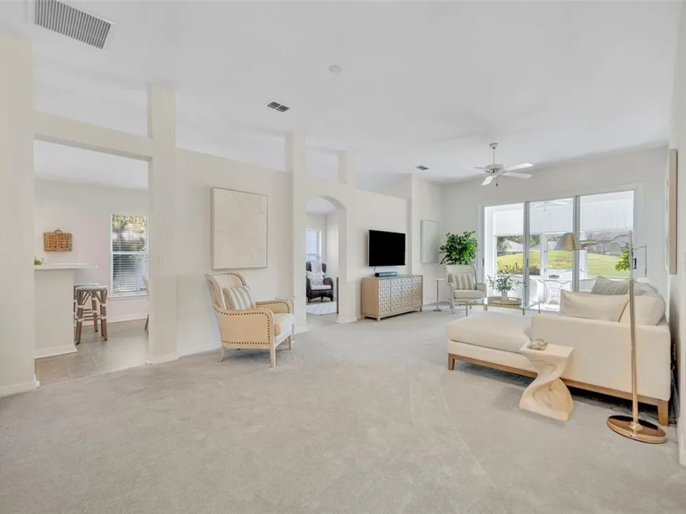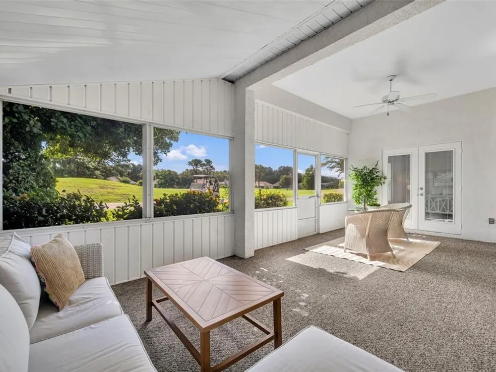 HOME IS PRICED TO SELL and all furniture along with the appliances stay with the home. TURNKEY charming 2-bedroom, 2-bathroom home nestled in The Country Club of Mt Dora, right on the 7th green. As you step inside, you’ll be greeted by a professionally decorated home with a spacious living room with vaulted ceilings, a large dining area with office space and a bright kitchen with updated white cabinets- and all stainless steel appliances ( brand new microwave) included- great for entertaining. Brand new carpet throughout 2025. Freshly painted entire house 2025 . Laundry room updated new laundry tub and faucets 2025 and washer and dryer included. The master suite is a true retreat, featuring a walk-in closet and a bathroom with updated new cabinet doors with dual vanities, a soaking tub, and a large separate shower. Step outside to the expansive lanai (with all new upgraded screens) and take in the stunning views of the golf course - a lovely setting for your morning coffee or evening relaxation. Can be a 4 season room. All cabinets updated with new doors throughout 2025 . A two-car garage adds to the convenience. Painted 2025 HVAC all new 2019. Brand new screens on every window and lanai 2025. Enjoy an active lifestyle with access to the 18-hole golf course, tennis and pickleball courts, a pool with hot tub, clubhouse, restaurant, and pro shop, all within the community. Ideally situated just minutes from the 429-toll road and new Wekiva Parkway, you’ll have quick and easy access to Orlando, 35 minutes to Sanford airport and 45 minutes to MCO airport, theme parks, and Florida’s beautiful beaches. This home is in a prime location - schedule your showing today!