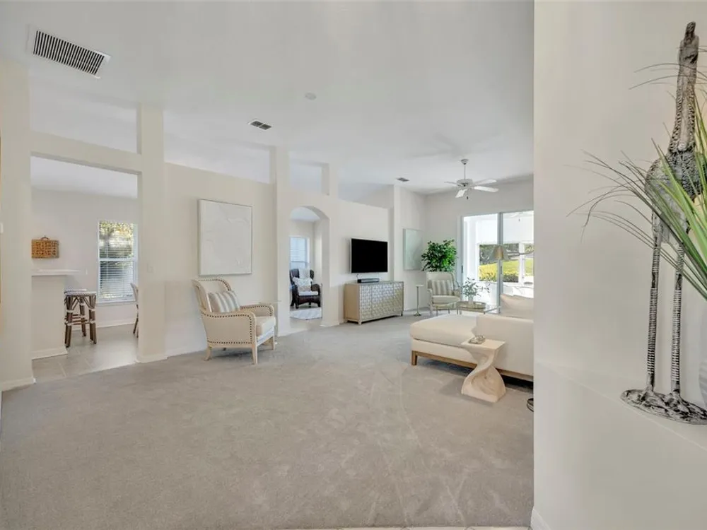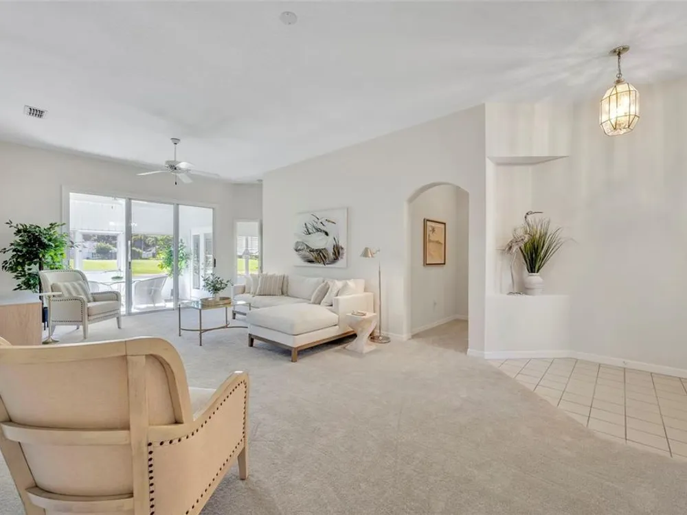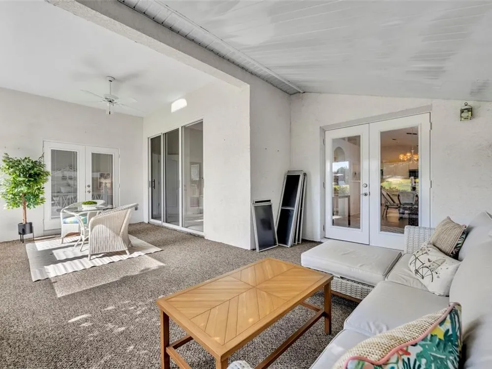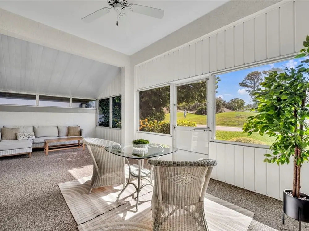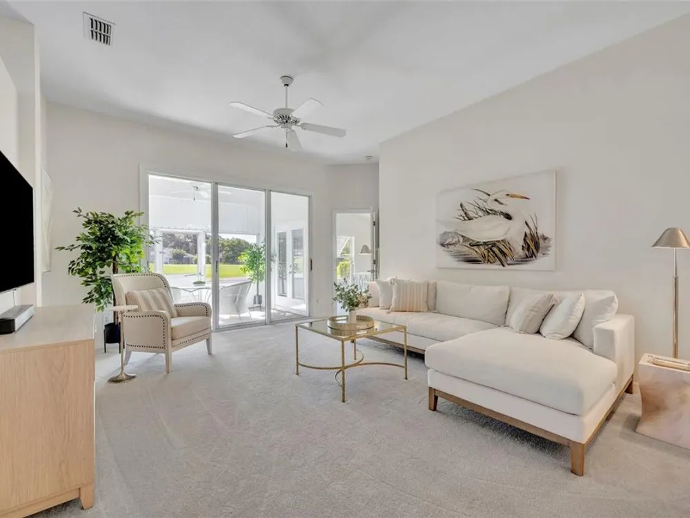 HOME IS PRICED TO SELL and all furniture along with the appliances stay with the home. TURNKEY charming 2-bedroom, 2-bathroom home nestled in The Country Club of Mt Dora, right on the 7th green. As you step inside, you’ll be greeted by a professionally decorated home with a spacious living room with vaulted ceilings, a large dining area with office space and a bright kitchen with updated white cabinets- and all stainless steel appliances ( brand new microwave) included- great for entertaining. Brand new carpet throughout 2025. Freshly painted entire house 2025 . Laundry room updated new laundry tub and faucets 2025 and washer and dryer included. The master suite is a true retreat, featuring a walk-in closet and a bathroom with updated new cabinet doors with dual vanities, a soaking tub, and a large separate shower. Step outside to the expansive lanai (with all new upgraded screens) and take in the stunning views of the golf course - a lovely setting for your morning coffee or evening relaxation. Can be a 4 season room. All cabinets updated with new doors throughout 2025 . A two-car garage adds to the convenience. Painted 2025 HVAC all new 2019. Brand new screens on every window and lanai 2025. Enjoy an active lifestyle with access to the 18-hole golf course, tennis and pickleball courts, a pool with hot tub, clubhouse, restaurant, and pro shop, all within the community. Ideally situated just minutes from the 429-toll road and new Wekiva Parkway, you’ll have quick and easy access to Orlando, 35 minutes to Sanford airport and 45 minutes to MCO airport, theme parks, and Florida’s beautiful beaches. This home is in a prime location - schedule your showing today!