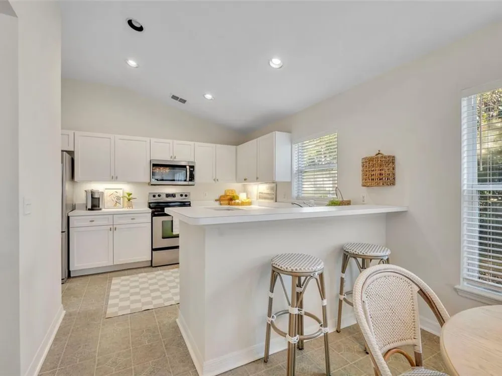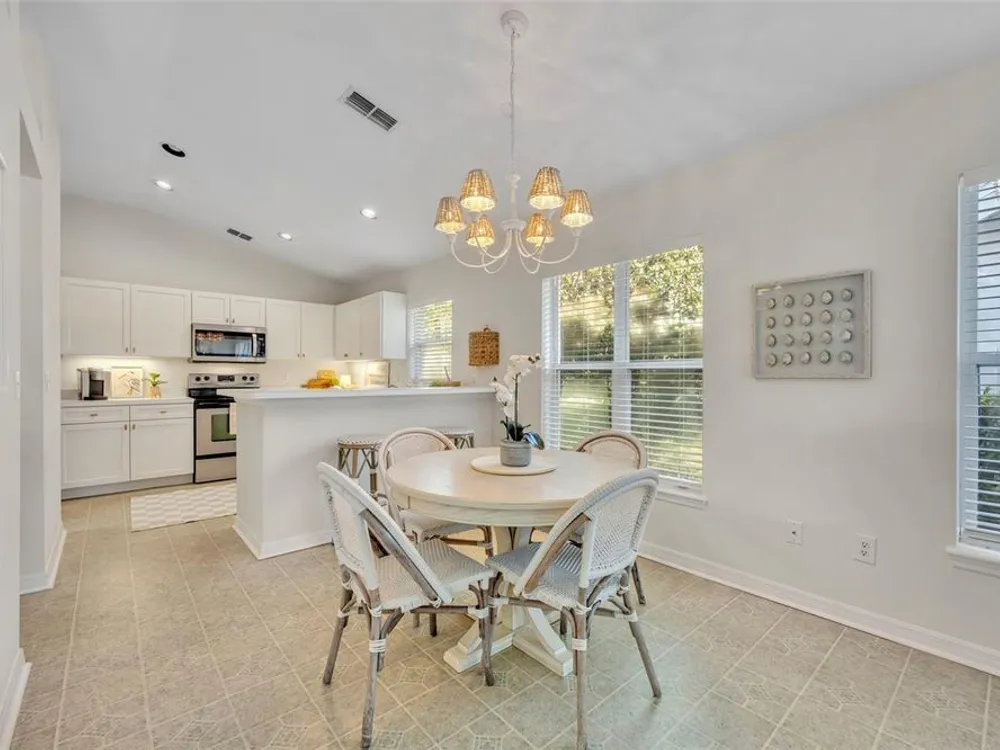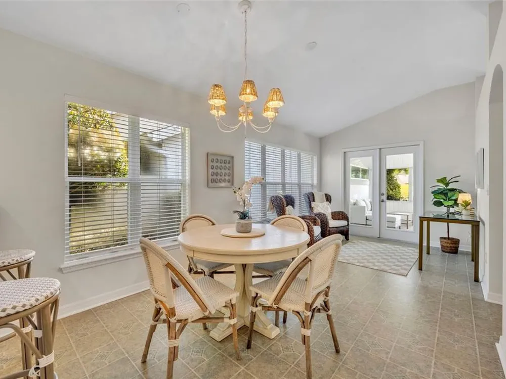- Ceiling Fan(s), Eat-in Kitchen, High Ceilings, Main Level Primary, Thermostat, Vaulted Ceiling(s), Walk-In Closet(s), Window Treatments