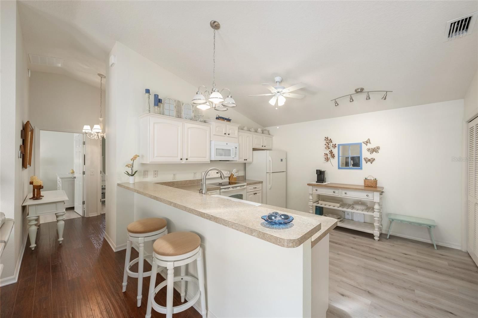 Village of St Charles/Hallandale Villas – Colony Patio Villa with VAULTED CEILINGS & Ceiling Fans! – BOND IS PAID!! – Roof 09/2024 – HVAC 08/2023 (with Ecobee Thermostat) - Electric Water Heater 10/2021 – Florida Room (Enclosed Front Lanai) with Vaulted Ceiling & Ceiling Fan - Pro Life WATER FILTRATION SYSTEM & SOFTENER - PLANTATION SHUTTERS - NO Carpet – Indoor Laundry (LG TROMM Washer & Dryer on Pedestals) – Bedroom 2 with Built-in Murphy Bed – Built-in Storage Shelving in Garage!! – This Villa has an Expanded Front and Side Patio Custom Painted & Textured, Rock Mulch in the Landscape Beds, Gutters & Downspouts, 2-Zone Irrigation with Rain Sensor – The Kitchen has an Indoor Laundry Closet, Pantry Closet, Breakfast Bar, Additional Lighting, Raised-Panel Cabinets with Crown Molding & Pull-out Shelves – Primary Bedroom with Walk-in Closet and En Suite Bath. Barn door entry to Bath, Step-in Shower with Solid Surface Walls & Corner Bench Seat with Shampoo Niche, Grab Bar, Rain Shower Head, Glass Panel – Bedroom 2 with Queen-size Built-in Murphy Bed, Ceiling Fan & Closet – Hall Linen Closet and Bath 2 with Tub/Shower Combo -- This Cute with its Bond Paid, and 2024 Roof, 2023 HVAC & 2021 Water Heater is s GEM that you don’t want to miss!.. check out the video on-line!