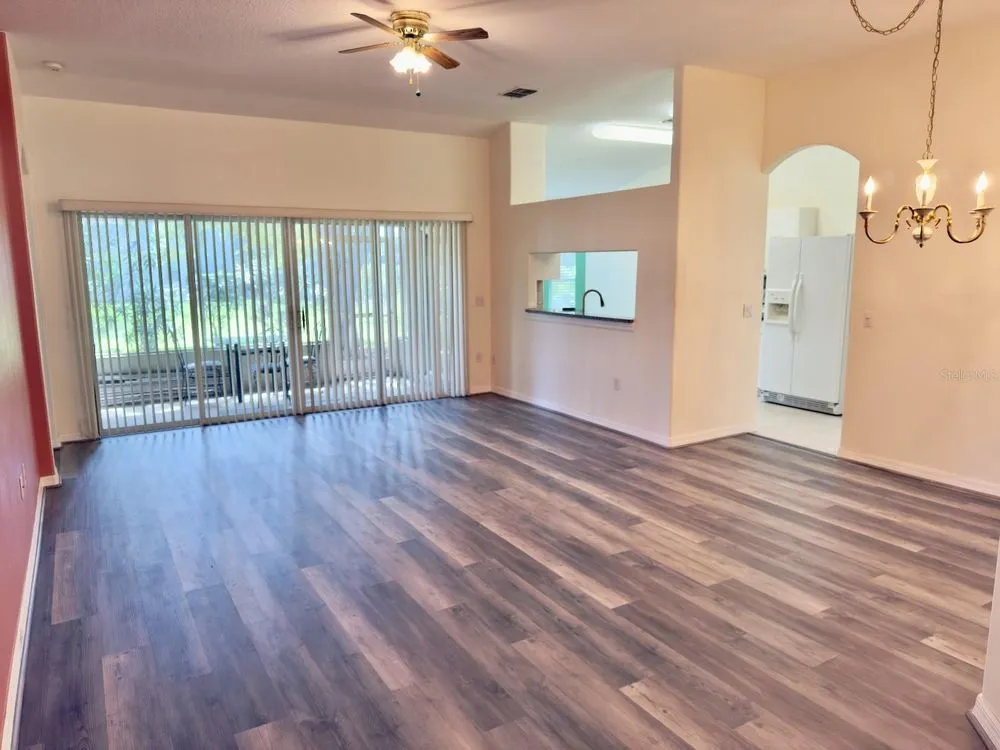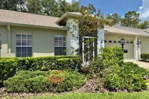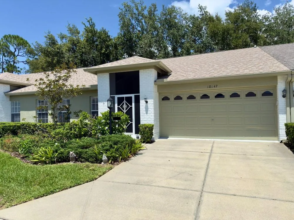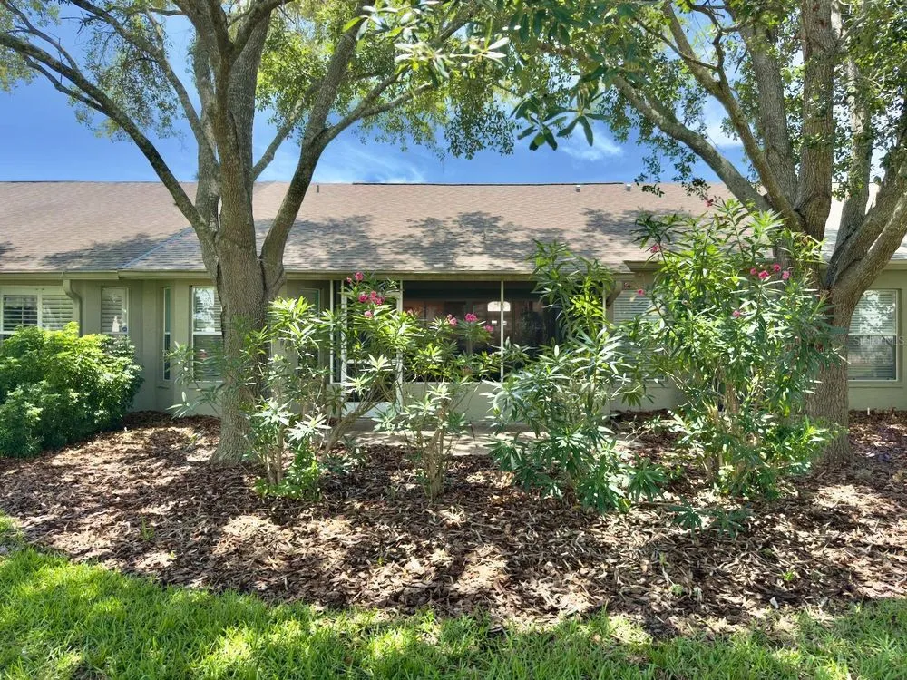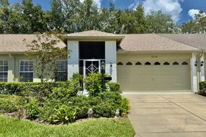 Welcome to this beautifully maintained 2-bedroom, 2-bathroom villa with a spacious 2-car garage, located in the highly sought-after Heritage Pines 55+ Golf Community. Recently cleared out and now move-in ready, this home greets you with a charming screened front patio and stunning brand-new waterproof vinyl plank flooring throughout. The open layout is enhanced by high ceilings, creating a bright and airy feel. The updated kitchen features newer appliances, granite countertops, a breakfast bar, stylish backsplash, and a cozy dinette area for casual dining. The primary suite offers dual walk-in closets and an en-suite bath complete with a walk-in shower and a vanity with a convenient built-in desk. Enjoy the peaceful and relaxing enclosed lanai, accessible from both the living room and dinette through sliding glass doors. Additional features include an indoor laundry room with washer and dryer included, plus major upgrades for peace of mind—a brand-new roof (2025), newer AC (2023), and water heater (2023). Heritage Pines is a gated, amenity-rich community offering an 18-hole championship golf course, heated pool and spa, fitness center, clubhouse, restaurant and bar, as well as tennis, pickleball, and bocce courts. HOA fees include cable, internet, exterior painting, lawn care, and irrigation, ensuring a truly low-maintenance lifestyle. Don’t miss the 3D virtual tour—schedule your private showing today!