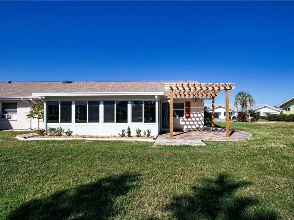 One or more photo(s) has been virtually staged. Beautifully updated TWINTREE in pristine condition. Move right into this spacious home with all the updates that are important to savvy buyers. Major items updated in the last few years include: **ROOF (2021) **A.C. (2019) **WATER HEATER (2023) **WINDOWS (2018) ** LUXURY VINYL FLOORING (2023) **WATER SOFTENER (2023). This highly desirable floor plan features two ensuite bedrooms with UPDATED BATHROOMS, double sink vanities and lots of closet built-ins including closet wall safes for your peace of mind. UPDATED KITCHEN with cream cabinets, roll out shelves, deep drawers, granite countertops and stainless appliances. The refrigerator and dishwasher are 2025 and have 5-year warranties. The YEAR-ROUND FLORIDA ROOM (2020) finished with insulated walls, double pane windows, ceiling fan and lighting and has a separate A.C. unit adding an additional 240 sq. ft. to the property but not shown on county records. An interior laundry room with w./d., storage and sink is steps off the kitchen. Pride of ownership and great finishes make this home shine with bonus features as lead glass entry door, crown molding, plantation shutters, designer lighting fixtures and ceiling fans. FRESHLY PAINTED 2025. The backyard has a wonderful open paver patio with pergola to enjoy the Florida sunshine. HURRY TO SEE- WILL NOT LAST. Sun City Center has been named the #1 retirement community by REALTOR.com. This golf cart assessable community has all the services you need including recreation, clubs and activities, volunteer opportunities, stores, medical facilities, financial services, and houses of worship. Minutes away is I 75 linking to a short drive to Tampa, Sarasota and St. Petersburg, near 3 airports, beaches, theater, museums, fine dining, advanced medical, special events and major league sports too. What a great place to be living the dream!