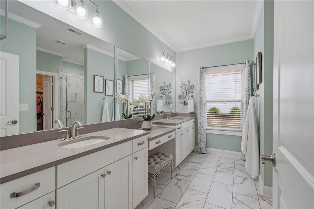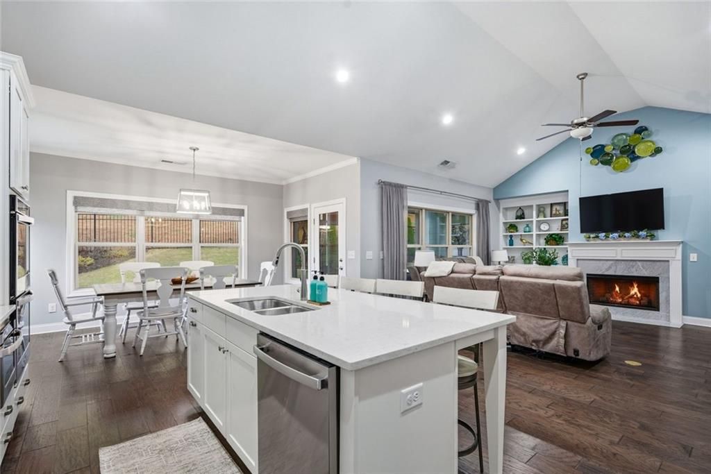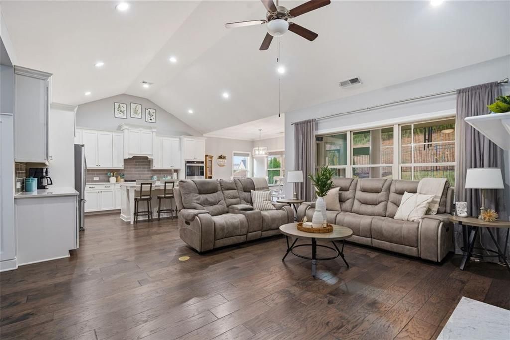 Welcome to 1815 Nestledown Drive—where comfort, style, and thoughtful design come together in this beautifully appointed ranch home. Nestled in a gated 55+ community just under a mile from the vibrant Cumming City Center, you’ll enjoy effortless access to restaurants, shops, and even free concerts, all while coming home to a peaceful, amenity-rich neighborhood. Designed for easy, one-level living, this home features an open floor plan with high ceilings and an abundance of natural light that fills every corner. Wide hallways, 3-foot doorways, and a zero-entry from the garage provide exceptional accessibility, while the roll-in shower and stepless entry to the primary suite ensure both comfort and convenience. At the heart of the home, the chef’s kitchen is sure to impress with stainless steel appliances, quartz countertops, a large island perfect for gathering, and a spacious walk-in pantry. Hardwood floors flow throughout, enhancing the seamless layout and warm, inviting feel. The heated and cooled sunporch invites year-round enjoyment, featuring a wall of windows that open to transform the space into a breezy screened porch. Step outside to a brick patio and fenced backyard overlooking tranquil green space—perfect for relaxing mornings or entertaining guests. Residents enjoy access to exceptional community amenities including a pool, pickleball courts, gym and a clubhouse ideal for social gatherings and events. Check out the 3D Tour in the virtual tour link!