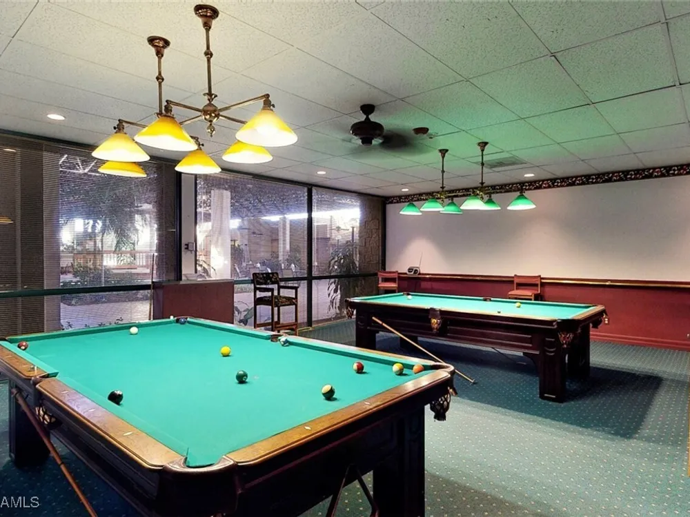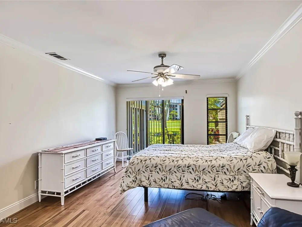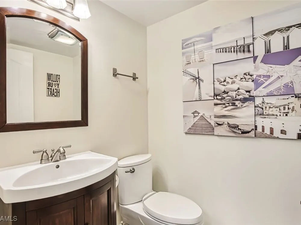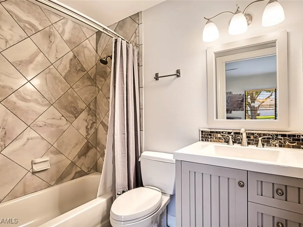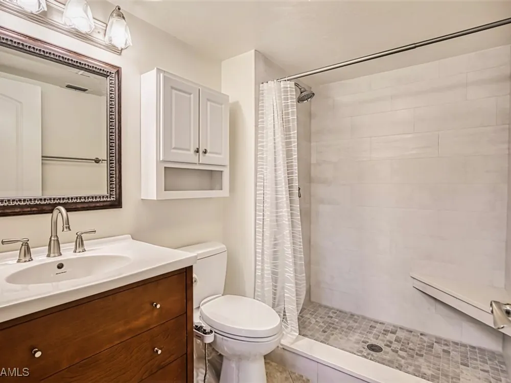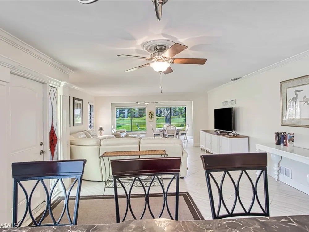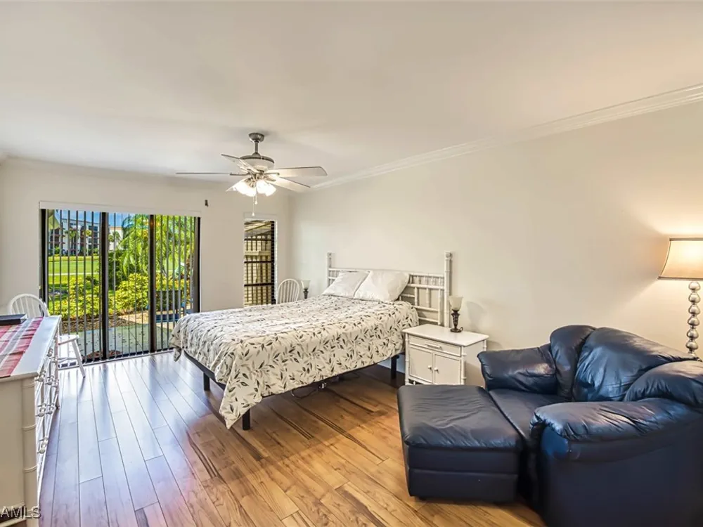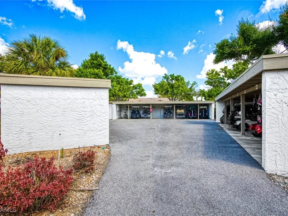 Welcome to resort style living at its finest. This stunning 2 bedroom 2.5 bath Valencia model Garden Villa situated on the 9th fairway gives you plenty of living space with just under 1600 sq ft. A private screened sitting area leads you to an entry foyer with diagonal tile through out main living area. Large eat in kitchen with granite counter tops, luxury vinyl flooring tiled back splash and recessed lighting. Oversized living room with separate sitting area to enjoy your morning coffee or a peaceful sunset. Sliders from living room and owners suite to a private patio area. Main bedroom boasts tiled walk in shower, raised vanity and plenty of closet space. Guest room is located far enough away for your guests privacy with their own bathroom and large walk in closet. Half bath is a bonus in this model as both owners and guests have complete privacy when entertaining. Impact window (kitchen) as well as manual shutters for added peace of mind. Electric garage screen, front load washer and dryer, AC unit 2018, New roof 2023, UNIT BEING SOLD TURNKEY. Seven Lakes a true bundled 55+ active golf and tennis community with no transfer, green or trail fees- giving you unlimited golf on the 18 hole executive course. 6 heated pools throughout community, tennis pavilion, pickle ball, bocce, on site restaurant with no minimum, auditorium for many socials and dances, movies and concerts, on site golf pro, fitness center, wood shop, billiards, full service Lifestyle department to keep you up to date on all the activities in the community as well as bus trips. Enjoy, trivia, karaoke, bingo, art classes, card games, lapidary, line dances and many clubs to keep you social. Centrally located across from Bell Tower Shops, restaurants, shopping. Minutes to Barbara B Mann Theater, Lakes Park, RSW Airport and beaches. Pet friendly community 1 pet under 25 lbs- Monthly condo fees includes all excluding electric. A tour of the community is well worth your time.