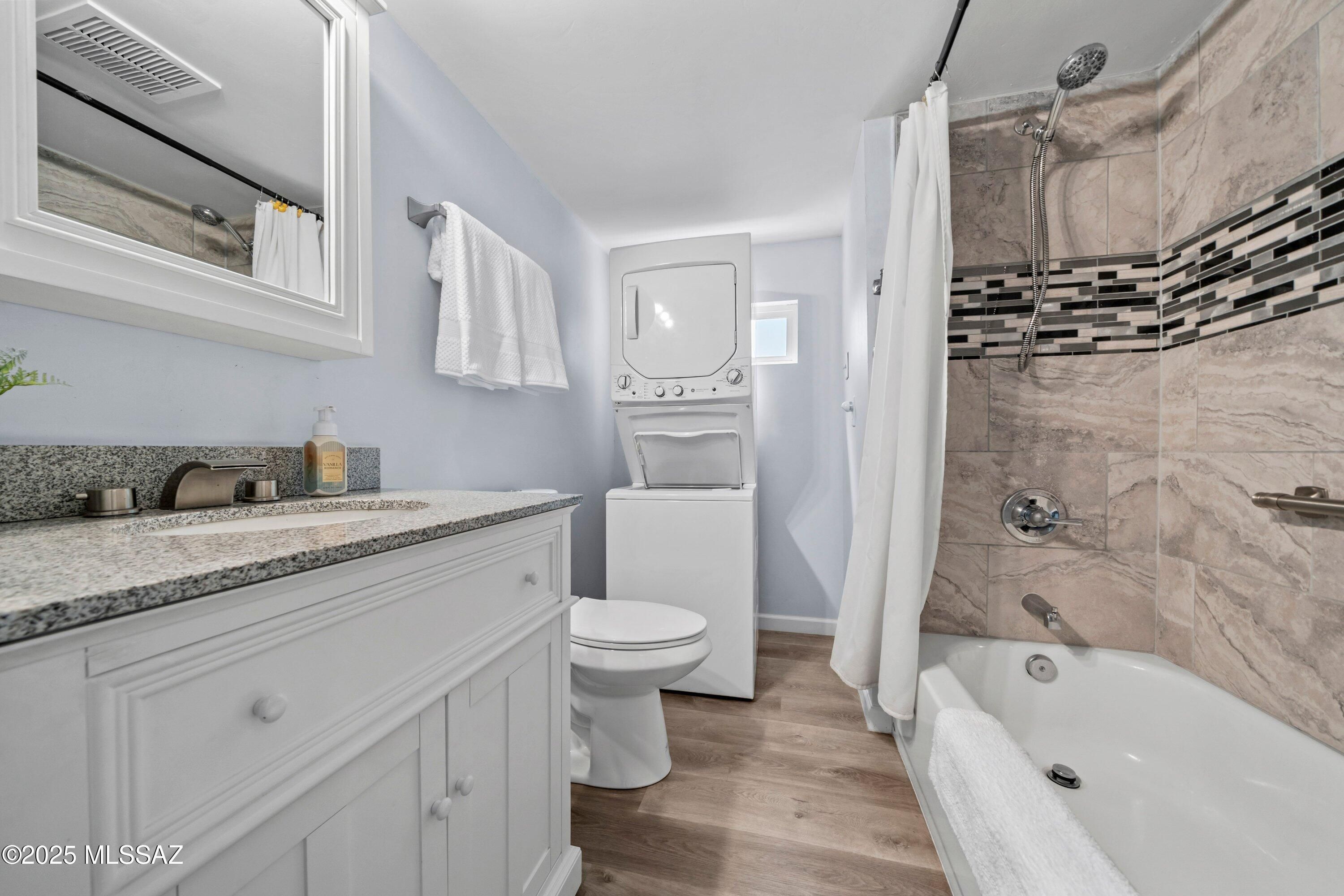 Remodeled in 2022, New flooring, kitchen cabinets, granite countertops, stainless steel appliances, the remodeled bathrooms are beautiful! Washer dryer tower located in the main bathroom; guest bedroom has a 1/2 bath. Fresh paint throughout, HVAC & hot water heater replaced in 2022. Dual pane windows, a nice 12x6 Arizona room attached. provides privacy and entertaining space. BONUS, detached workshop with mini split. perfect for hobbies or extra office space! There is a metal garden shed attached to the rear of the workshop, perfect for bike and patio furniture storage. The back corner of the home has a paver patio with a firepit. Not currently enrolled in the GVR, can be enrolled if you are interested. Enjoy all the neighborhood amenities, pool, hot tub, clubhouse. NO GVR