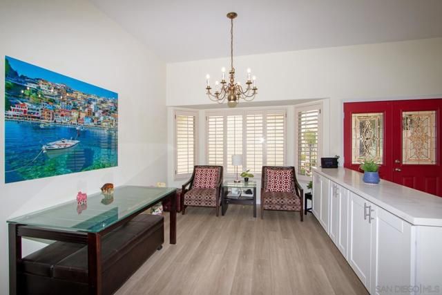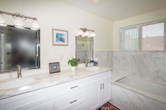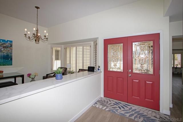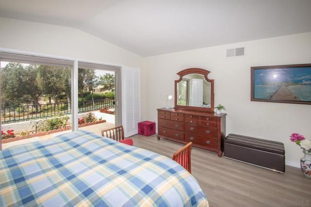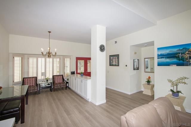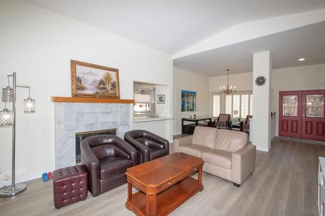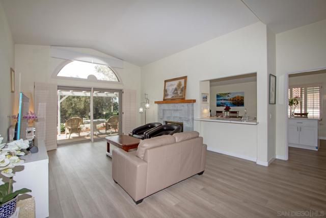 Pristine, updated, Marbella home with awesome mountain views from the living room, family room, primary bedroom and patio of this three-bedroom, two bath home. This light and bright open floor plan with vaulted ceilings, light colored wide-planked luxury vinyl flooring, and plantation shutters throughout is the largest floor plan in prestigious Marbella. The living room shares a double-sided fireplace with the den, and the den is open to the kitchen making this home warm and cozy. Dual pane doors and windows throughout and a newer roof. Great location! This home is located in a 55+ community.