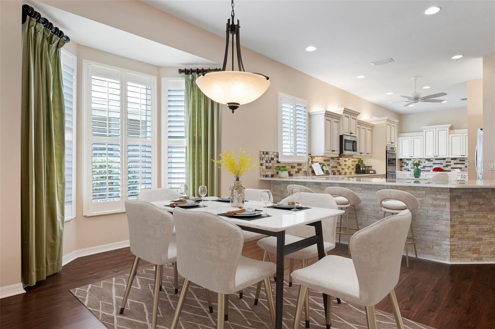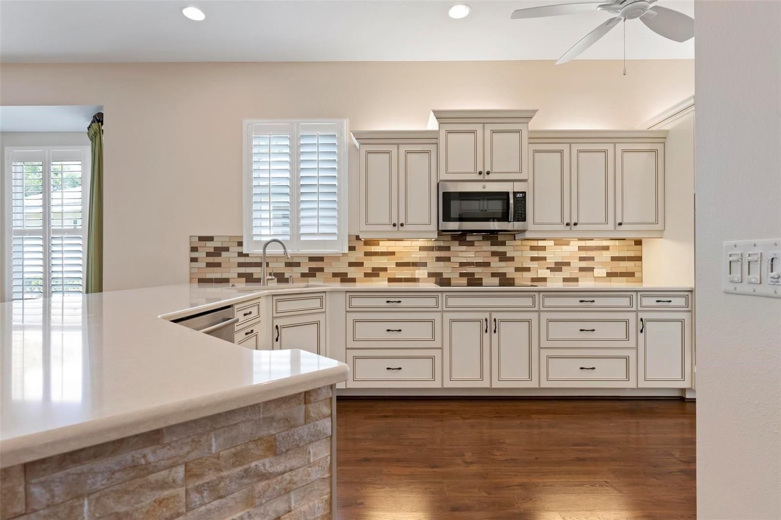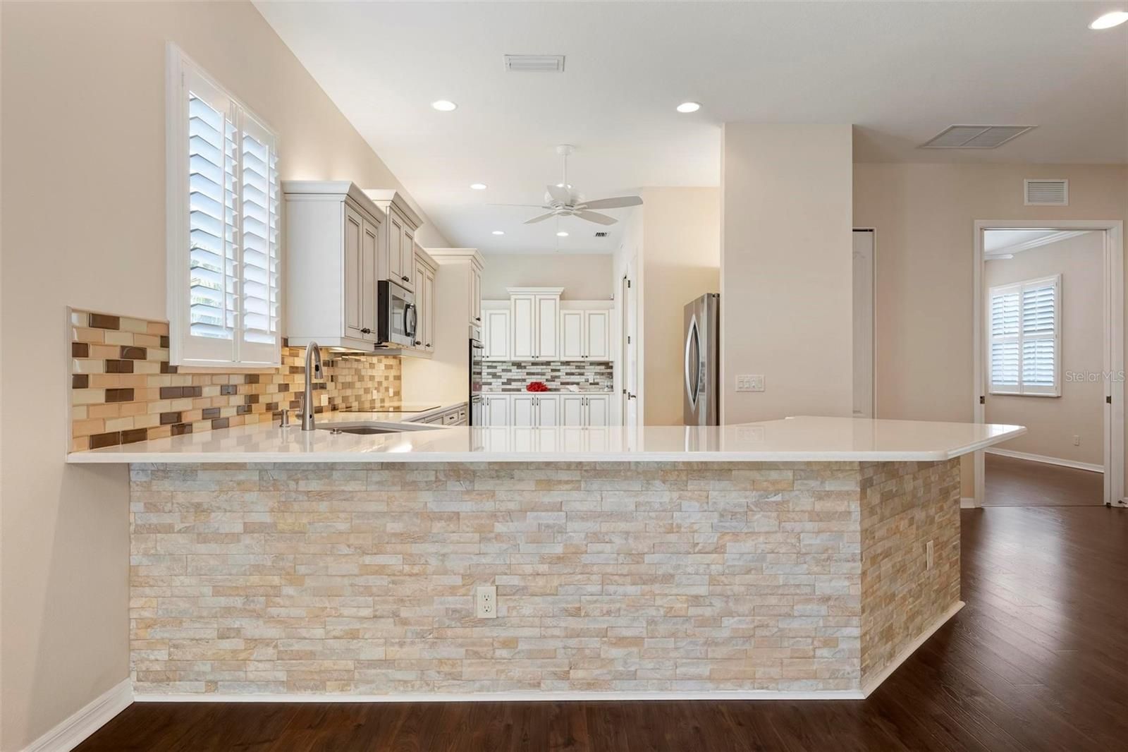 One or more photo(s) has been virtually staged. Best-value pool home in Plantation Golf & Country Club—newer construction, maintenance-free living, and a private cul-de-sac location. Built in 2014 and impeccably maintained, this residence in St. Andrews East offers the rare combination of modern design, privacy, and worry-free ownership. The association covers lawn care, exterior painting, roof maintenance and replacement, and insurance, providing predictable costs and true lock-and-leave convenience. Inside, the sunlit open floor plan with desirable southern exposure creates bright living spaces ideal for everyday comfort and entertaining. The great room features tray ceilings, crown molding, plantation shutters, 8-foot doors, and pocketing sliding glass doors that open seamlessly to the lanai. The chef’s kitchen is designed for both beauty and function with quartz countertops, soft-close cabinetry, glass tile backsplash, under-cabinet lighting, granite sink, multiple drawer banks, and premium appliances including a double wall oven, induction cooktop, and wine refrigerator. Step outside to your private lanai and heated saltwater pool, surrounded by lush tropical landscaping—an ideal setting for relaxing or hosting guests. Additional highlights include IMPACT WINDOWS, storm shutters, a finished garage, and a NEW AC SYSTEM installed in 2025 for modern efficiency and peace of mind. Optional membership at Plantation Golf & Country Club offers championship golf, tennis, pickleball, a resort-style pool, fitness center, dining, and a vibrant social calendar. Conveniently located just minutes from downtown Venice, the beaches of Venice, and the dining and entertainment of downtown Wellen Park.