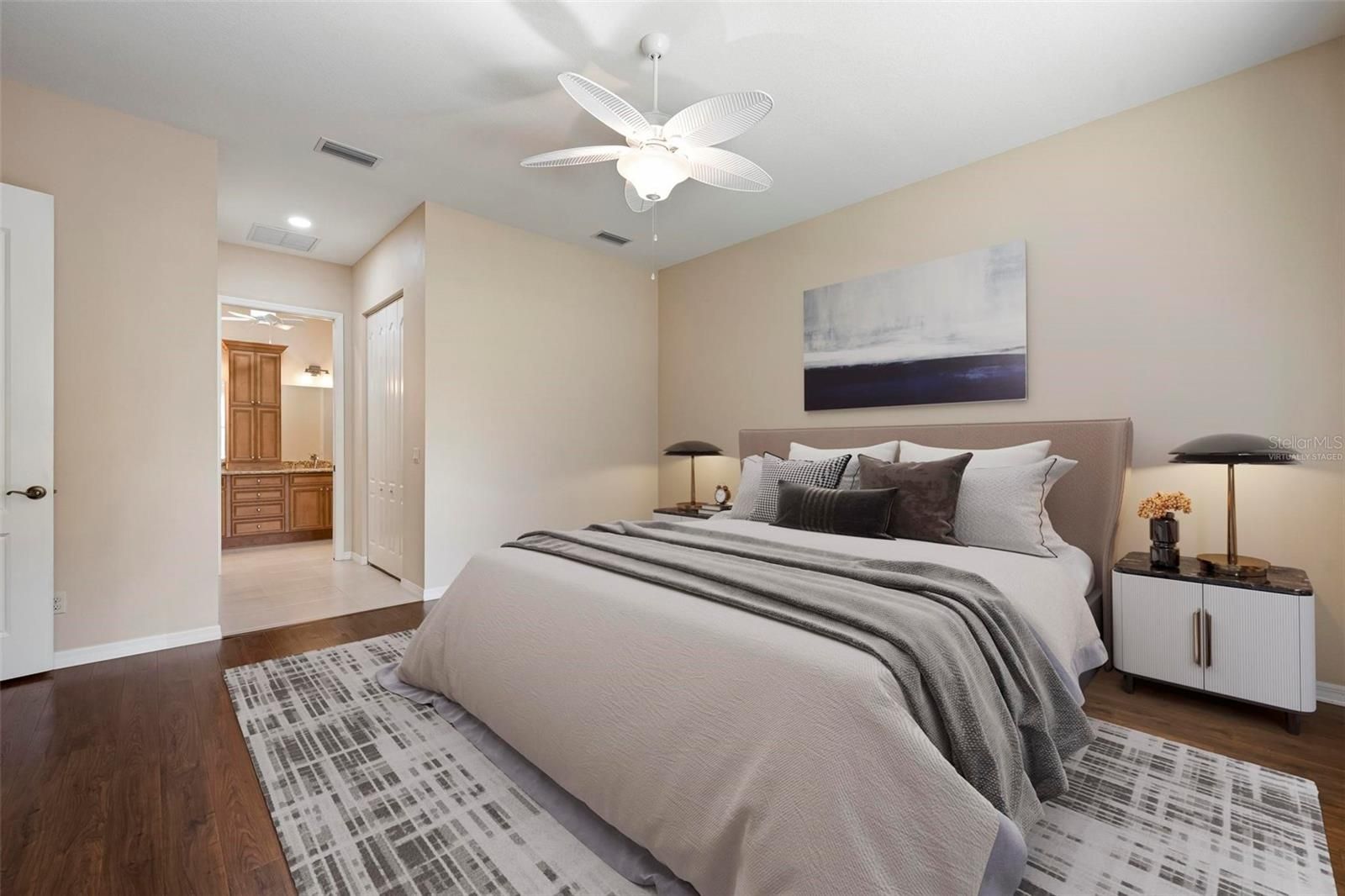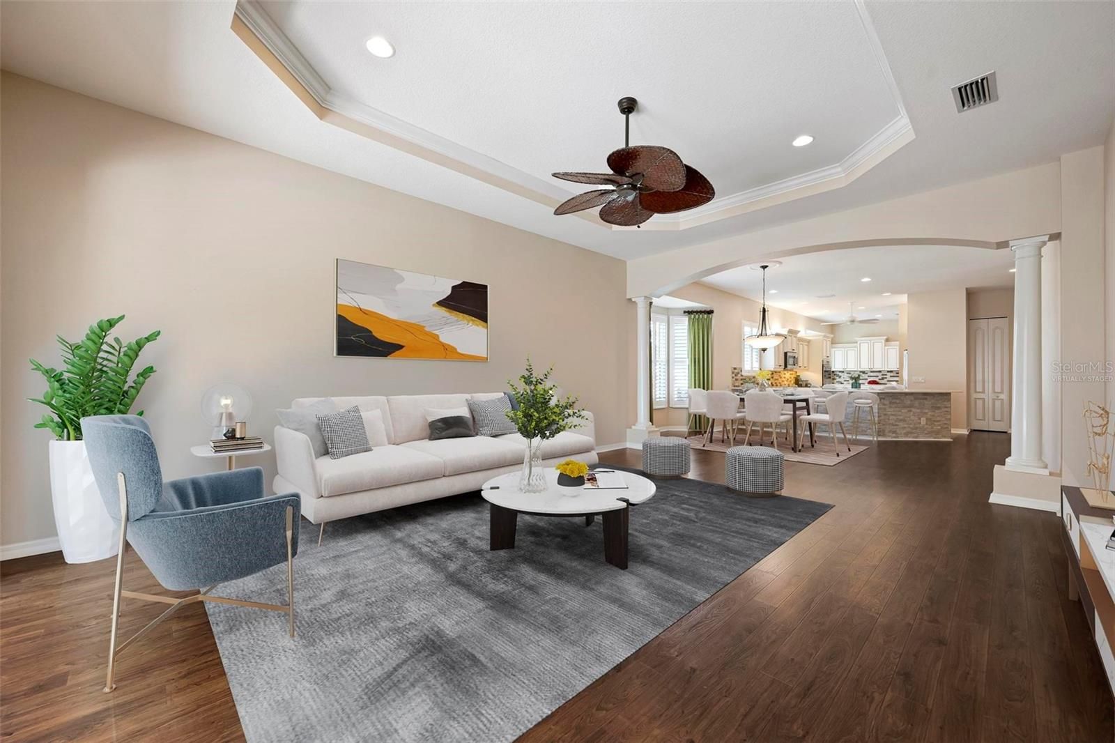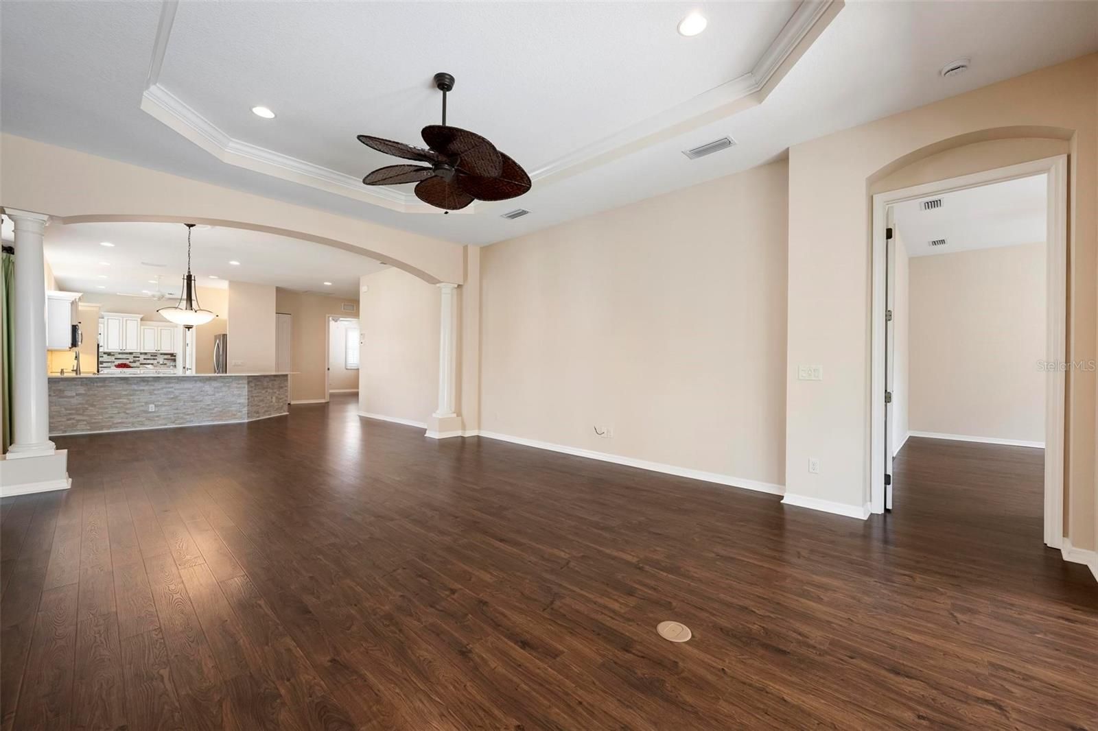 - Ceiling Fan(s), Crown Molding, Open Floorplan, Solid-Wood Cabinets, Stone Counters, Tray Ceiling(s), Walk-In Closet(s)