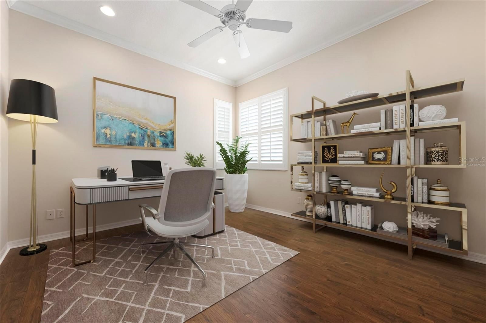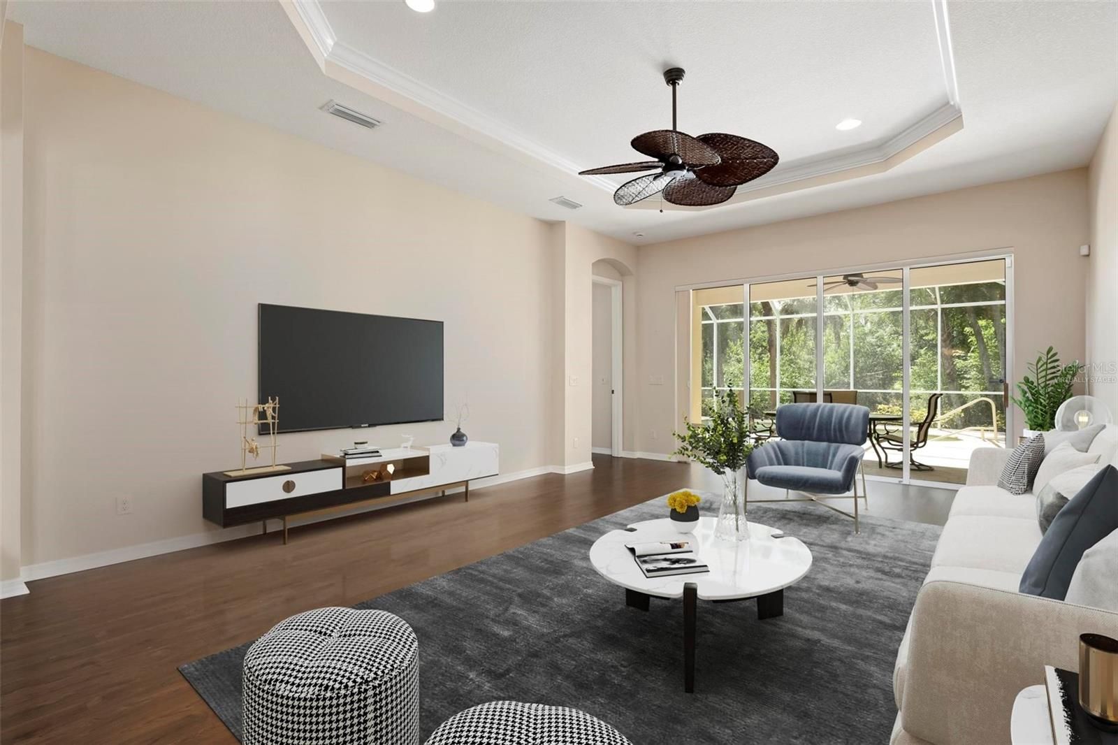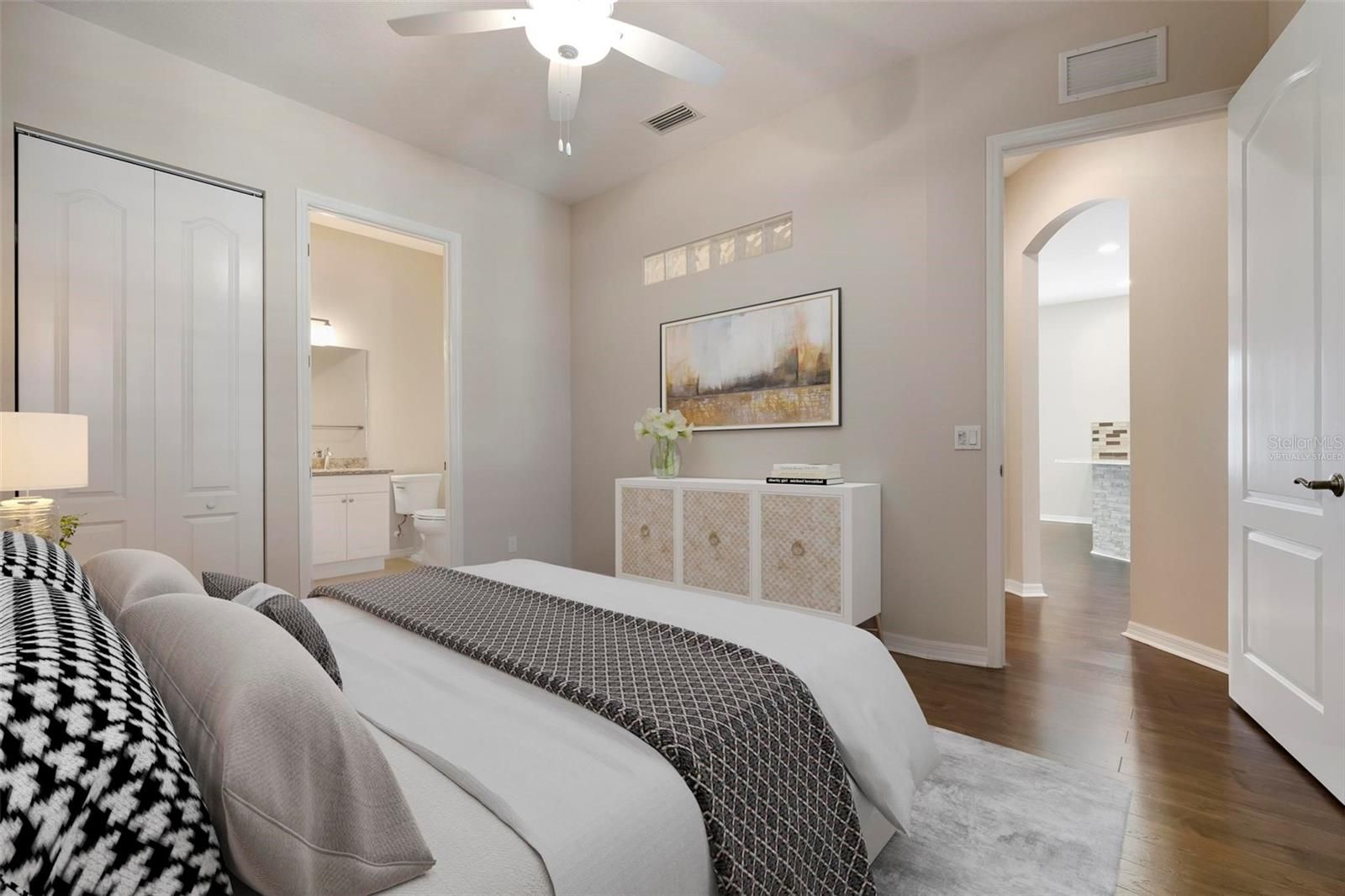 - Ceiling Fan(s), Crown Molding, Open Floorplan, Solid-Wood Cabinets, Stone Counters, Tray Ceiling(s), Walk-In Closet(s)