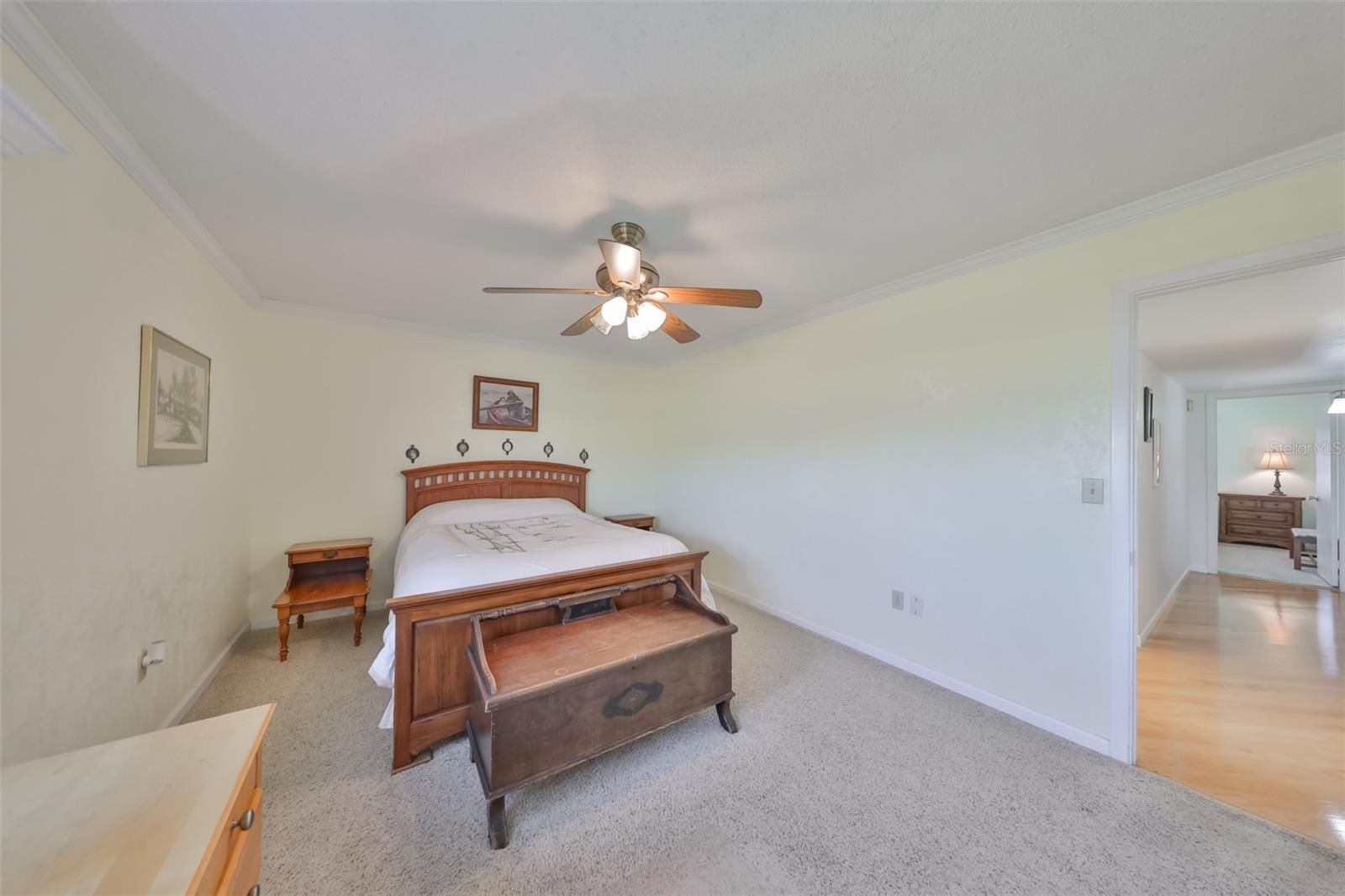 OUTSTANDING MOVE-IN READY HOME IN SUN CITY CENTER'S PREMIER 55+ COMMUNITY! Don't miss this incredible opportunity to own a beautifully maintained, custom 2-bedroom, 2-bath home in Sun City Center, voted the 2024 #1 Retirement Community in America by Realtor.com and Travel + Leisure Magazine! This exceptional property offers spacious and versatile living with a large Florida room, extra craft/workshop room with mini split A/C, huge covered screened lanai, and a 2-car garage, all conveniently located near community amenities. From the moment you arrive, you'll notice the easy-care landscaping, pristine driveway, and extra paver walkway that create a welcoming first impression. Step through the stunning leaded-glass front door into a custom living room featuring rich woodwork, elegant trim, and beautiful wood flooring that extends into the dining area. The remodeled kitchen is a chef's delight, showcasing granite countertops, a gas cooktop, stainless steel appliances, and abundant storage. The spacious Florida room is perfect for entertaining, relaxing, or crafting, filled with natural light from impact-rated windows that overlook the expansive covered screened lanai and private backyard. The home's thoughtful design continues with vinyl flooring in the kitchen, tile in the Florida room, and carpeted bedrooms for comfort. A bonus craft/woodworking room with its own mini split air conditioner sits next to the large laundry room, complete with front-load washer and dryer. Enjoy peace of mind with numerous updates and upgrades, including: 200-amp electrical panel (2024) Impact-rated windows and front door (1999 & 2023) Screen room/utility room addition (2014) HVAC (2007) Water/sewer meter (2016) New roof (2018) Come live your best Florida lifestyle in Sun City Center, where residents enjoy resort-style amenities such as a state-of-the-art fitness center, indoor Olympic lap pool, resistance pool, and outdoor pool, plus softball, pickleball, tennis, lawn bowling, dancing, and over 150 clubs and activities. Optional Club Renaissance membership with access to 36 holes of golf is also available. Perfectly located near Tampa, Sarasota, and St. Petersburg, you'll have convenient access to airports, beaches, shopping, dining, and entertainment. This home truly has it all comfort, quality, and community. Schedule your showing today and start living your Florida dream!