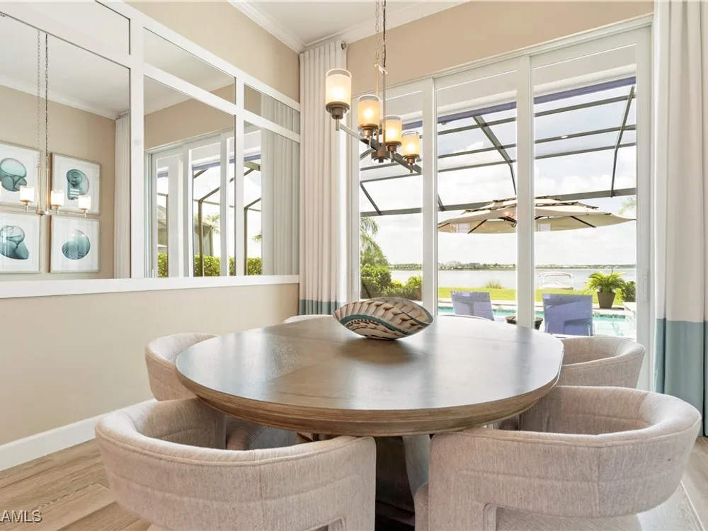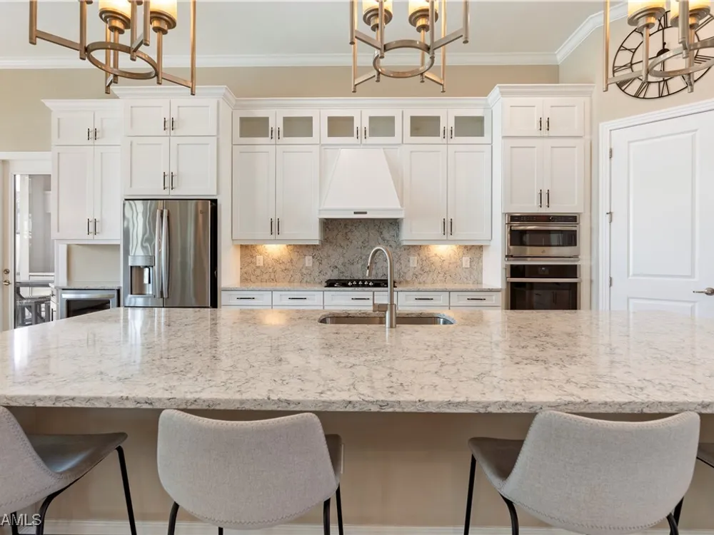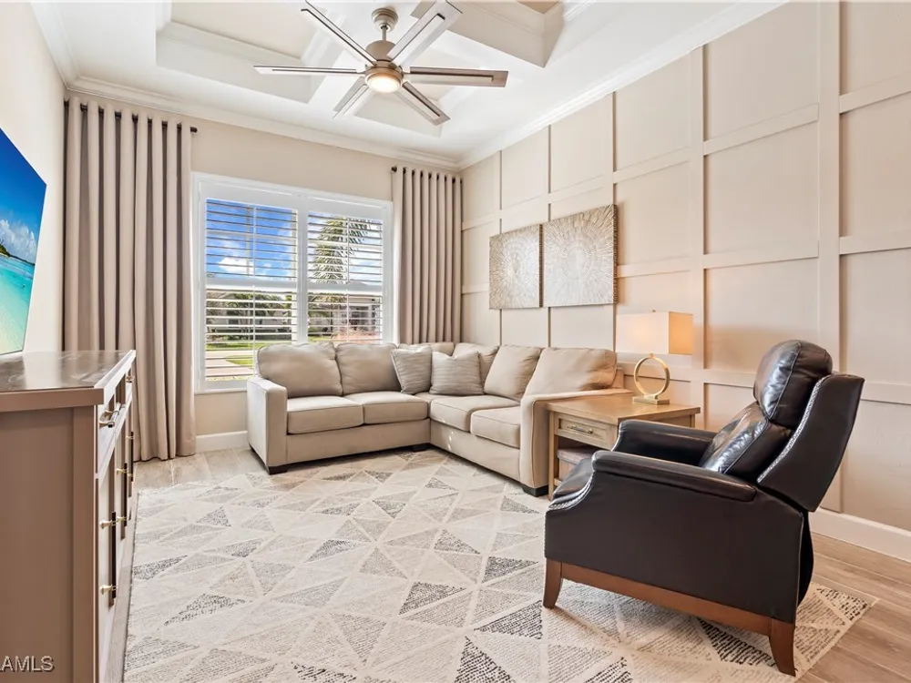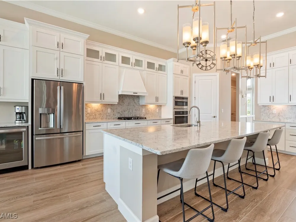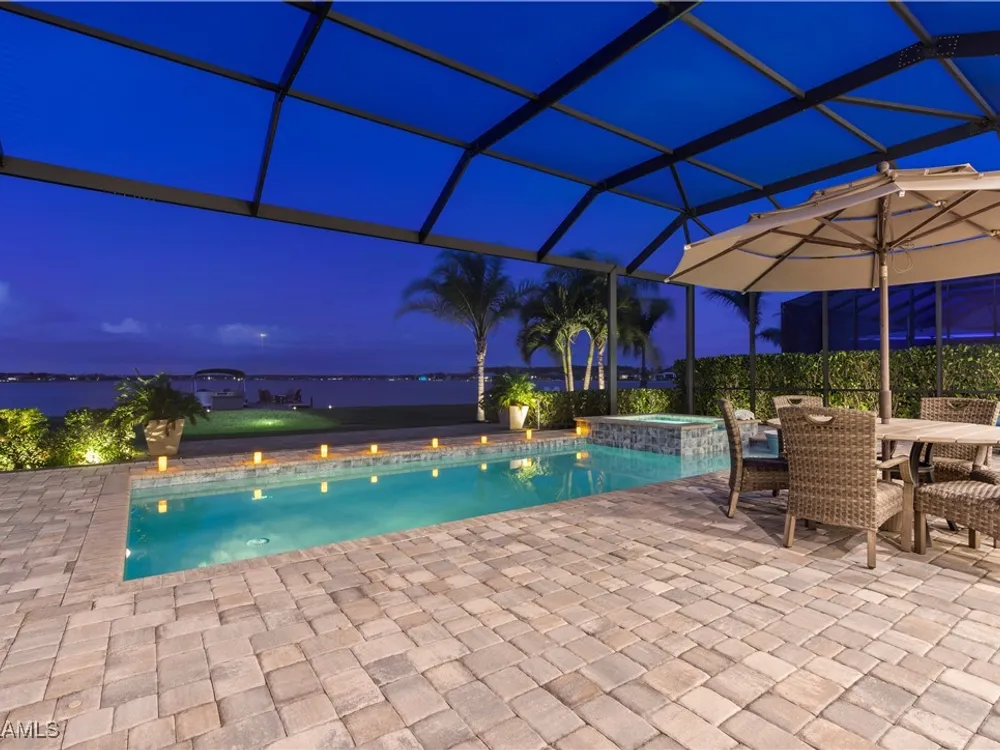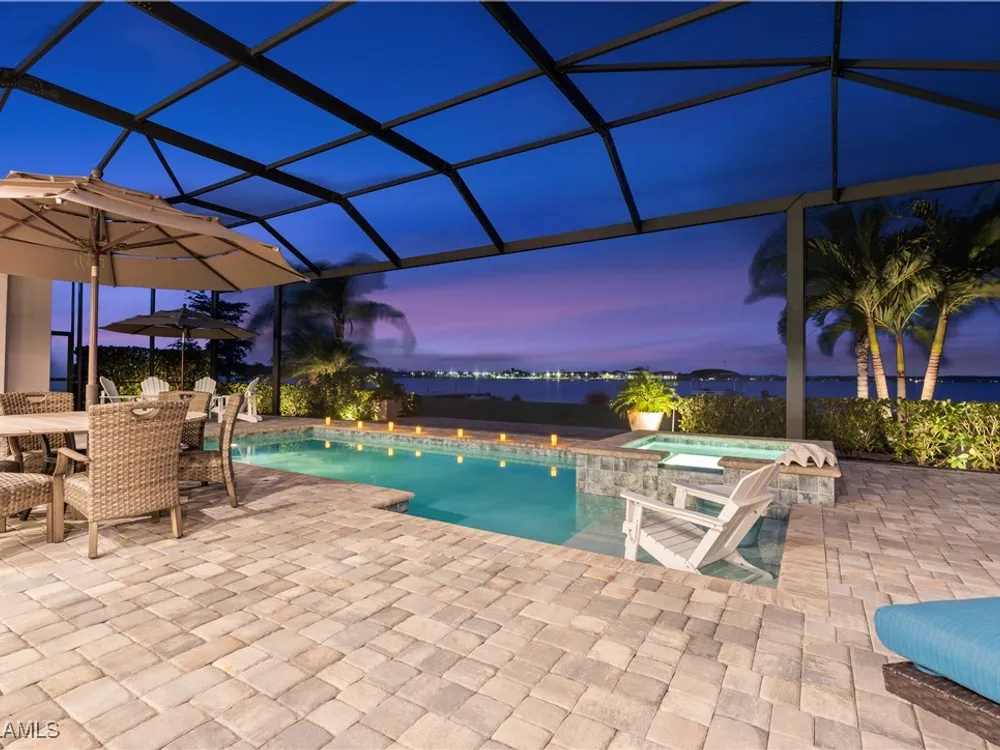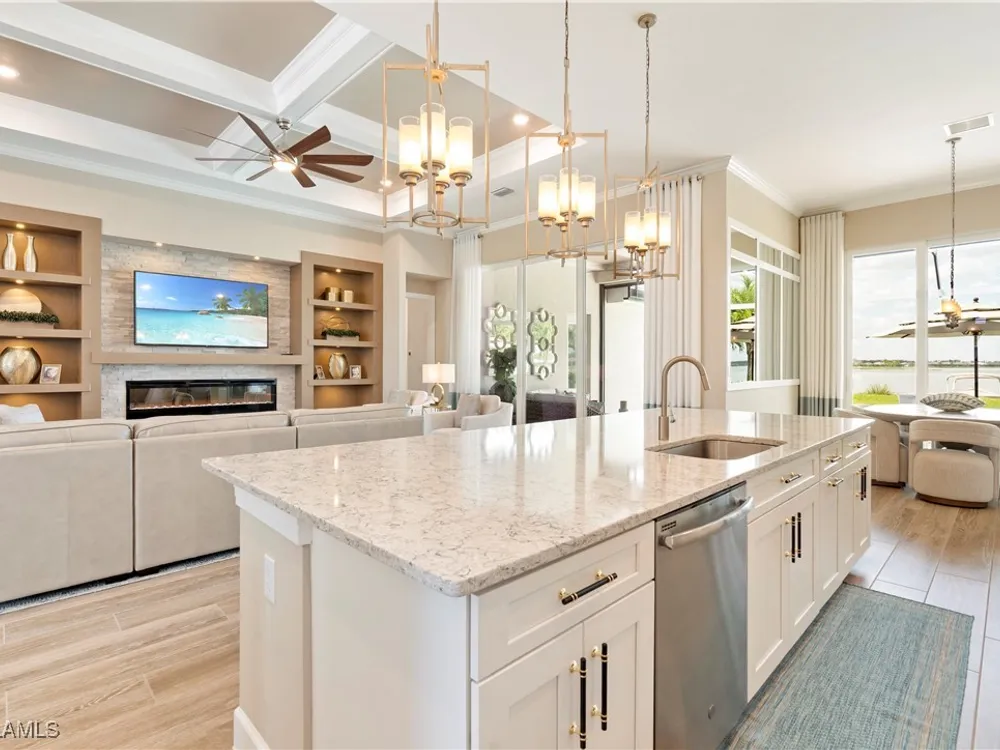 Welcome to this exceptional coveted Baneberry floor plan home, loaded with upgrades and located on the largest lake in the highly sought-after WildBlue community with a boat dock! Experience the ultimate Southwest Florida lifestyle with an expansive outdoor living space that offers the perfect setting for both relaxation and adventure. Enjoy multiple covered areas for dining, entertaining, and unwinding, including a full outdoor kitchen. Spend your days and nights soaking in the views, lounging on the sundeck, or taking a dip in the pool. For ultimate relaxation, unwind in the spa—all framed by breathtaking lake vistas through your picture-frame screen enclosure. Step outside to your private dock, where you can enjoy boating, waterskiing, or simply cruising on the lake just steps from your back door. This home offers nearly 3,200 square feet of beautifully appointed indoor living space with custom upgrades throughout. Upon entering, you are greeted by an elegant foyer, soaring ceilings, and the panoramic lake view that sets the tone for the entire home. The open-concept living, kitchen and dining areas create the perfect flow for entertaining family and friends. The gourmet kitchen is a chef's dream, featuring an oversized island, quartz countertops, built-in appliances, and beverage fridge. And yes, this is a natural gas community! The living area is designed for comfort and style, featuring a custom entertainment center, coffered ceilings, and an elegant fireplace. The thoughtfully designed split floor plan ensures privacy, with the primary suite offering dual walk-in closets, a custom reading nook, and a spa-like ensuite bathroom with a large walk-in shower, dual shower heads, a separate soaking tub, and dual vanities. Each guest bedroom is beautifully detailed with custom millwork and furniture, walk-in closets, and ensuite bathrooms. The fourth bedroom can also serve as a den or office, with a built-in desk, shelves, and closet. The oversized three-car garage provides ample space for vehicles, golf carts, toys, and more, including a dedicated Cadillac electric car charger. This home also offers impact windows and sliders, along with additional Storm Smart shutters on the lanai for peace of mind. WildBlue’s resort-style amenities await, just a short boat or bike ride away. The clubhouse features a lakeside beach, spa, a state-of-the-art fitness center with classes, indoor and outdoor dining options, a resort-style pool, a lap pool, and a racquets center with six Har-Tru tennis courts and eight pickleball courts with leagues and clinics. Other amenities include a basketball court, playground, bocce courts, and more. Conveniently located just minutes from premier shopping and dining destinations like Coconut Point, Gulf Coast Town Center, and Miromar Outlets, and with easy access to RSW airport, this home offers unparalleled convenience and lifestyle. Make this incredible home and lifestyle yours today!